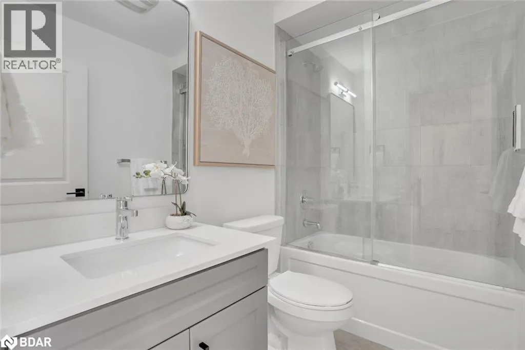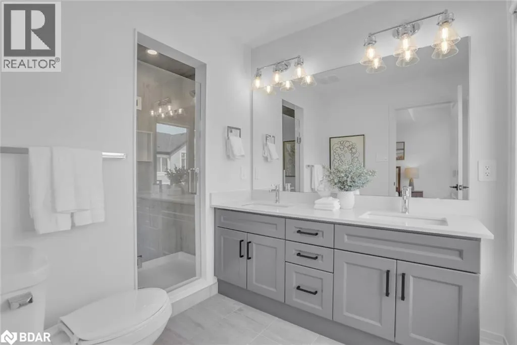 3rd Line/Martin Trail/N to Casserley Gate/W to Brandon Crescent MODERN NEW-BUILD ELEGANCE WITH A DESIGNER KITCHEN & UPGRADES THAT IMPRESS! Welcome to the Townes at Deer Springs by Honeyfield Communities. Discover a fresh take on modern living, where contemporary design, everyday comfort, and unbeatable convenience come together. This brand-new 1,730 sq ft townhome welcomes you with a stylish brick exterior, keyless front entry, and a fenced backyard for relaxed outdoor living. Step inside to a beautifully designed open-concept layout with upgraded builder finishes, featuring 9 ft smooth ceilings, modern trim and railings, sleek oak-finish stairs, and premium laminate and tile flooring that flows throughout. The stunning kitchen is a true showpiece, complete with tall uppers, two-toned cabinetry, quartz countertops, valance lighting, a striking backsplash, a large island perfect for gathering, pot lights, and a 6-piece stainless steel appliance package to make entertaining a joy. Upstairs, the primary bedroom offers a private retreat with a walk-in closet and a spa-inspired ensuite featuring a frameless glass shower and Caesarstone quartz vanity, while the additional two bedrooms share a beautifully upgraded bathroom with a frameless glass sliding door and modern finishes. A lower-level office with French doors and a walkout to the deck adds versatility, while the main floor powder room and smart laundry system with front-load machines make daily routines effortless. Enjoy two balconies with glass railings for morning coffee or peaceful sunsets, along with an oversized garage and driveway parking. Low monthly fees cover key maintenance details, leaving more time to enjoy life near parks, schools, dining, a golf course, and a community centre - the lifestyle youâve been dreaming of begins right here! Images shown are of the model home and are intended to represent what the interior can look like. (id:27476)