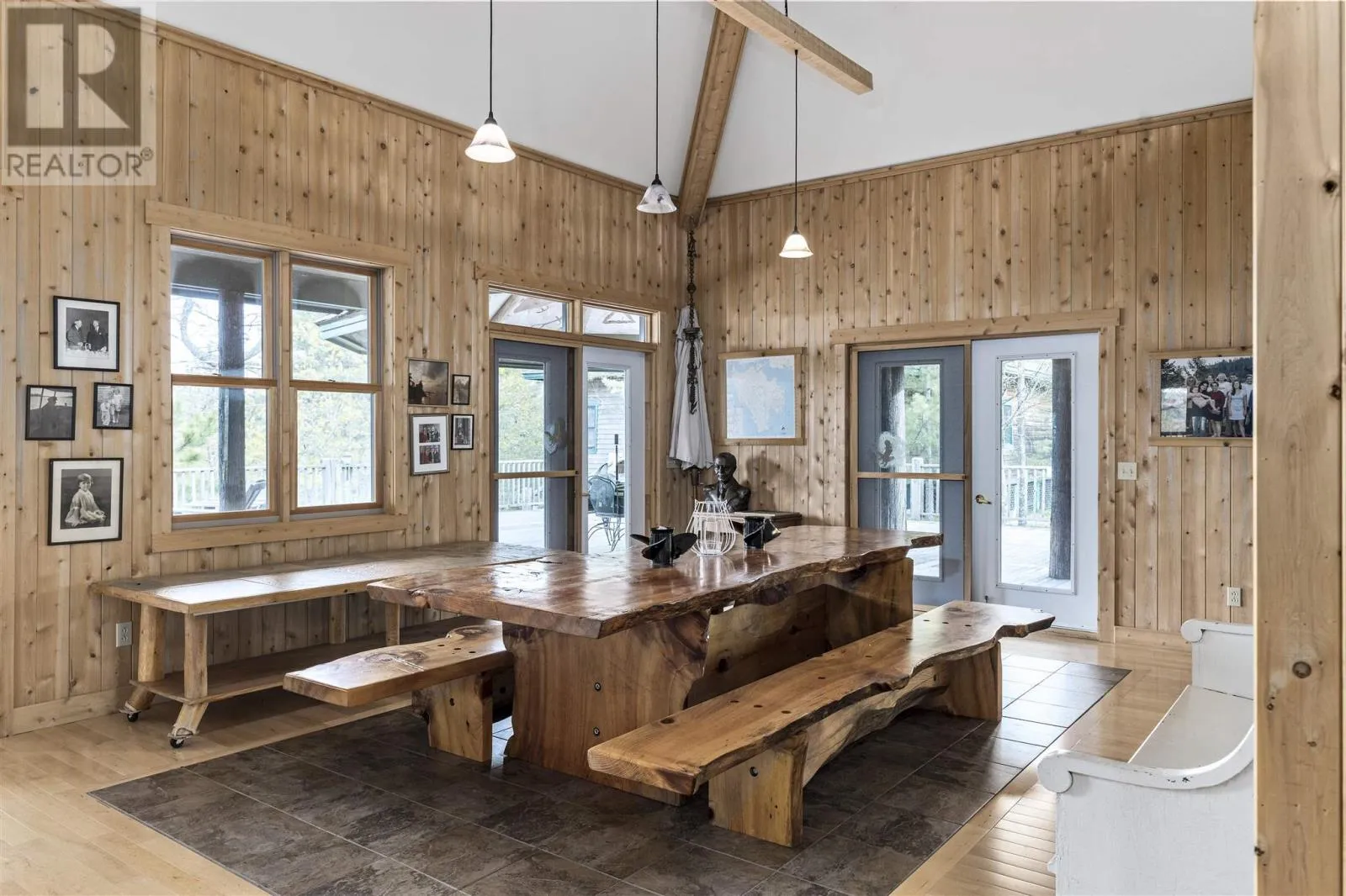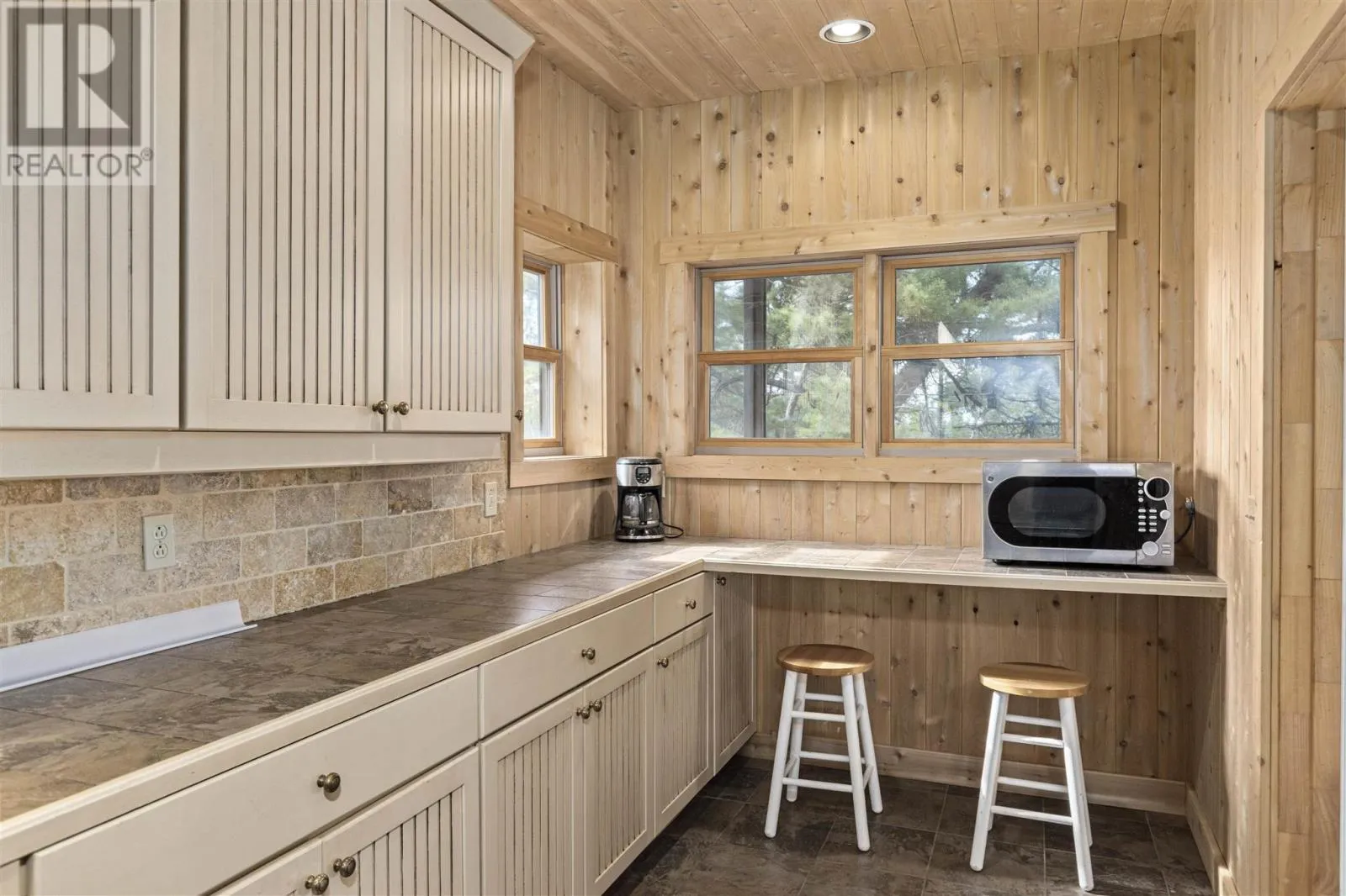 OFF KENSINGTON POINT AND CAMPEDOR ISLAND Rarely does such an opportunity present itself; Welcome to Picture Island, a private piece of paradise located in Lake Huron's North Channel. This 47.6 acre Canadian Island is located downstream of Sault Ste. Marie, just off of St Joseph Island and beside Campedor Island off Kensington Point. Nestled atop a 100-foot rock cliff sits the majestic cottage and bunk house, designed and built for large family gatherings. The views of the channel below are unparalleled with north-east facing vistas. The main house features 2613 sqft of open concept living area, while over 3000 sqft of decks connect the main house to the bunk house to the south. The island is powered by 400 amps through an underwater power line. The rest of the island is completely untouched, with game trails throughout. This is truly a once in a lifetime opportunity; seize it! Please note listing price is in USD. For more pictures and information, please go to http://www.PictureIsland.ca (id:27476)