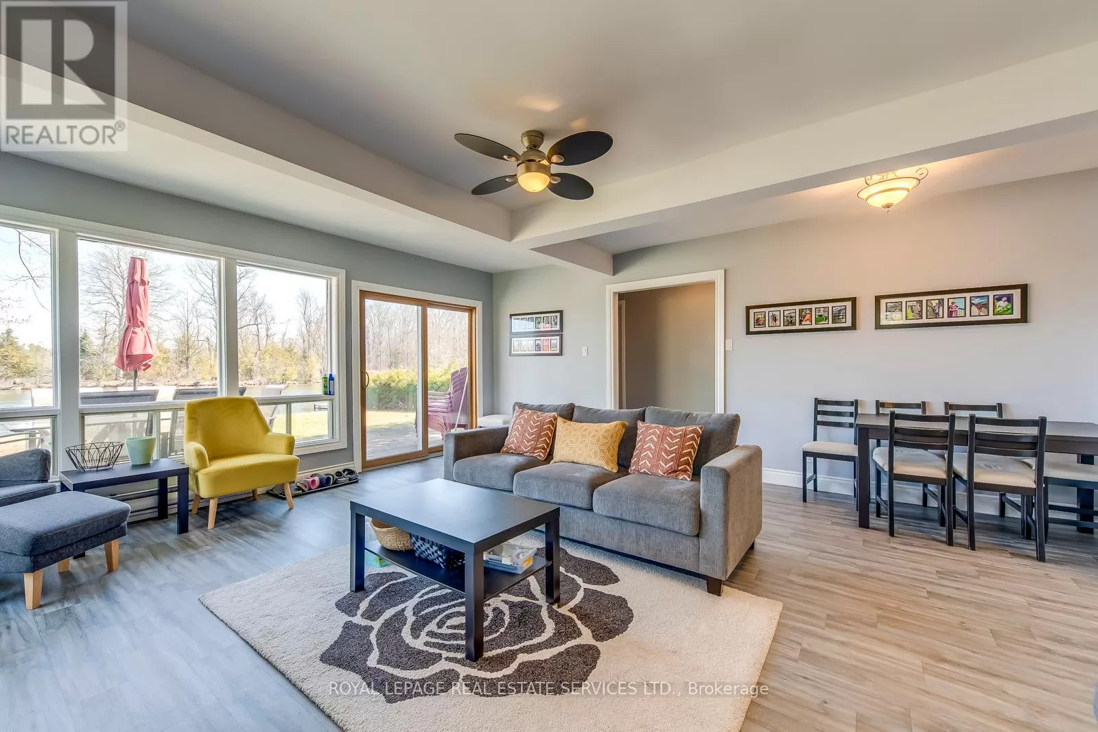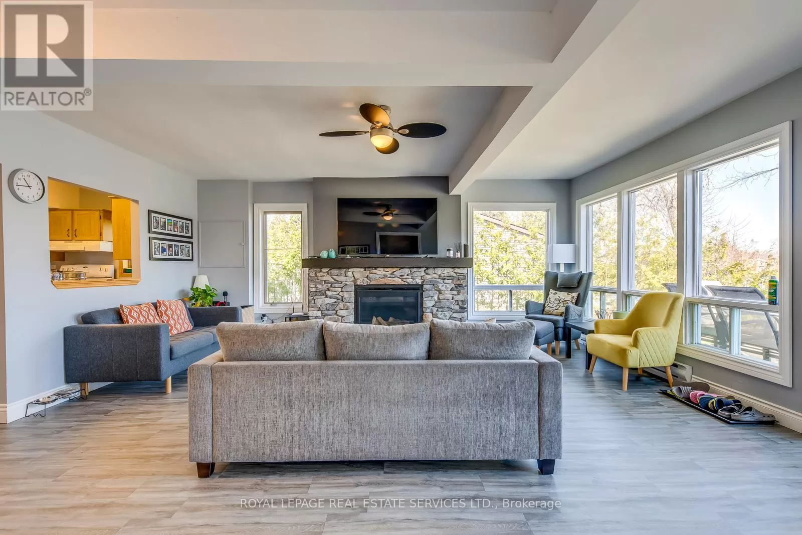 CR30 and Centennial Ln Amazing 4 season cottage with 3 bdrm + den, 2 bath. Bright and Open Dining and Living area with sliding glass doors to thelakeside deck.Enjoy expansive views of the water while relaxing each night by the comfort of the beautifully constructedpropane fireplace. Kitchen offers Oak cupboards, dishwasher, double sink, fridge & stove .Baseboard electric heaters keep thecottage cozy & warm all year round..Fully winterized . Drilled well & holding tank.Detached single car garage and 2 carparking out back. Strong wifi & cell phone capabilities.50 feet of shoreline along the Trent Severn Waterway offering excellentkayaking, canoeing, swimming, fishing & boating. Very nice level lot with mature trees & privacy hedges along a municipallymaintained road with garbage & recycling pick-up. A turn-key Waterfront property You don't want to Miss ! (id:27476)