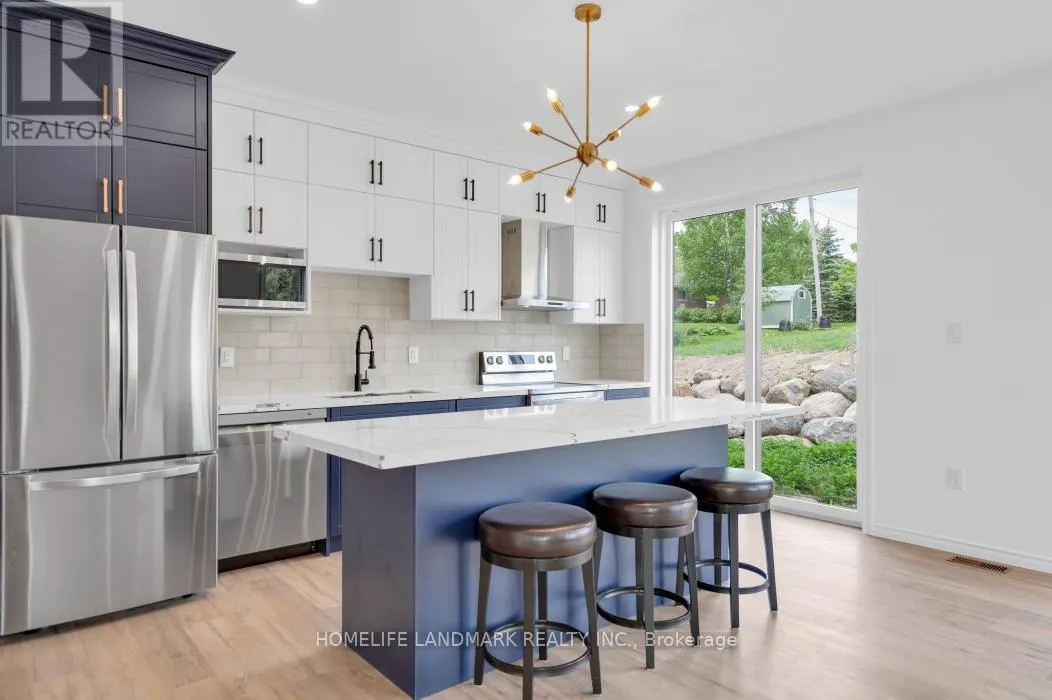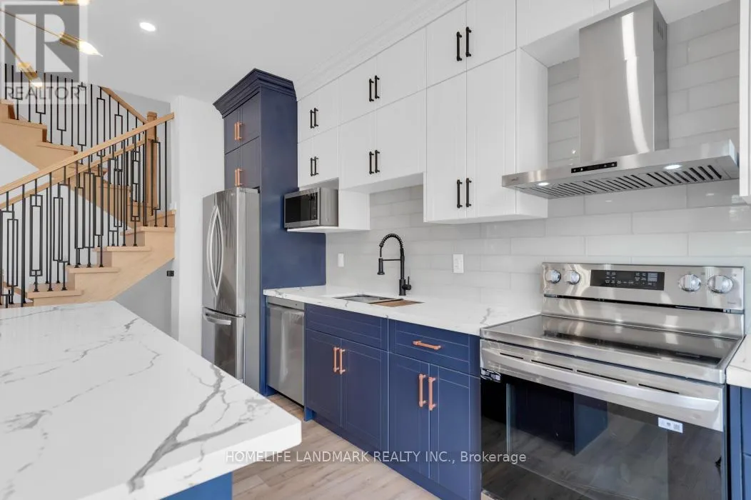 Cross Streets: Steelcrest Road. ** Directions: End of Market Street. Freehold luxury new townhome! Main & second floor 1587 sq ft plus finished basement 906 sq ft, finished garage 215 sq ft, modern finished 3 large bedrooms, 4 washrooms, open concept kitchen quartz countertop 3ft x 8ft breakfast island. Red oak stair through out 3 floors. Large glass curbless showers with linear drains. Insulated Concrete Form (ICF) foundation best value for moisture, sound and insulation. Municipal water, sewer services natural gas heating with tankless water heater, central air conditioning. 7 years Tarion new home warranty. Close to shopping amenities, hospital care center and new Sunny Life Wellness & Recreation Centre. Please note this is a new lot to be registered, and tax has not assigned yet. All measurements are approximate and subject to change without notice. **EXTRAS** AC, fridge, dryer, washer, microwave, stove, dishwasher, electrical fireplace and EV charger included. 200-amp services. (id:27476)