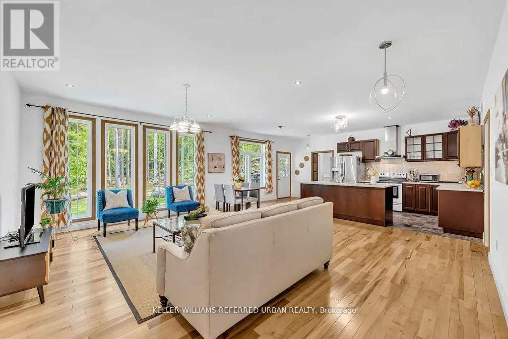 11th Line E & Logging Trail Rd Welcome to this 1,700 sq. ft. bungalow, built in 2020, located in Trent Hills on a very private 1.24-acre lot surrounded by mature trees. This single-storey home features 3 bedrooms and 2 bathrooms, with 9-foot ceilings, gleaming hardwood floors throughout and a composite back deck overlooking the wooded backyard. The modern open-concept living and dining area offers plenty of natural light and backyard views. The kitchen includes stainless steel appliances, a centre island, and ample storage & counters space. The king-sized primary bedroom features a walk-in closet and a 5-piece ensuite bath (with rough-infor separate shower). The spacious second and third bedrooms are ideal for family or guests or a home office. The full basement offers In-Law suite potential. It features, a cold cellar, large windows, and is ready to be finished with a rough-in for a kitchen,bathroom, and woodstove. The entire house is wrapped in foam insulation and includes a 200-amp electrical panel. The attached 2-car garage offers 13.3-foot ceilings and a dedicated workspace, ideal for storage, hobbies, or vehicle collectors. As a bonus, the property includes deeded access to a private waterfront beach area on Crowe River, perfect for swimming, kayaking, and other recreational activities. Very close to shopping and restaurants. Only 10 mins from downtown Campbellford (new YMCA and future Hospital) and 15 Minutes from Marmora and Havelock. This home offers, privacy, and the peaceful lifestyle of rural living. Come fall in love! (id:27476)