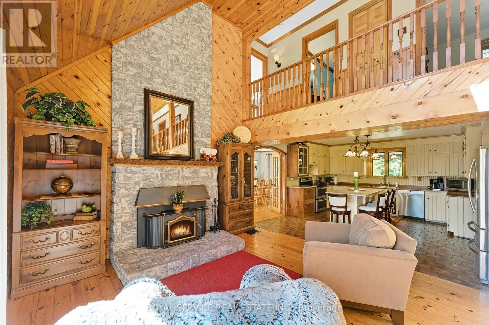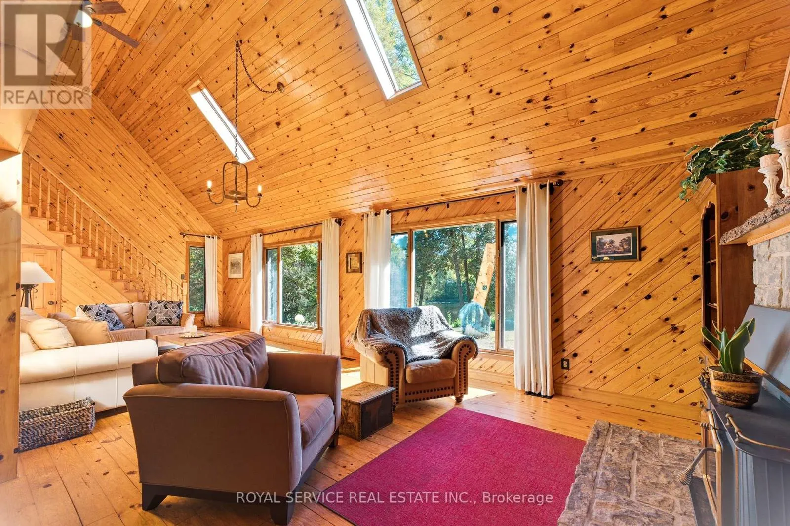 Cross Streets: Hwy 50/13th Line. ** Directions: At Hwy 50 go East on 13th Line. Between Campbellford and Marmora sits a riverside estate. A quiet, peaceful, serene place with a building made of stone, built with care--a much loved home. The main floor is open and bright with a high vaulted ceiling, large windows with views of the river, a wood stove for warmth on crisp autumn days. Open to the living room is a warm cherry wood kitchen with granite counters and stainless steel appliance. It flows to the dining room with a walk out to your saltwater pool and out to the backyard, your retreat. On this floor is also a tiled shower, a study/laundry/room. Upstairs, the master has its own balcony with breath-taking views. Two more bedrooms wait down the hall. The bath is large, with a jetted tub and a shower. The large basement family/bar/games room has a walk up for easy access, a wet-bar, a former fireplace (that could be brought back) and another utility room with tonnes of storage. Outside the land has so much to offer. A heated salt-water pool. A hot tub. A large heated -insulated garage that is perfect for tinkering, building fixing-or storing your toys. There's a greenhouse. A basketball court. A bunkie with root cellar. There are treehouses, a small fenced paddock. The river runs here. Over a hundred feet of riverfront. You can swim, boat and fish. The estate is built for life. Many ways to heat it. A generator backup if the power fails and supplemental wood heat. A built-in water sprinkler for the grass, a gorgeous stone and rock waterfall. Gardens a plenty. This is more than a home. This is a stead. A dream stead. (id:27476)