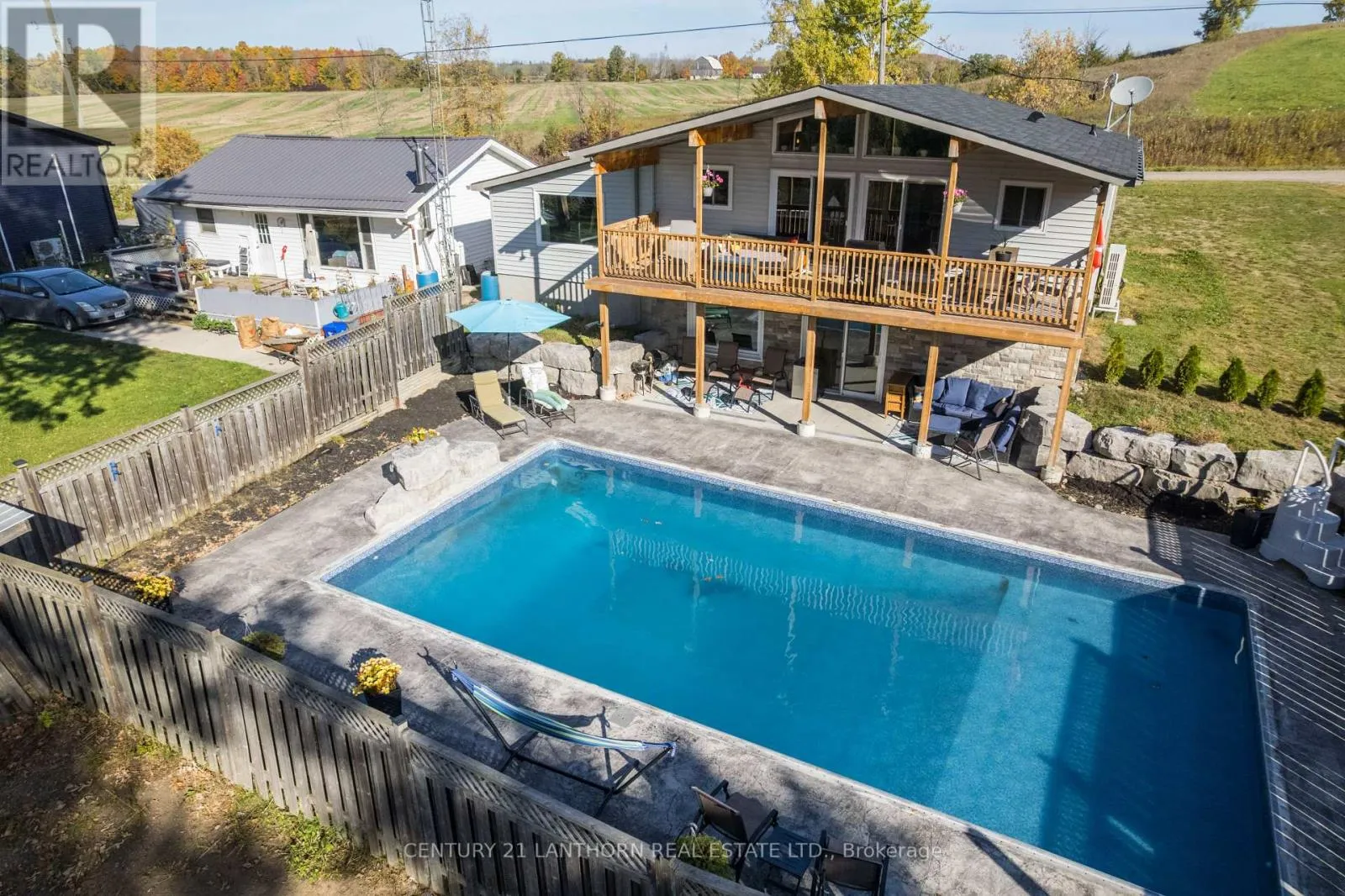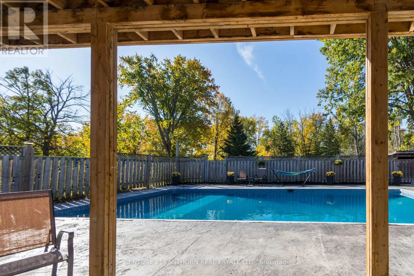 Cross Streets: Izumi Wy. ** Directions: HWY8 to Green Acres RD to 2nd Line E Lane. This place has truly become our little piece of paradise. Tucked away in the countryside, it offers the kind of peace and privacy that's hard to find especially with views like these. The backyard is definitely our favorite spot. The in-ground pool is perfect on hot summer days, and there's plenty of space around it for lounging, entertaining, or just relaxing with a good book. We've spent countless evenings on the deck watching the sunset or gathered with friends on the patio below. Inside, the natural light is incredible. The large windows and sliding doors bring the outdoors in, and the vaulted ceiling with the wood beam adds such a cozy, airy feel. The kitchen is where we tend to hang out the most its open, bright, and great for cooking or catching up over coffee at the island. The combination of white and navy cabinets gives it a fresh, clean look that still feels warm and welcoming. We've added a lot of little touches over time, like the plants on the upper shelf and the seating areas around the yard, to really make it feel like home. Its the kind of place where you can wake up slowly, spend your day by the pool, and end it under the stars. Its calm, comfortable, and full of great memories get ready to call it all yours. (id:27476)