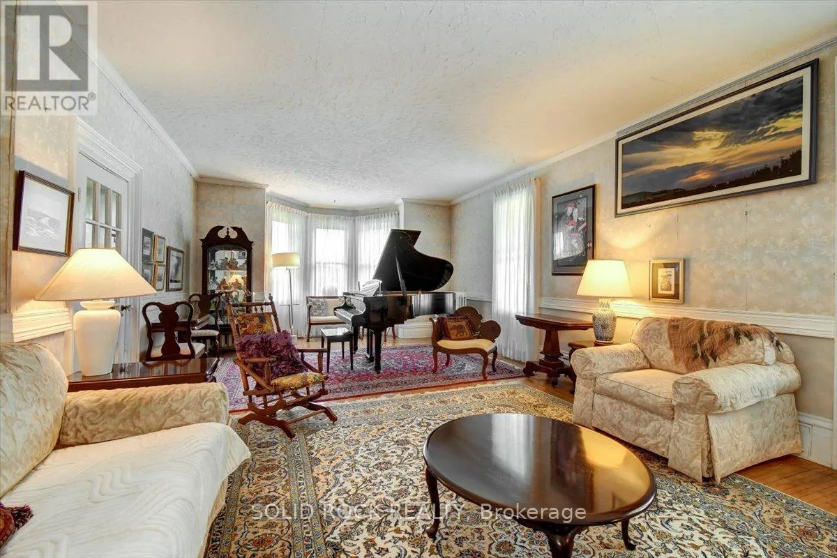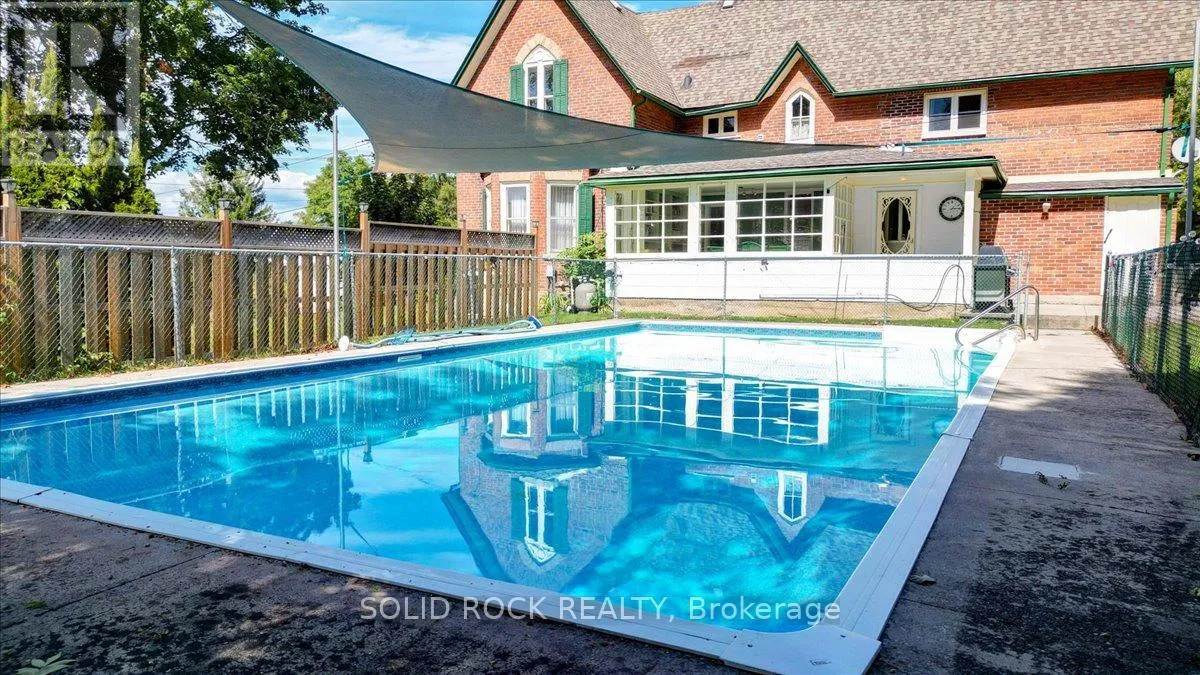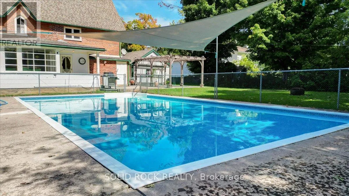 Cross Streets: Booth St and Market St. ** Directions: East on Bridge St W turn North on Booth St. Splendid Century Home Located in a Central and Sought After Neighbourhood in Campbellford! This 1879 stunning home beautifully blends historic charm, timeless character, and modern conveniences. Updated Eat-In Kitchen: Granite countertops & backsplash, b/in wine fridge, Bosch dishwasher, commercial-grade 6-burner stove with BBQ + 2 ovens & industrial hood, secondary prep sink/wet bar, pantry with pull-out shelves, butcher block island, glass-front cupboards, hdwd floors, and a pass-thru to the sunroom with views of the backyard and pool. 4-Season Sunroom: Overlooks the pool, complete with built-in shelving. Main Floor Flex Room: Currently used as an office, easily doubles as a bedroom with closets and storage. The formal Dining Room is so Elegant with a Bay Window and Waterford Crystal Chandelier. The Living/Family Room is spacious enough for a grand piano, featuring a gas fireplace, built-in bookshelves, and bay window. It's an inviting room that whether you are relaxing or entertaining, it offers a sense of being home. There are 4 bdrms on the 2nd level. The unique design on the 2nd floor offers endless possibilities. The Primary Bedroom has an updated 4 Pce Ensuite, and a Jet Soaker Tub. This can also be used as a separate suite. The house can make a very desirable Bed & Breakfast or Air BnB or can be enjoyed as a single family home or multi-generational living. Outdoor Features: Double Lot with Heated Pool: Fenced for safety, with pergola and concrete patio. Poolside Convenience: Outdoor change room with 2-piece bathroom and kitchenette. Entertainers Dream: Gas hookup for BBQ, privacy from the roadside, and plenty of space to gather. Also, a covered porch from Sunroom. Check Attached Feature Sheet for more info. Located within walking distance to restaurants, shops, and local amenities, this is truly a lovely and elegant home ready for its next chapter. A Must-See Century Gem! (id:27476)