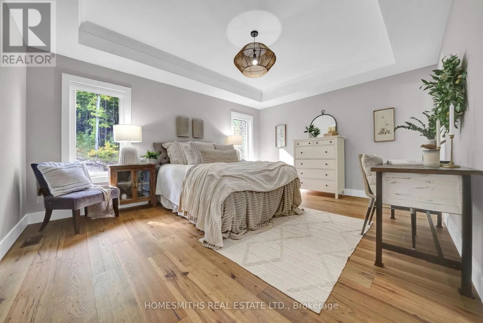 Cross Streets: County Rd 30/5th Line West. ** Directions: County Rd 30/Seymour Quarry Rd/5th Line West/Riverside Trail. This stunning custom built brick-and-stone bungalow was thoughtfully designed with elegance and comfort in mind. Located in the sought after Haven on the Trent, where luxury living meets natural beauty. The main floor boasts an open-concept layout with engineered hardwood throughout, soaring vaulted ceilings, and an abundance of natural light. A versatile formal dining room or office sits at the front of the home, complemented by a stylish powder room.The chef-inspired kitchen features a large centre island with breakfast bar, custom cabinetry, quartz countertops, and premium GE Cafe fridge and stove, seamlessly flowing into the eat-in dining area with a walkout to the deck and professionally landscaped backyard. The great room impresses with a dramatic gas fireplace and vaulted ceilings, perfect for both everyday living and entertaining.The main-floor primary suite overlooks the ravine lot and showcases tray ceilings, a walk-in closet and a 4pc ensuite with double sinks and tiled shower. A second bedroom on the main level also enjoys its own private 4pc ensuite. Convenient main-floor laundry/mudroom with garage access completes this level.The lower level is bright and inviting, with above-grade windows, a spacious rec room, a bar area with rough-in for sink, a full 3pc bathroom, and two additional bedrooms one with a soundproof walk-in closet ideal for musicians or gamers, and another featuring two oversized walk-in closets. Outdoors, enjoy a fenced backyard oasis with professional landscaping, this 250ft deep lot is perfect for relaxing or entertaining. Ideally located, this home offers the best of both worlds peaceful nature and everyday convenience. Just steps from the Trent River, scenic trails, and Sunny Life Recreation & Wellness Centre, and close to Seymour Conservation Area, Ferris Provincial Park, the suspension bridge, downtown Campbellford shops, bakeries, and the hospital.This is more than just a home its a lifestyle. (id:27476)