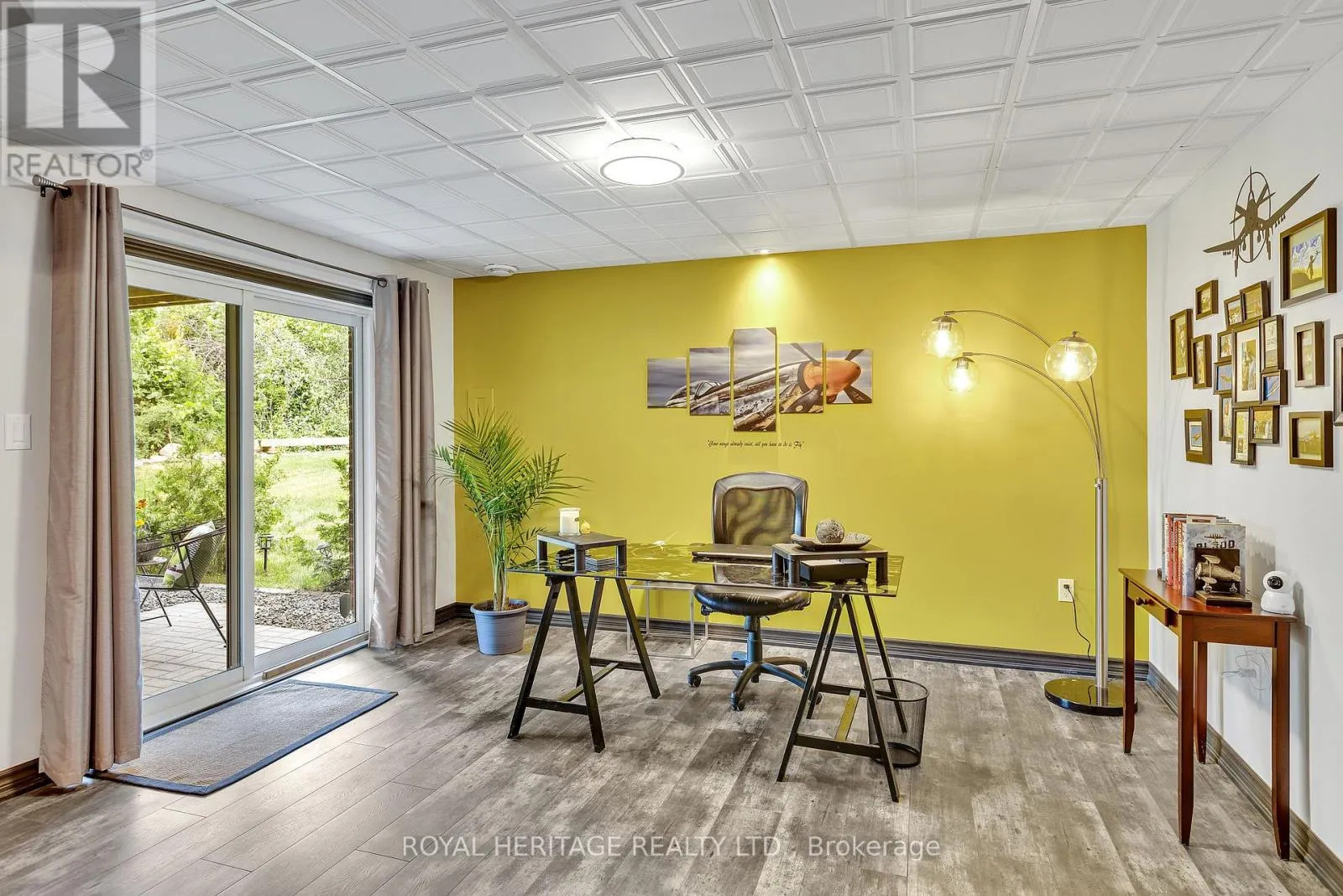 Cross Streets: Water St. ** Directions: Bridge St S to Water St to Old Trafford. 23 Old Trafford Drive, Hastings - This Is Not Your Average Home. Welcome to a property where thoughtful planning, premium upgrades & professional finishes come together in exceptional harmony. Every inch of this home has been carefully enhanced to stand out as one of the most refined residences in the development. The lot itself was selected for its rare walk-out capability & breathtaking views-open grassy pastures, glowing eastern sunrises & unforgettable western sunsets. This solid brick bungalow with stone accent offers outstanding curb appeal with a covered veranda, custom landscaping, an irrigation system, extended double garage designed to accommodate full-sized vehicles with ease. Step outside from the dining area onto a stunning 12'x26' glass-panelled deck featuring a fire pit & custom privacy panels. Below, a beautifully crafted stone patio & walkway lead to the garden shed, creating a backyard retreat perfect for entertaining or relaxing. Inside, the home showcases extensive custom upgrades across both levels. Gleaming hardwood floors, 9'ceilings & a dramatic 12' vaulted LR ceiling enhance the spacious open-concept design. A beautiful custom gas FP plus large principal windows flood the space with natural light. The well-appointed kitchen features an upgraded design, level 4 granite countertops & SS appliances. MF also offers a spacious primary BD with upgraded cabinetry in the ensuite, a second BD & elegant 4pc bath with a granite vanity & designer tile, MF laundry with a secure interior entry from the garage. The fully finished lower level continues to impress with a walk-out to the stone patio, designer ceiling & floor tiles, welcoming gas FP, theatre area, office/games space, two BDs, beautiful 3pc bath with a walk-in shower, workshop & abundant storage & has excellent in-law capability. Meticulously maintained & lovingly cared for, nothing has been overlooked. Walking distance to Trent River, beach, shops, dining & sports dome. Upgrades & HI on-file. (id:27476)