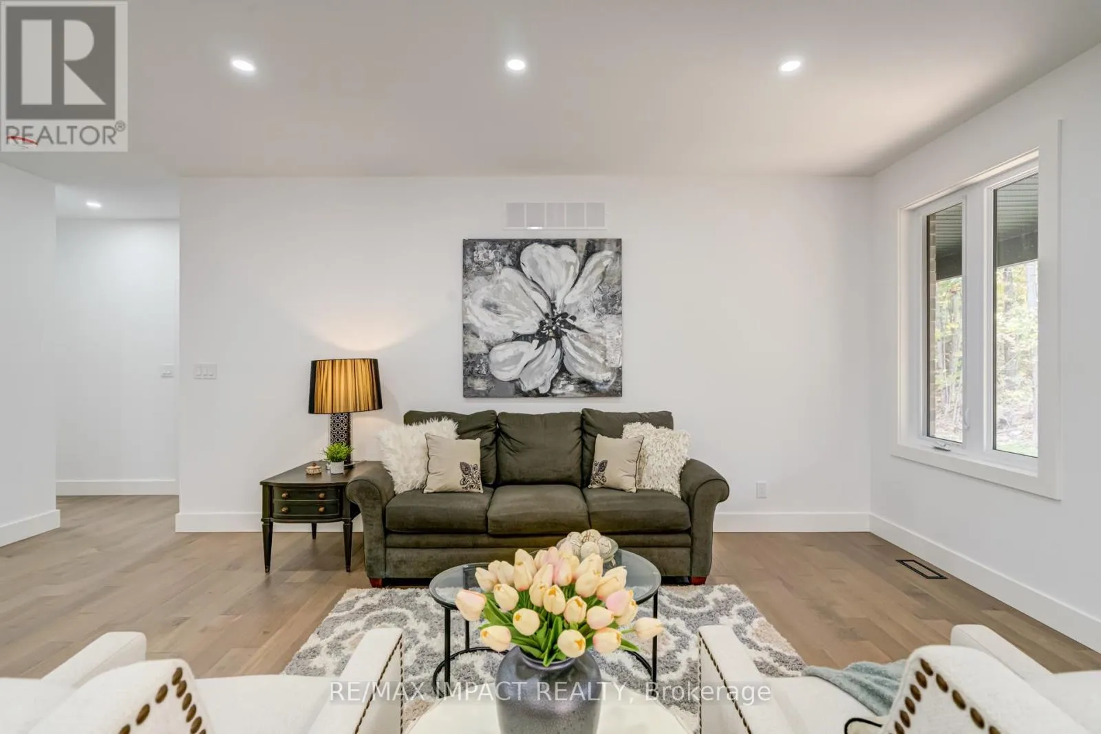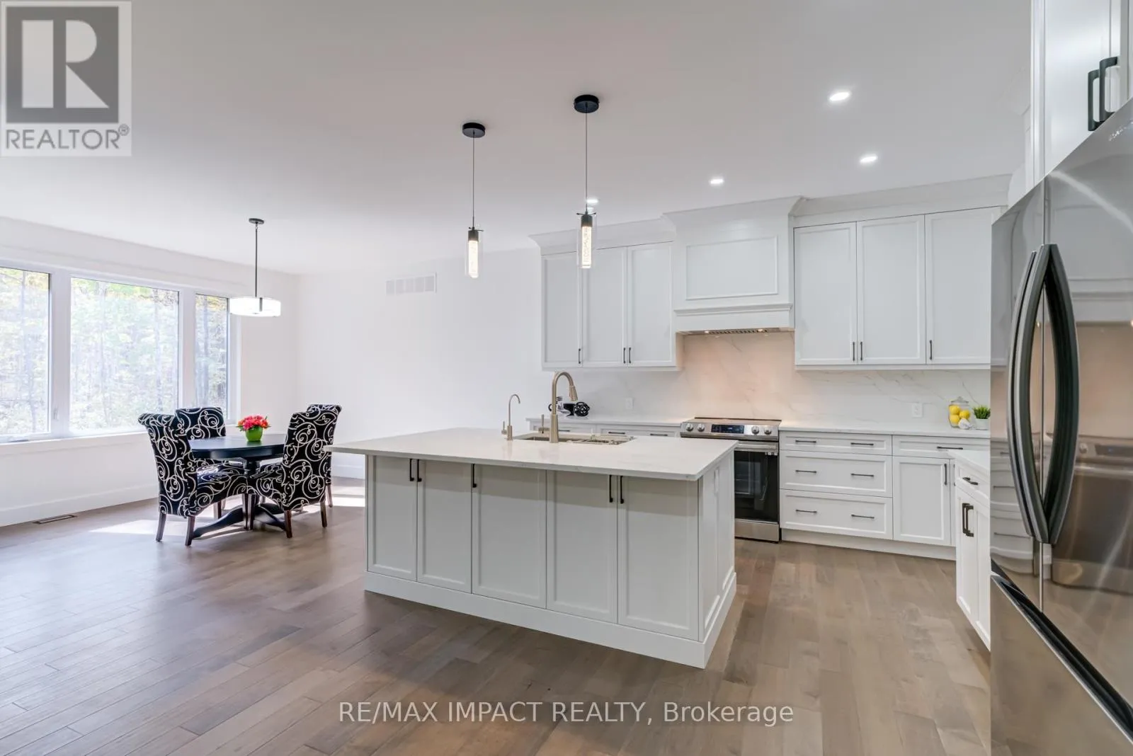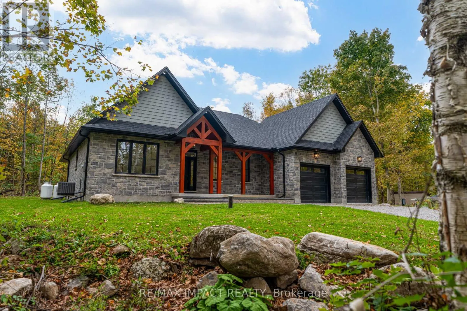 Cross Streets: Sugarbush Blvd & Maplewood Crt. ** Directions: From Lakehurst Rd, North on Flynns Rd, West on Barcroft Rd, West on Sugarbush Cres, South on Sugarbush Blvd. New custom-built home in the Buckhorn/Lakehurst area with deeded lake access to Pigeon Lake and the Trent System, being offered by the Builder, inclusive of Tarion New Home Warranty. This exceptional 2,036 sq ft bungalow offers 3 spacious bedrooms, 2 modern bathrooms and an oak staircase with black pickets leads to a full unspoiled basement with large windows awaiting your personal touch. Set on a private 0.80-acre lot surrounded by mature trees, this property provides ultimate privacy and tranquility. With lake access right from your backyard, you can walk to the water, soak in the waterfront lifestyle and the Seller is providing a 10 ft dock. The homes exterior showcases a striking combination of brick and stone, complemented by black trim accents and is framed by the natural beauty of the surrounding trees. A charming 22 ft covered front veranda with timber-frame construction and a beautifully crafted stone walkway invites you inside. At the back, a covered deck off the dining area offers a perfect spot for outdoor entertaining. Step inside to an open-concept layout filled with natural light. High ceilings, pot lights, engineered hardwood flooring and elegant porcelain tile set the tone throughout. The heart of the home is the stunning white kitchen, featuring black hardware, stainless steel appliances, quartz countertops and a stylish matching backsplash, all anchored by a large island with breakfast bar. The adjoining dining area and great room flow seamlessly, creating the ideal space for family gatherings. The thoughtfully designed layout places two secondary bedrooms and a main bath on one side of the home, while the luxurious primary suite, complete with a 5-piece ensuite and walk-in closet, enjoys privacy on the opposite side. Additional conveniences include main floor laundry with direct access to the attached double garage, which is fully drywalled and painted. (id:27476)