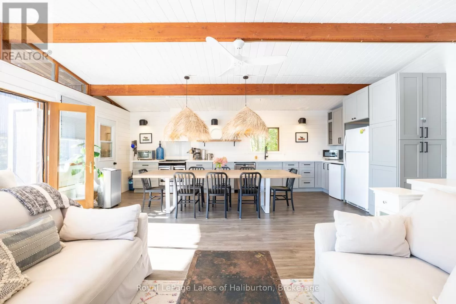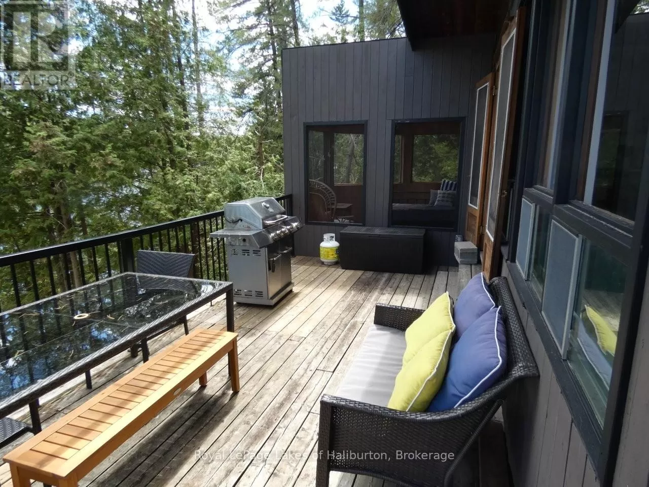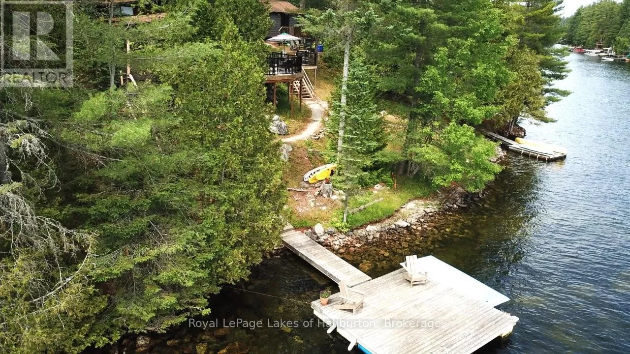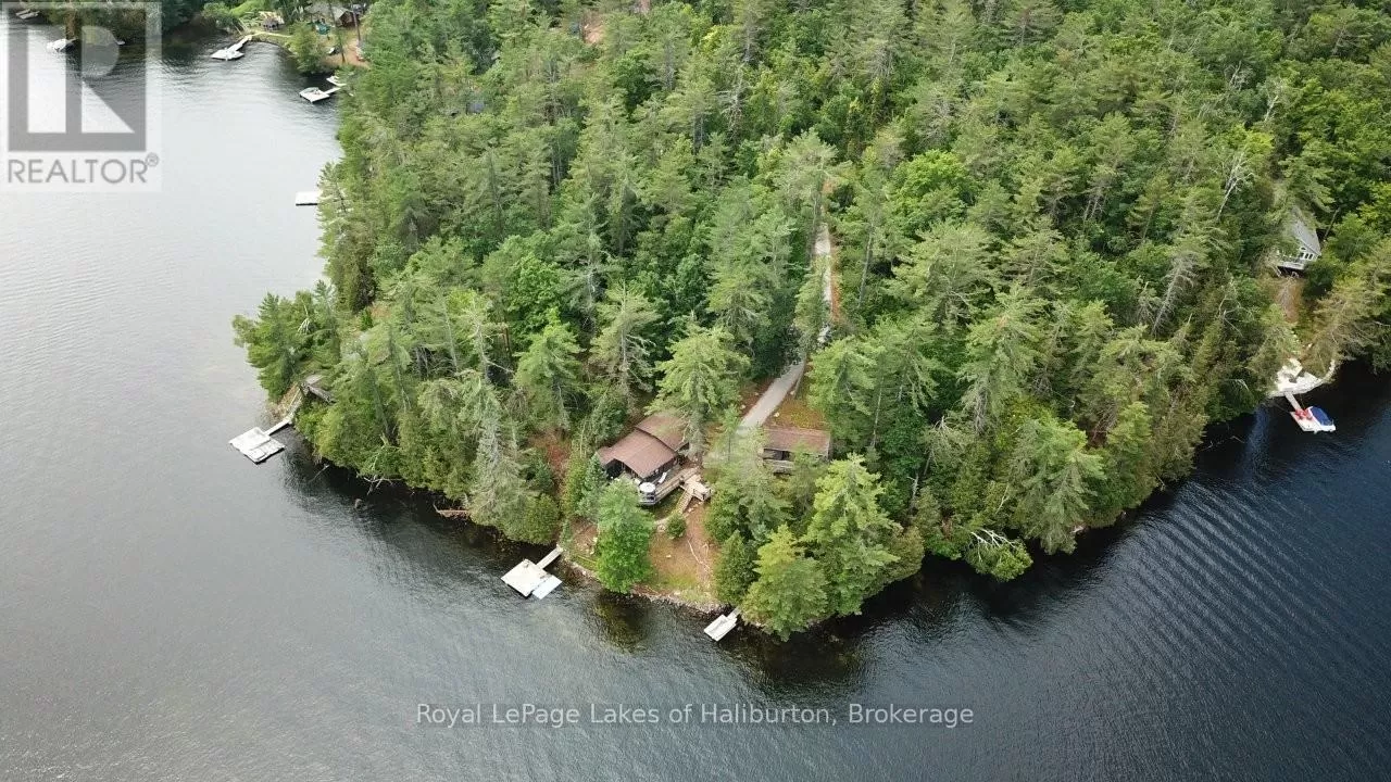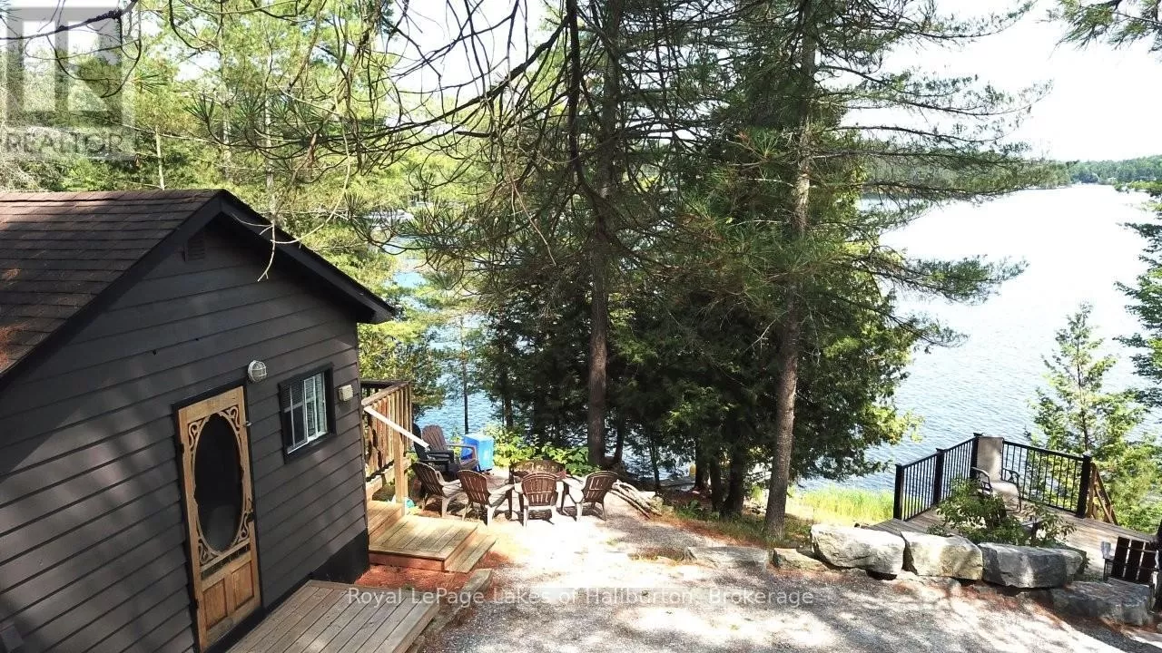 Cross Streets: Galway Road. ** Directions: From Fenelon Falls or Kinmount take CR 121 to the Galway Road. Go in approximately 10 kms and turn right/south on Fire Route 364, known locally as Spencer's Trail, and proceed 4 kms to SOP. Discover the exceptional tranquility of this pristine Crystal Lake hideaway. A fabulous point lot with 2.26 acres and 300 feet of Algonquin style, rock and century pine waterfront that backs onto Crown Land. The 3-bedroom main cottage has a 3-pc bath and was extensively updated in 2022 and pairs seamlessly with a separate, self-contained guest bunkie featuring 2 bedrooms and a 3-pc bath, kitchenette, sitting area, laundry, and its own private deck, offering a combined living space of 1450 sq ft. This beautifully treed gem is tucked away at the very end of a privately maintained 3-season cottage road. A classic mid-century Viceroy style cottage offering a spacious open-concept interior with new high-end kitchen features including stone tops, soft close, impressive 9 ft harvest table and new appliances in 2022. A lovely screened in porch with a stunning view awaits. 14' x 16' storage shed. 200 AMP. Outdoor shower. Updated utility systems including plumbing, water heater, water filtration/UV, and water pump in 2022. The Shore Road Allowance (SRA) is owned. There is 2022 survey with buildings located. This ultra-private setting sets the perfect stage for enjoying one of the region's most pristine lakes - with no neighbours in sight! Crystal Lake, a spring-fed glacial treasure, is defined by its iconic rock and pine shoreline with low cottage density. Enjoy full sunrises and long lake views. 26 easy steps or a gentle pathway leads to a pair of docks for exceptional deep water swimming. Excellent fishing for bass and lake trout. 30+ kms of shoreline to explore by boat, or take a quiet paddle into Iron Mine Bay. On-water marina. Kinmount's amenities; including the Fairgrounds, Highlands Cinema, LCBO, groceries and ATV trails are 15 mins away. This 3-season property is 30-35 mins from Bobcaygeon/Fenelon Falls/Minden. Less than 2.5 hrs from the GTA. Bell 5G HS internet. This property exudes pride of ownership and is fully furnished and ready to enjoy yet this fall. (id:27476)
