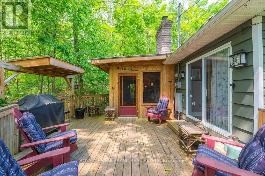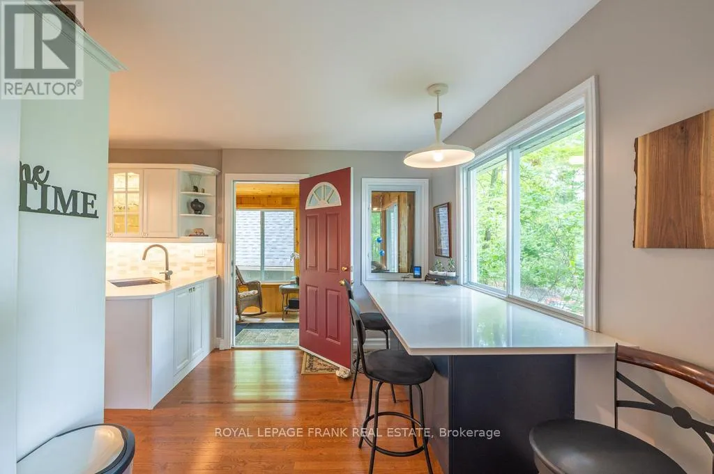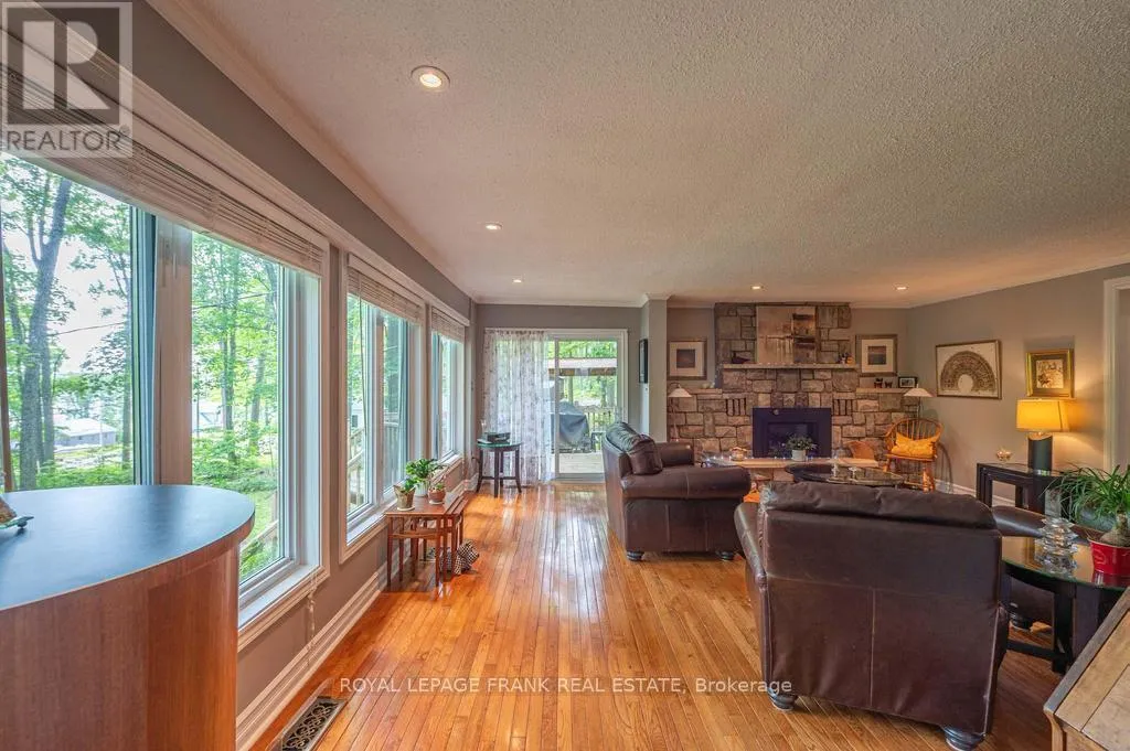Cross Streets: Fire Route 27 and Fire Route 27B. ** Directions: Lakehurst Rd to Buckhorn Narrows Rd to Mystic Point to Fire Route 27, continue on to Fire Route 27B. Deeded access to Buckhorn Lake. Renovated from top to bottom, this lovely home is located just 5 minutes from the town of Buckhorn. This little gem is located in a waterfront community and sits on a picturesque treed lot with obstructive lake views and sunrises. Featuring 3+1 bedrooms, 1.5 baths and a stunning functional kitchen with quartz counters, stainless appliances, and a large built in quartz table with storage beneath. Enjoy the spacious living area with an abundance of windows, hardwood floors, and a stone fireplace with propane insert. The lower level includes the 4th bedroom, rec room, and a large work area. An amazing screened in porch is perfect for large gatherings and a cozy sunroom is right off the kitchen for easy enjoyment. There is lots of decking, a hardwired generator, and a single car garage steps from the house. Located on a well-maintained year-round road just seconds to the Township road and school bus route. (id:27476)
