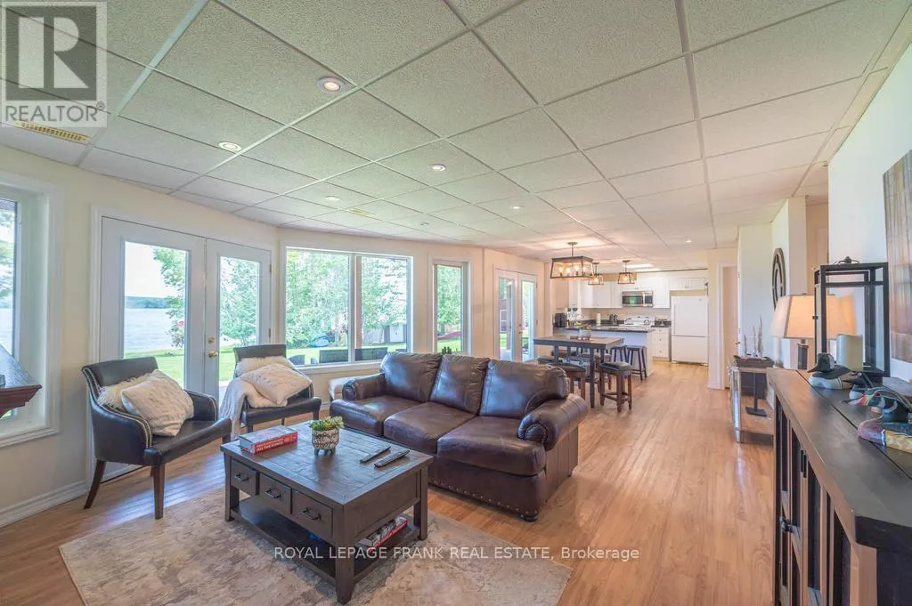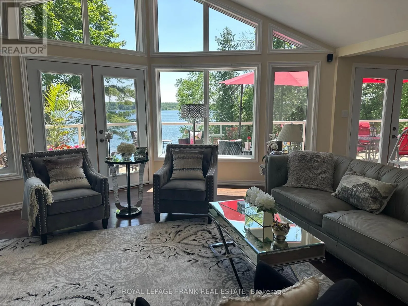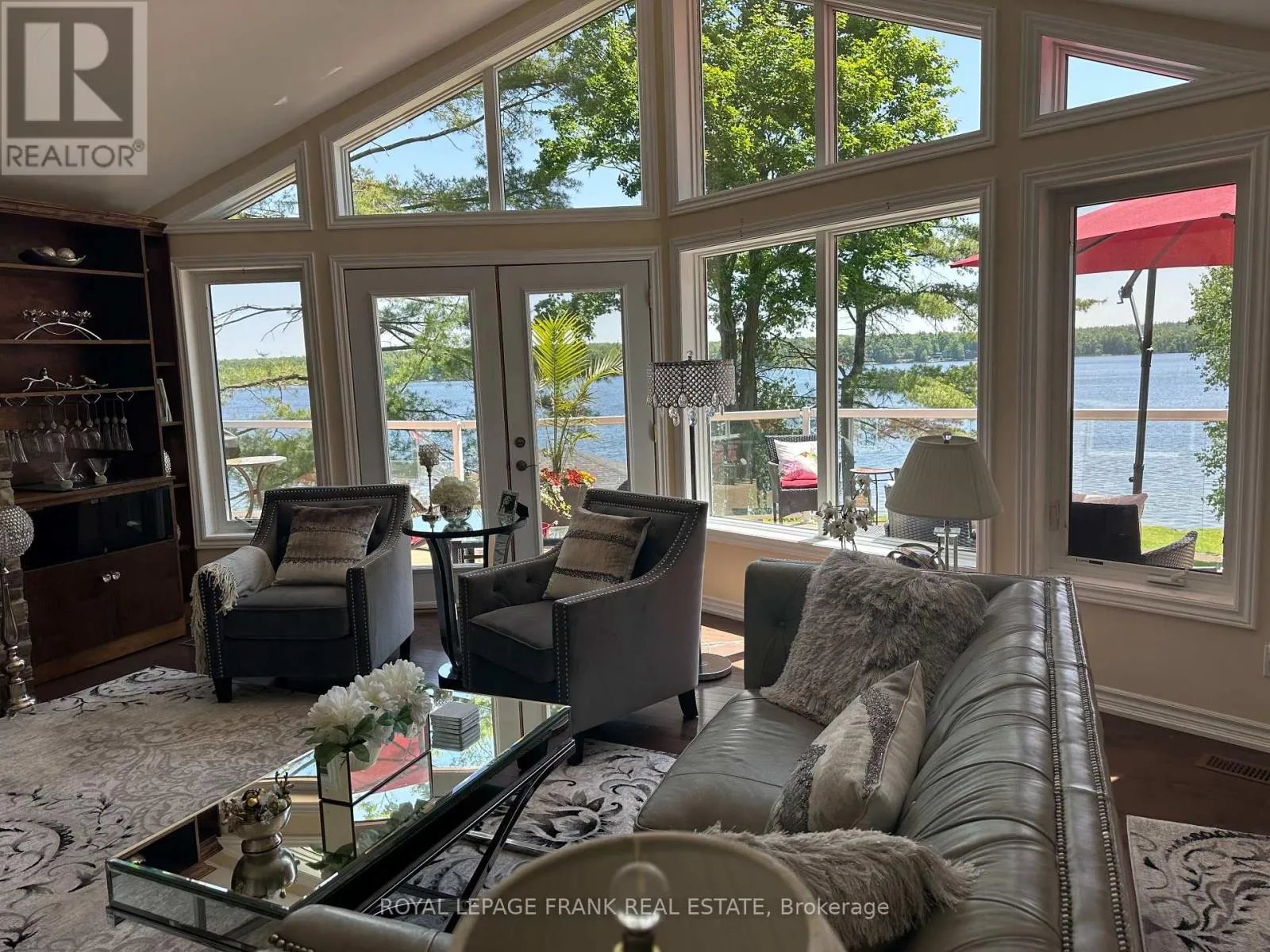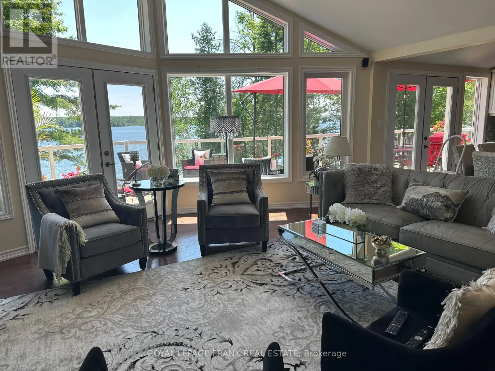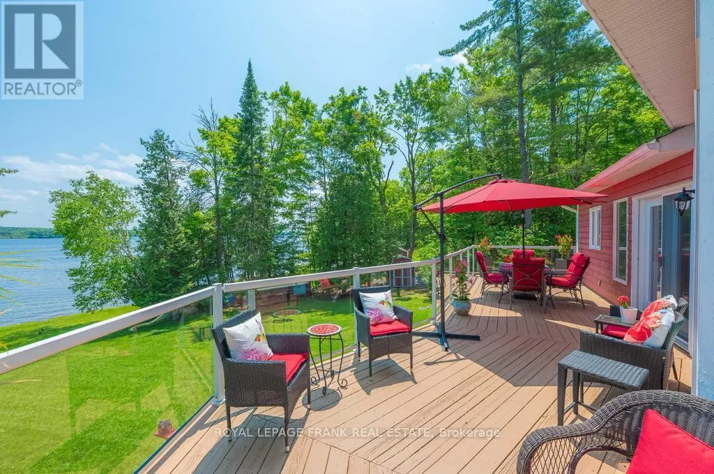 Six Foot Bay & Fire Route 37 2 homes in 1 and a double lot. Wow is what you will say the minute you drive in to this beautiful Buckhorn Lake property. You will be amazed at the gently sloping lot, beautiful perennial gardens, and the commanding views of the lake from the 209 feet of frontage. This stunning home is finished to perfection on both floors offering 2 wonderful, self contained, living spaces with a separate entrance perfect for multi generational living or for family and visiting friends. Featuring 5 bedrooms, 4 baths, 2 propane fireplaces, 2 lovely custom kitchens, and magnificent views from both levels of the home, with the lower level also having its own primary suite with a full ensuite bath and walk in closet. The total finished area is 3,250 square feet. The two 60 ft decks expand the length of the home and are perfect for entertaining. Enjoy the rustic lakeside cabin as is or add your personal touches to this little gem. The double sized lot is nicely treed, gently sloping, and private. There is plenty of parking close to the house and alternative parking above with steps to the house. Close to marinas, shopping, and golf at Six Foot Bay is only minutes away. Buckhorn Lake is part of a five lake chain of lock free boating. Boat to Buckhorn or Bobcaygeon for lunch and shopping or enjoy an afternoon of watersports. This one of a kind home and property is situated on a well maintained, year round road minutes from a township road and school bus route. (id:27476)
