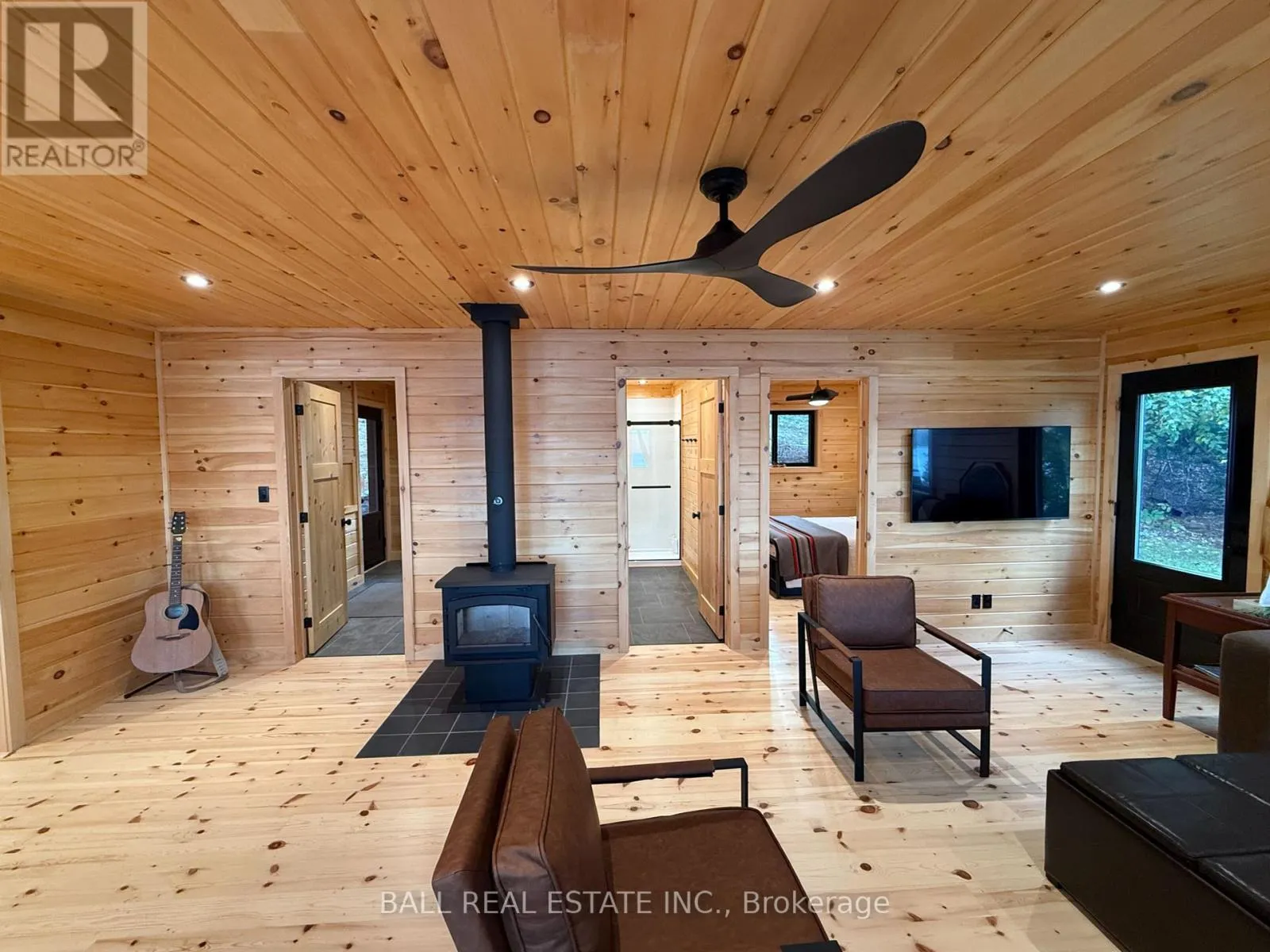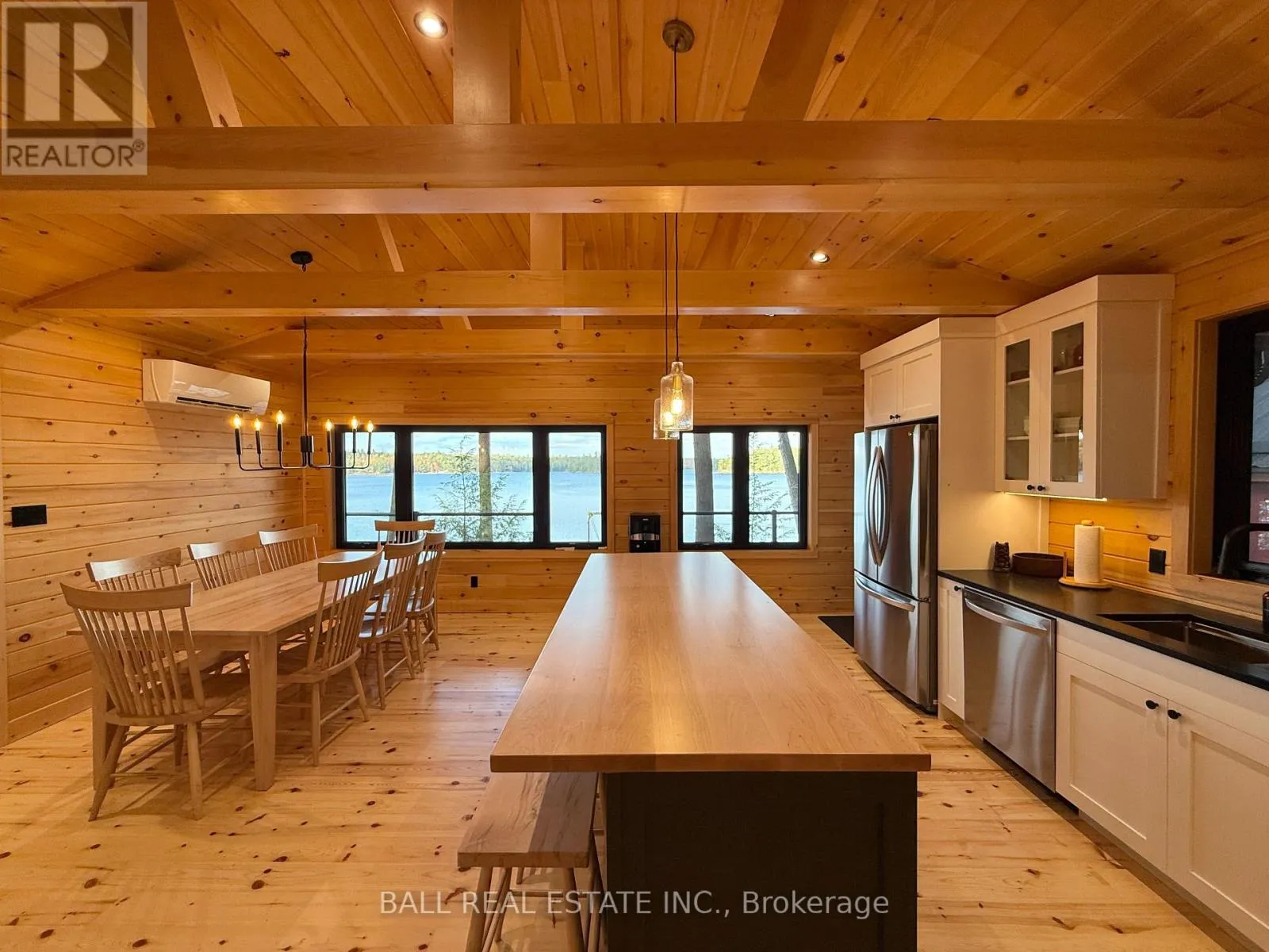 McGinnis Lake Rd / FR 214 Fully renovated 4 season cottage on beautiful Beaver Lake! This board & batten bungalow is set right at the waters edge, tucked in the trees on an acre of land with 112ft owned, clean waterfront for great swimming, fishing and boating on this desirable 7 lake chain. Significant quality renovations inside and out, ready for you to start enjoying cottage life with all new appliances (2024) and furnishings included. Newly updated metal roof, foundation, retaining wall, siding, full water system with heated waterline, heat/AC pumps, WETT woodstove, baseboard heat in crawl space, Generlink, EV charger, composite decking, staircases, flagstone landscaping etc. Step inside to beautiful open concept living space with spectacular lakeviews from the premium kitchen with eat-up island, dining and living room. Offering 3 bedrooms + loft, full bathroom and laundry with updated 200amp panel, on demand hot water, softener etc. Walkout to lakeside deck or firepit that are just steps to the R&J Machine dock 20x12 with 2 seadoo ports & winch. Great lakeside storage outbuilding with kayaks & racks included, plus the outdoor furniture, Weber BBQ & Blackstone. Nothing left to do to start living quality cottage life on Beaver Lake and this sought-after lake chain! (id:27476)