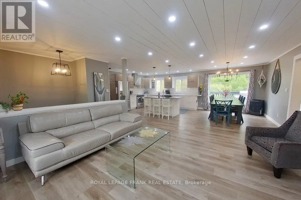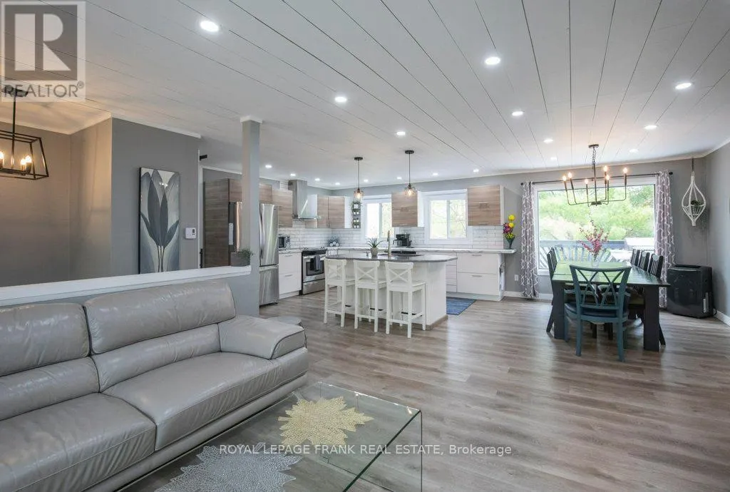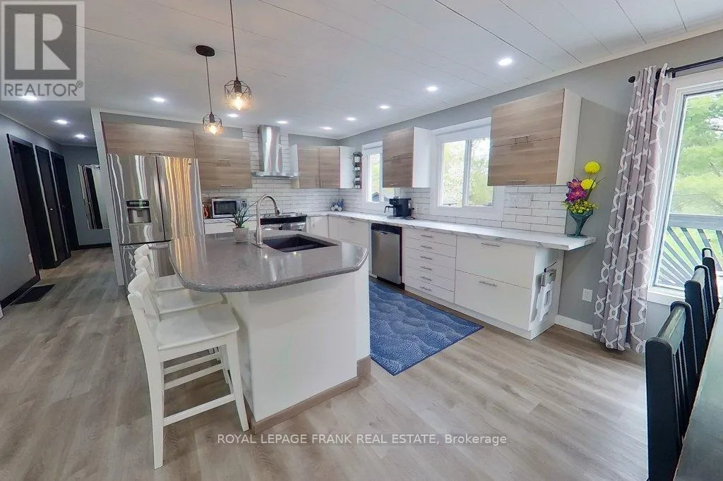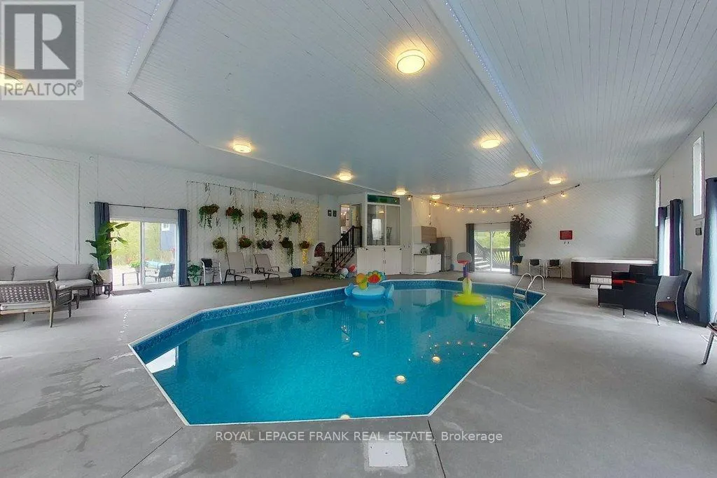Hwy #28 N, West on County Rd #36 OR Buckhorn Rd, East on County Rd #36 Escape to this captivating raised bungalow, nestled in a peaceful natural setting. Featuring 3+1 bedrooms, 3 baths and a 2nd kitchen. This home offers a luxurious lifestyle with its stunning indoor heated saltwater pool - enjoy summer year-round! Relax in the hot tub or unwind in the infrared sauna. The main floor offers 3 bedrooms and 2 bathrooms, complemented by an open-concept design. The kitchen, dining area, and living room flow seamlessly together, illuminated by an abundance of natural light streaming through the large main floor windows. The basement is fully equipped for multi-generational living offering a bright, finished lower-level with a walkout, a kitchen, a 4th bedroom and an exercise room. The property also features a generous 36' x 28' insulated shop with a 16' ceiling and 2 overhead doors, the front is 12' x 12' and the back is 8' x 8'. Attached to the shop is an oversized 2-car garage. Additionally, a garden shed is included to conveniently store your tools and outdoor equipment. With a Pre-List Home Inspection completed, this unique property offers boundless opportunities. Don't let summer end - live it here every day of the year! (id:27476)