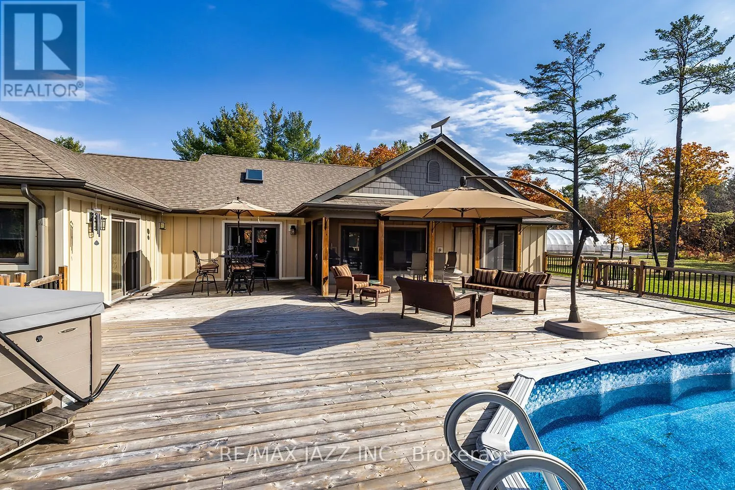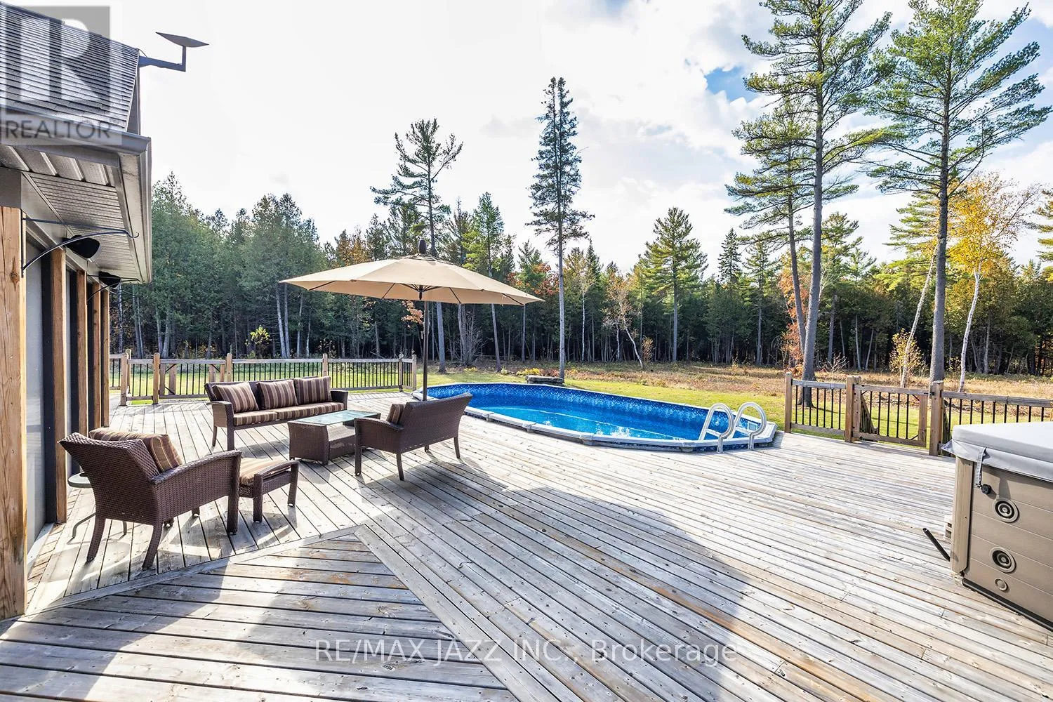 HWY 36 & QUARRY RD Quiet country living awaits in this beautiful home nestled amongst soaring trees on 33 Incredible Acres. This custom-built home features an open concept layout design, vaulted ceilings, stunning gourmet kitchen with stainless steel appliances including a bar fridge .Primary bedroom features a opulent 5-piece ensuite bathroom, walkout and closet organizers. Entertain family and friends in the hydro pool hot tub and large above-ground pool. *mud room, spacious gym area, and durable epoxy flooring, Built to last with James Hardie board and cultured stone faade, R32 insulated walls, R60 insulated ceilings, all windows and doors are color-matched to complement the exterior design. Huge workshop measuring 30 x 50 with a heated mezzanine at the back, plus a heated storage warehouse above. Enclosed rear screened porch that's bug-proof and has a direct BBQ hookup.*T (id:27476)