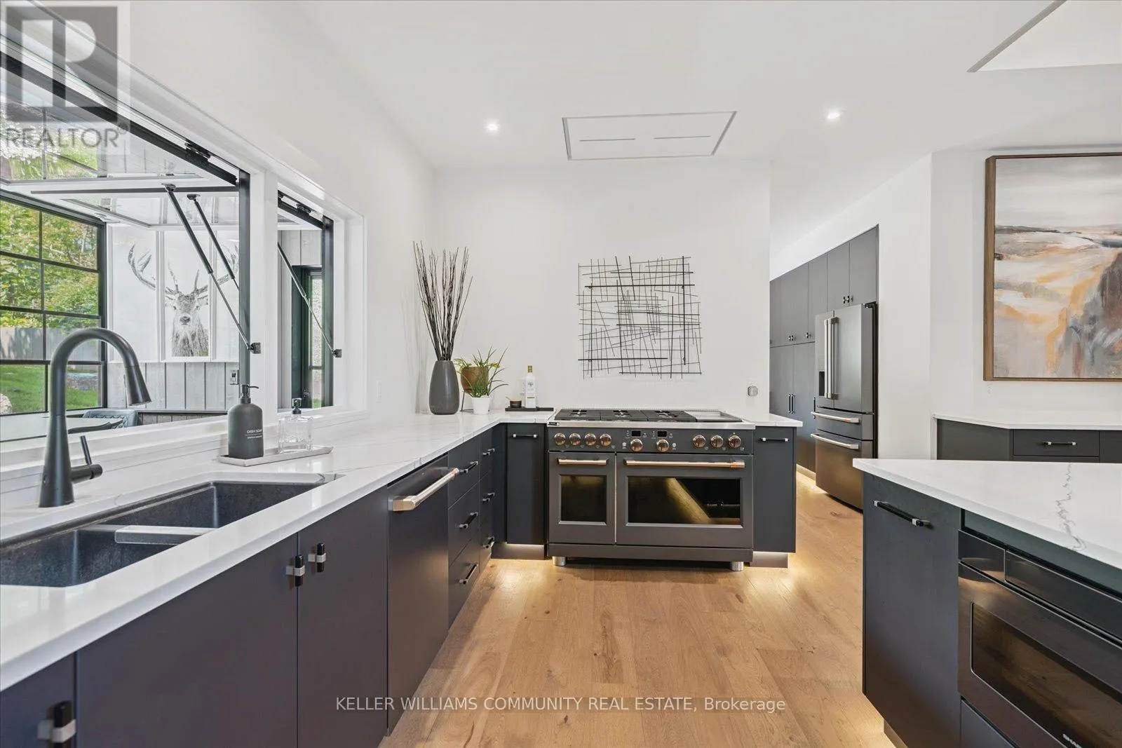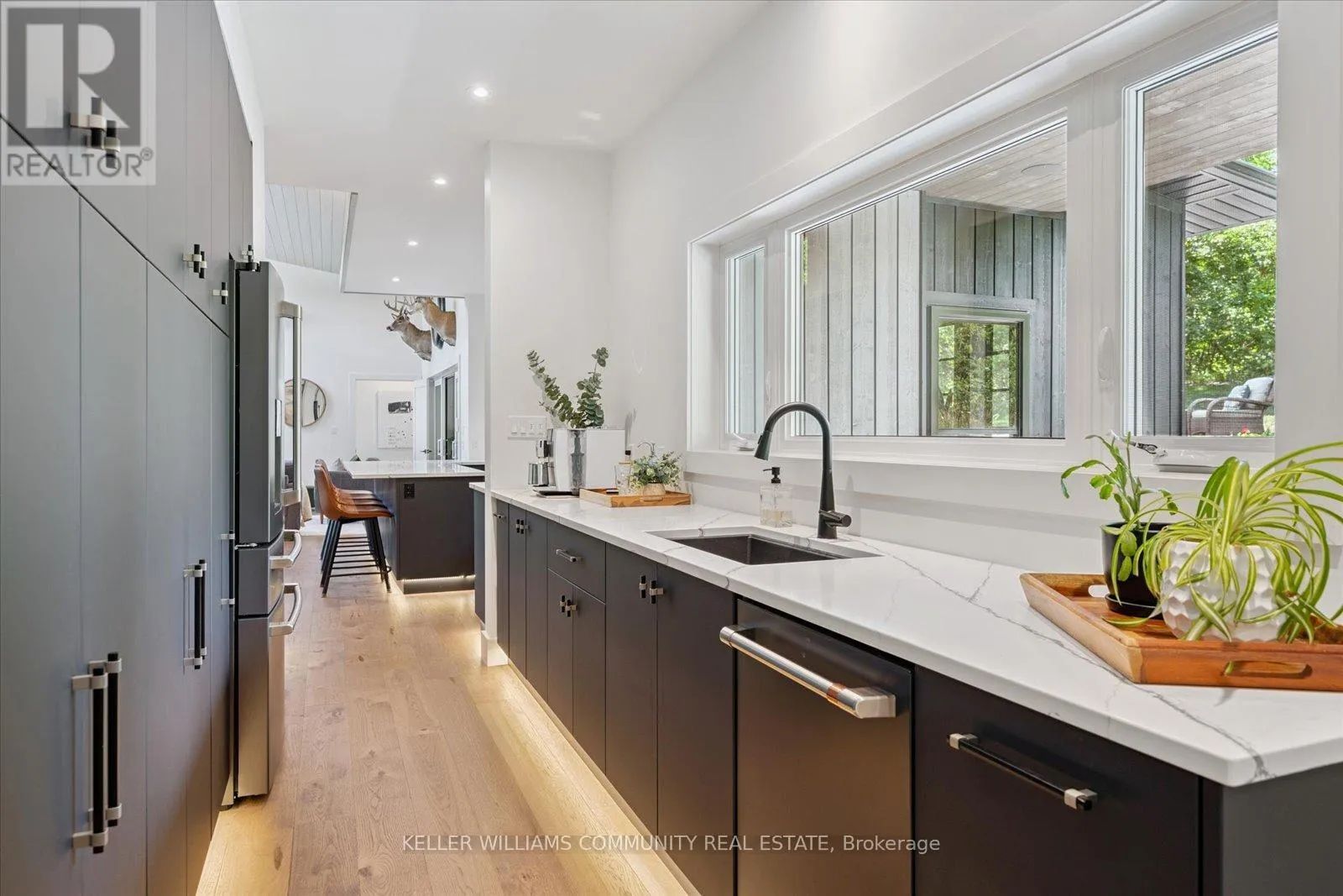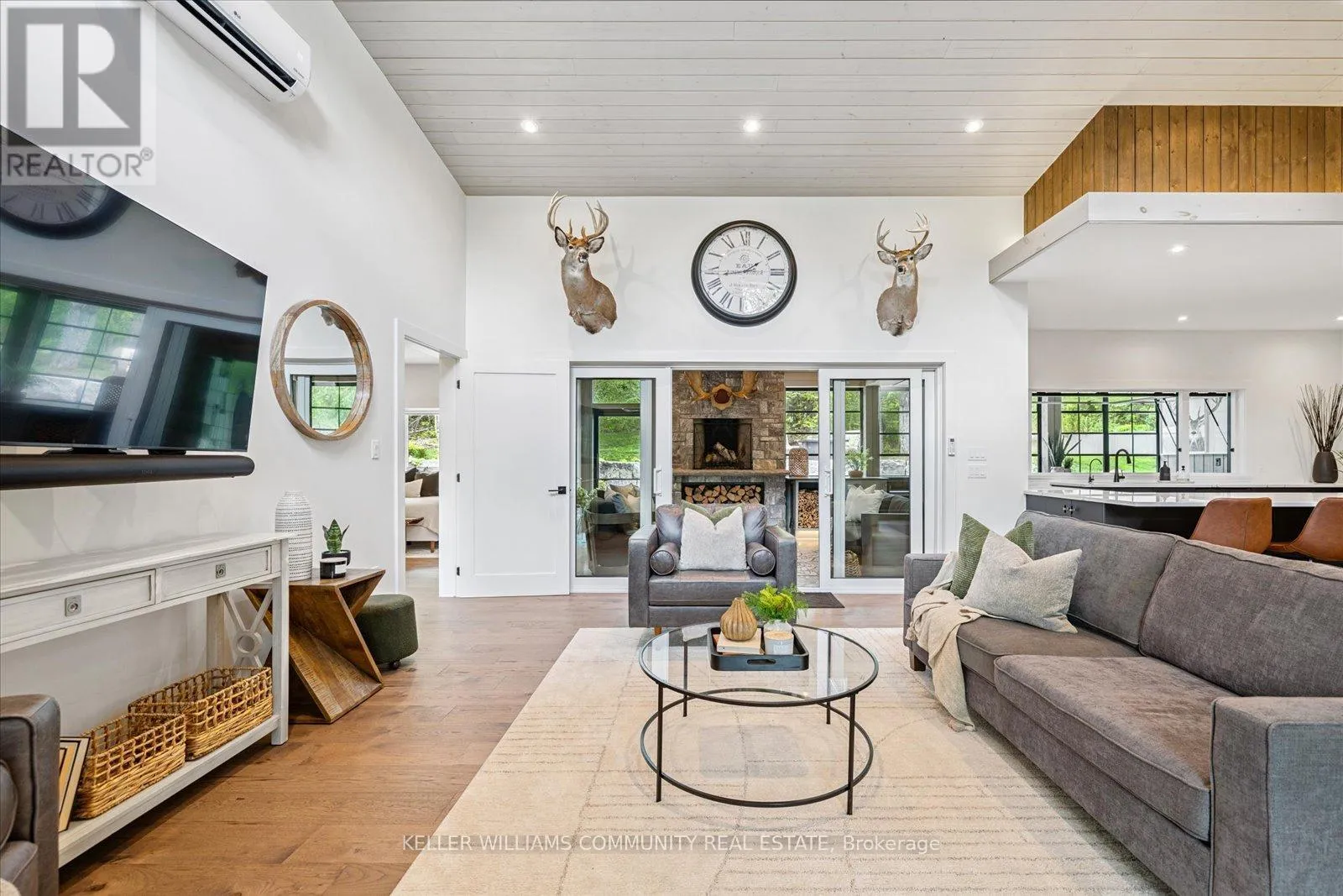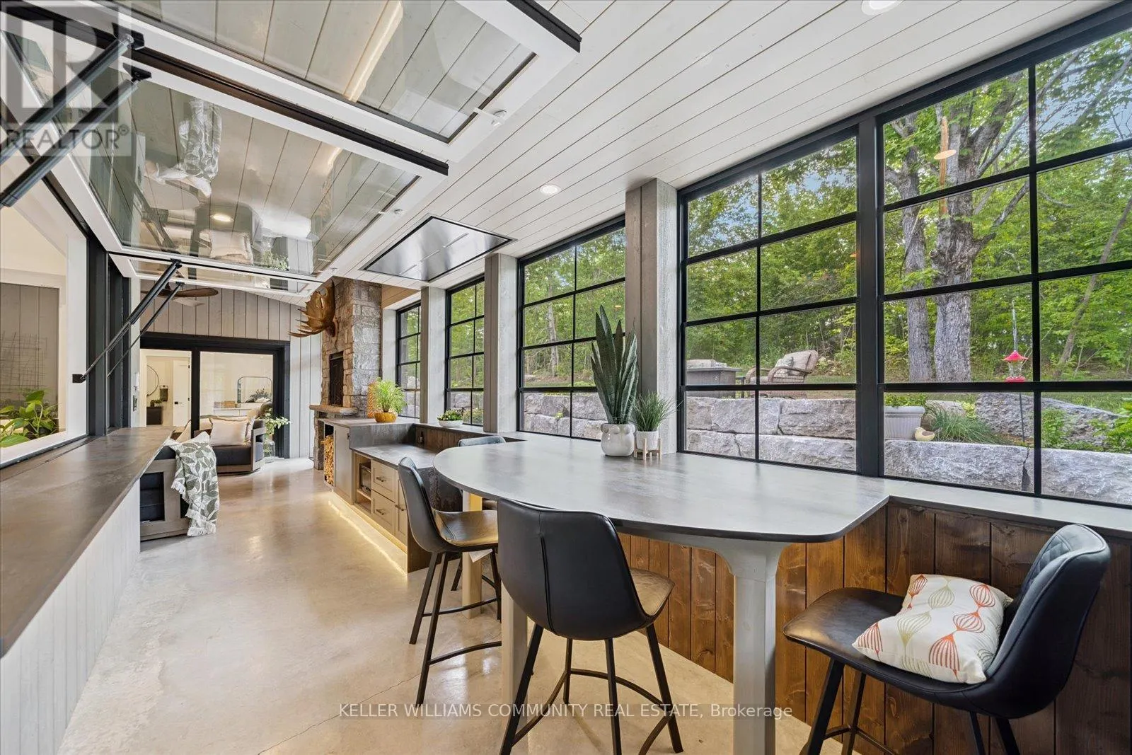 Cross Streets: Lakehurst Rd / Laplantes Rd. ** Directions: From Buckhorn take Lakehurst Rd West, turn right on Laplantes Rd. Welcome to 33 Laplantes Road, a custom-built multi-generational residence where craftsmanship, comfort, and natural beauty come together. Designed with intention from the ground up, this home offers an exceptional standard of living for families who value space, flexibility, and long-term planning.Radiant in-floor heating runs throughout the entire home, including the garage and sunroom. The chef-inspired kitchen features Caf appliances, double dishwashers, quartz countertops, and a full butler's kitchen for effortless entertaining and large family gatherings.With nearly 5,000 sq. ft. of finished, heated space (including the garages), the floor plan is highly efficient with no wasted square footage. The upper-level guest suite includes its own full kitchen, private living room, and bathroom-an ideal setup for multi-generational living, long-term guests, or adult children who need independence and privacy while staying close to home.A major highlight is the professional-grade heated workshop and garage, designed for serious craftspeople, collectors, and entrepreneurs. With 10' bay doors, an integrated dust extraction system, private office, wash bay, bathroom, and dedicated laundry, it's a rare, high-functioning space. The zoning also allows for a home-based business, creating even more opportunity to live and work on-site.The heated sunroom, anchored by a striking 1796 Rumford fireplace, features overhead-style windows that open to the outdoors and connect seamlessly to the kitchen-perfect for gatherings or quiet mornings. Outside, enjoy multiple stamped concrete patios, an outdoor shower, and a covered BBQ pavilion, all set in a private, wooded landscape.Located just minutes from pristine lakes and cottage-country amenities, this property offers a rare blend of luxury, privacy, function, and nature-a true lifestyle estate with timeless multi-generational appeal. (id:27476)