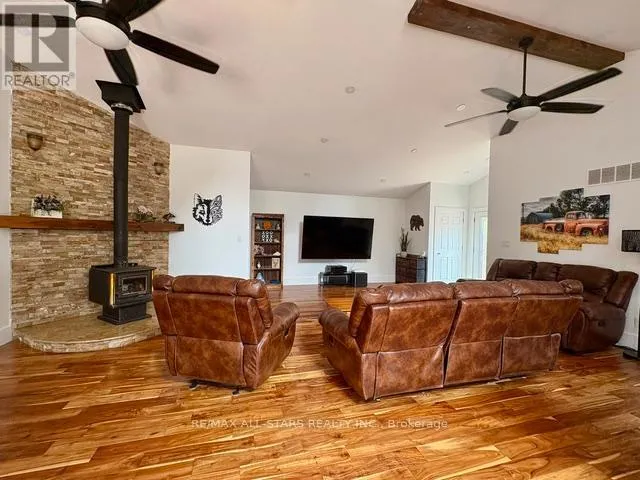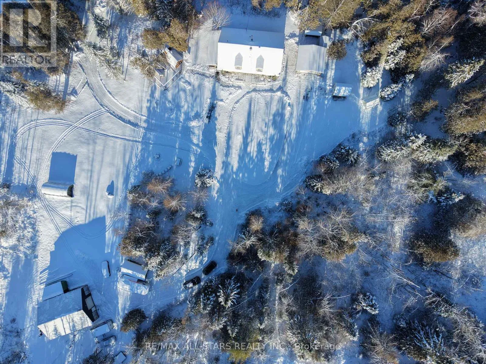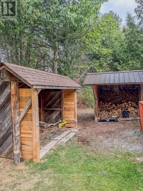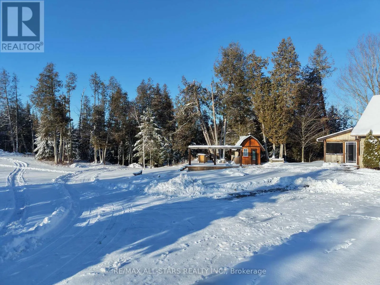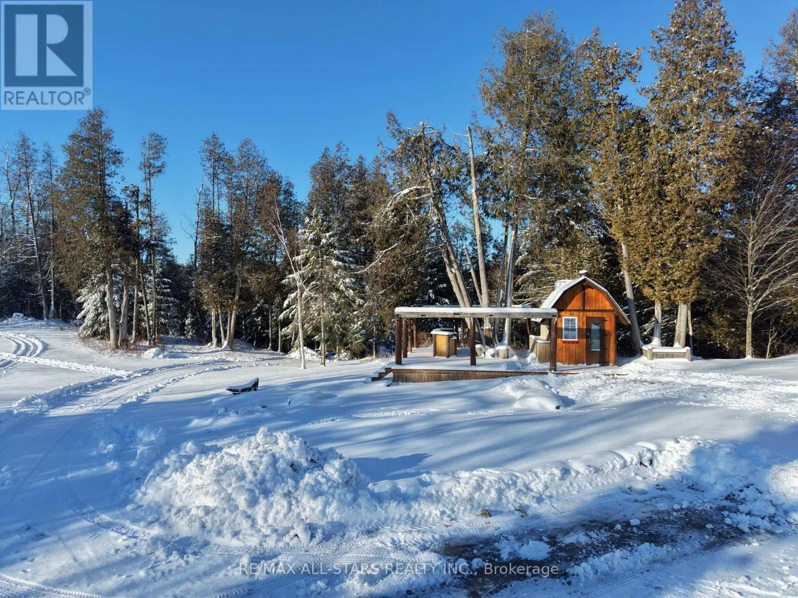 Cross Streets: GALWAY AND HWY 121. ** Directions: Hwy 121 to Galway Rd. Welcome to this truly remarkable bungalow, a little paradise nestled on a stunning 50-acre lot. This charming home features an open concept design that seamlessly blends warmth and elegance. The heart of the residence is a chef's kitchen, perfect for culinary enthusiasts, while the inviting living room boasts a cozy wood-burning fireplace, ideal for relaxation.Natural light floods the space through skylights, showcasing picturesque views that surround the property. This home is an entertainer's dream, complete with an outdoor entertaining area that features a mini bar, a soothing sauna, an outdoor shower, and a stylish two-piece bath-perfect for gatherings or leisurely moments in the fresh air. For those enthusiasts, the large insulated garage/workshop offers ample storage, ideal for housing vehicles and equipment. Explore a vast network of trails, perfect for snowmobiling, walking, and outdoor adventures. A charming bunkie with a loft adds to the charm and versatility, providing extra space for guests or relaxation.Conveniently located close to amenities (25 minutes to Bobcaygeon, Minden, Fenelon Falls, and approximately 1 hour to Peterborough), this home offers the perfect blend of tranquility and accessibility. This property offers it all - privacy, recreation, loads of storage, shop, storage, and breathtaking views. (id:27476)