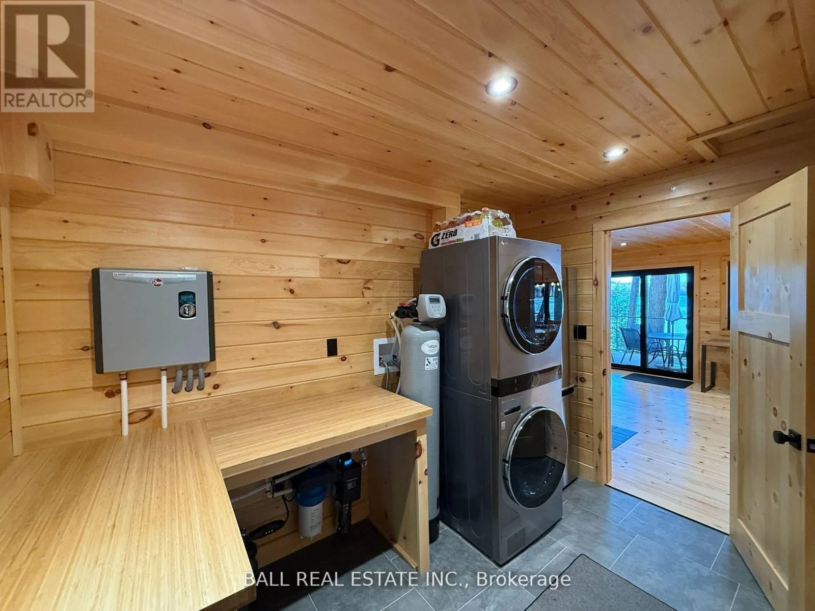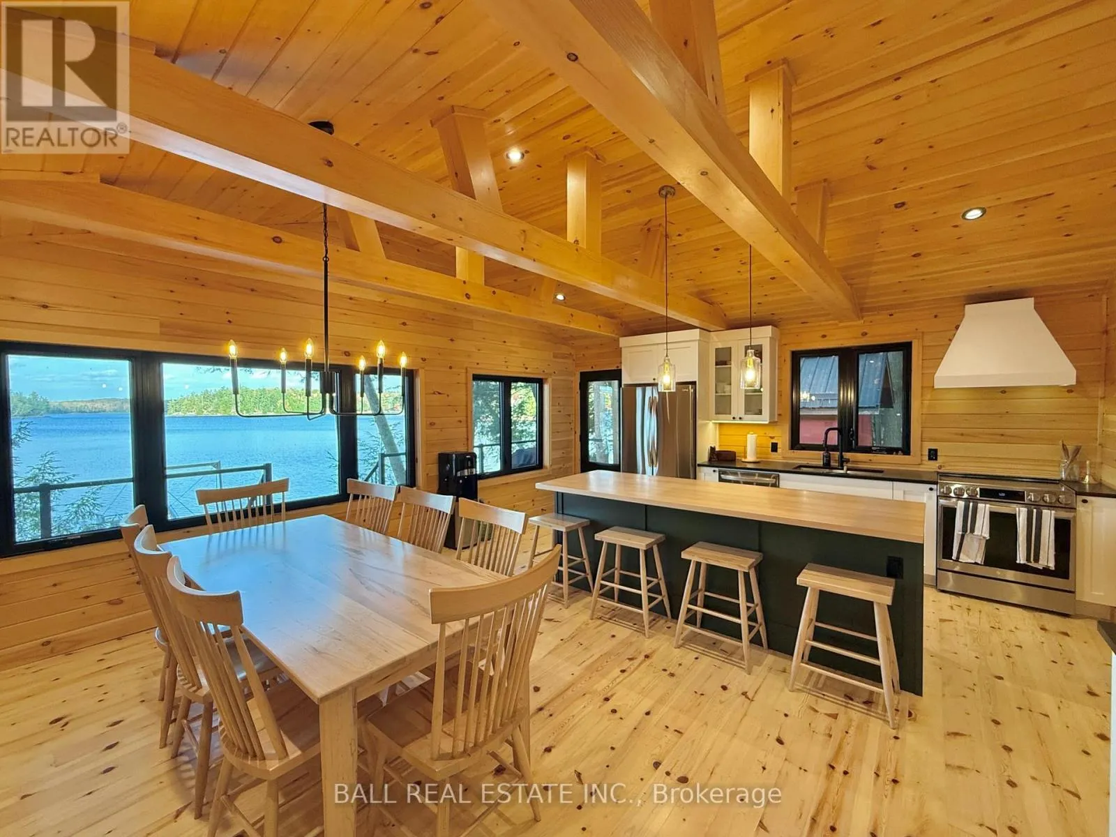 McGinnis Lake Rd / FR 214 Fully renovated 4 season cottage on beautiful Beaver Lake! Board & batten bungalow set right at the waters edge, tucked in the trees on an acre of land with 112ft owned, clean waterfront for great swimming, fishing and boating on this desirable 7 lake chain. Significant quality renovations inside and out, ready for you to start enjoying cottage life with all new appliances (2024) and furnishings included. Newly updated metal roof, foundation, retaining wall, siding, full water system with heated waterline, heat/AC pumps, WETT woodstove, baseboard heat in crawl space, Generlink, EV charger, composite decking, staircases, flagstone landscaping etc. Step inside to beautiful open concept living space with spectacular lakeviews from the premium kitchen with eat-up island, dining and living room. Offering 3 bedrooms + loft, full bathroom and laundry with updated 200amp panel, on-demand hot water, softener etc. Walkout to lakeside deck or firepit that are just steps to the R&J Machine dock 20x12 with 2 seadoo ports & winch. Great lakeside storage outbuilding with kayaks & racks included, plus the outdoor furniture, Weber BBQ & Blackstone. Nothing left to do to start living quality cottage life on Beaver Lake and this sought-after lake chain! (id:27476)
