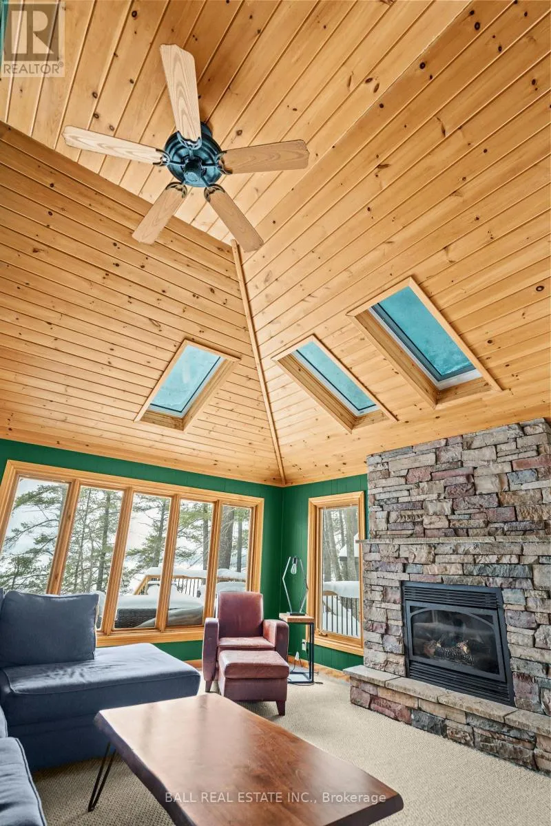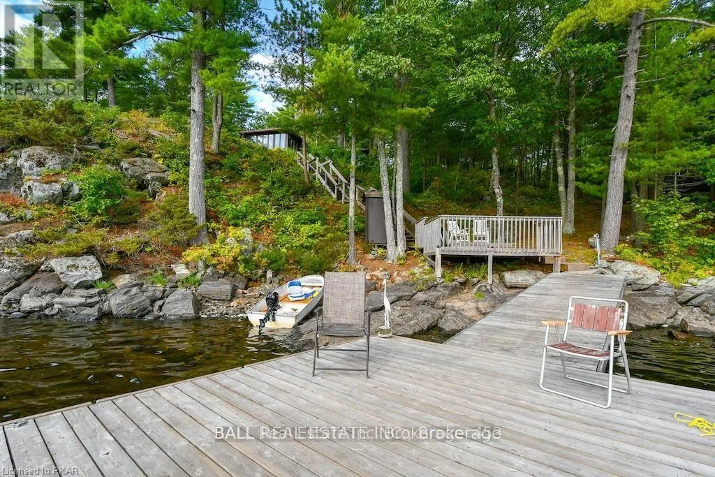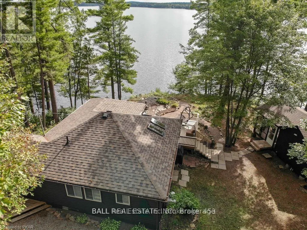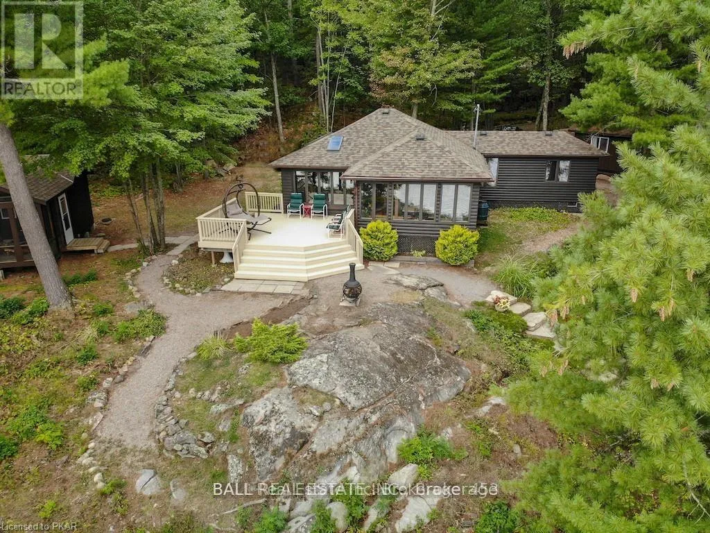 Cross Streets: COUNTY RD 507 NORTH TO KINGS RD, TURN RIGHT AT FR 165. ** Directions: 507 to Kings Road to Fire Rte. 165 driveway #64. With 282 feet of pristine waterfront on Mississauga Lake, this exceptional 2-acre property offers a rare combination of privacy, accessibility, and outstanding waterfront - three elements the most discerning waterfront buyers consistently prioritize. In all three categories - access, privacy, and quality of shoreline - this property easily rates a 9 out of 10, a distinction that is increasingly difficult to find. With only 1 distant neighbour through the forest, and backing directly onto over 100 acres of Ministry of Natural Resources land, the setting feels completely secluded and protected. Despite this peaceful, private environment, the property enjoys excellent year-round access, just minutes off Highway 507 via a municipally maintained road - making arrival effortless in any season. The turn-key 3-bedroom, 1-bathroom bungalow features vaulted ceilings and large windows that flood the home with natural light. The views are stunning from virtually every point on the property, but they are truly unforgettable when looking out toward the water from inside the cottage, relaxing on the back deck, or sitting by the fireplace. Watching the morning sun rise over the lake is a daily experience that never gets old. The dining area walks out to a spacious deck overlooking the lake, perfect for entertaining or quiet mornings with a coffee. Designed for hosting family and friends, the property includes two bunkies, a private sauna, a garden shed (6' x 4'), anda large workshop (12' x 12'). The main bunkie (12' x 14') offers a screened porch (11'5" x 14'), a bedroom, a 2-piece bath, and an attached storage shed (6' x 8'). The second bunkie (8' x 12') sleeps three. Perched on the hillside, the sauna (8' x 12') enjoys elevated lake views. Access the waterfront by stairs or follow the scenic wooded path down to the waterfront deck - an ideal spot for swimming, boating, or simply taking in the quiet beauty of lakeside living. This place delivers on what matters most! (id:27476)