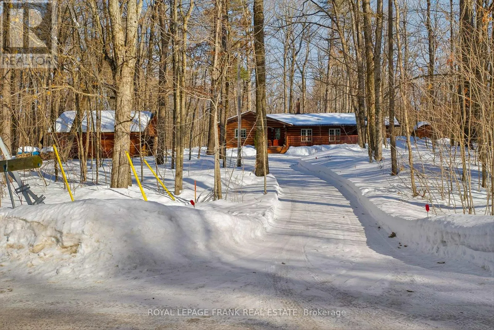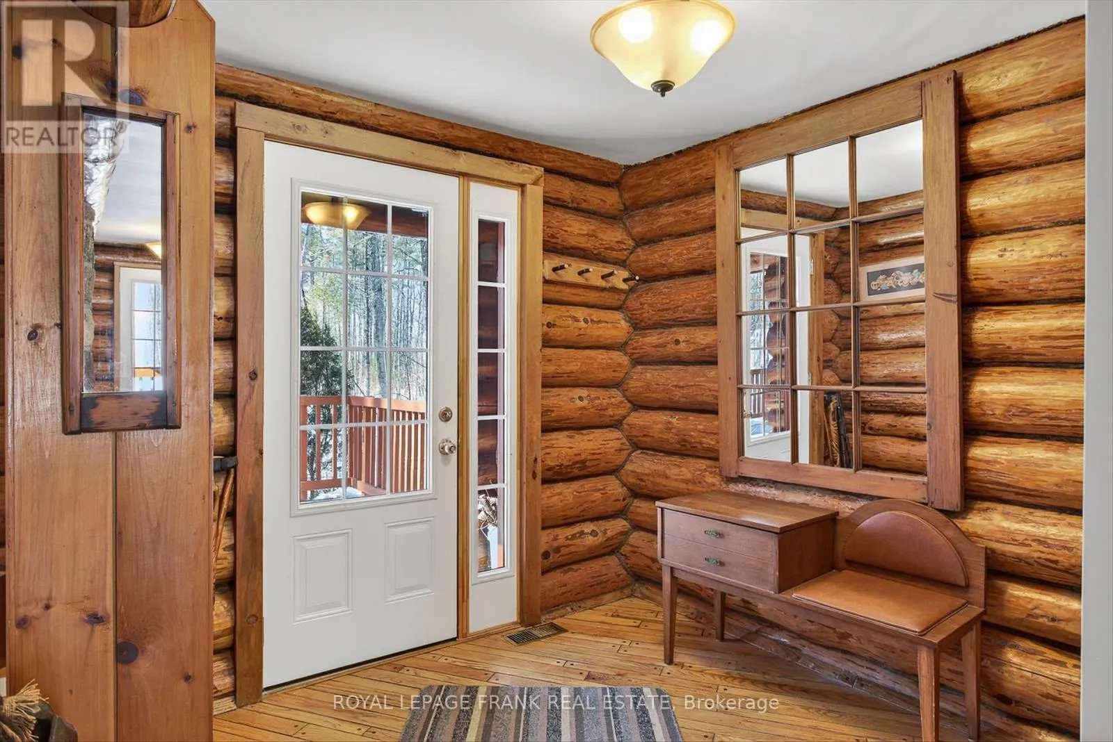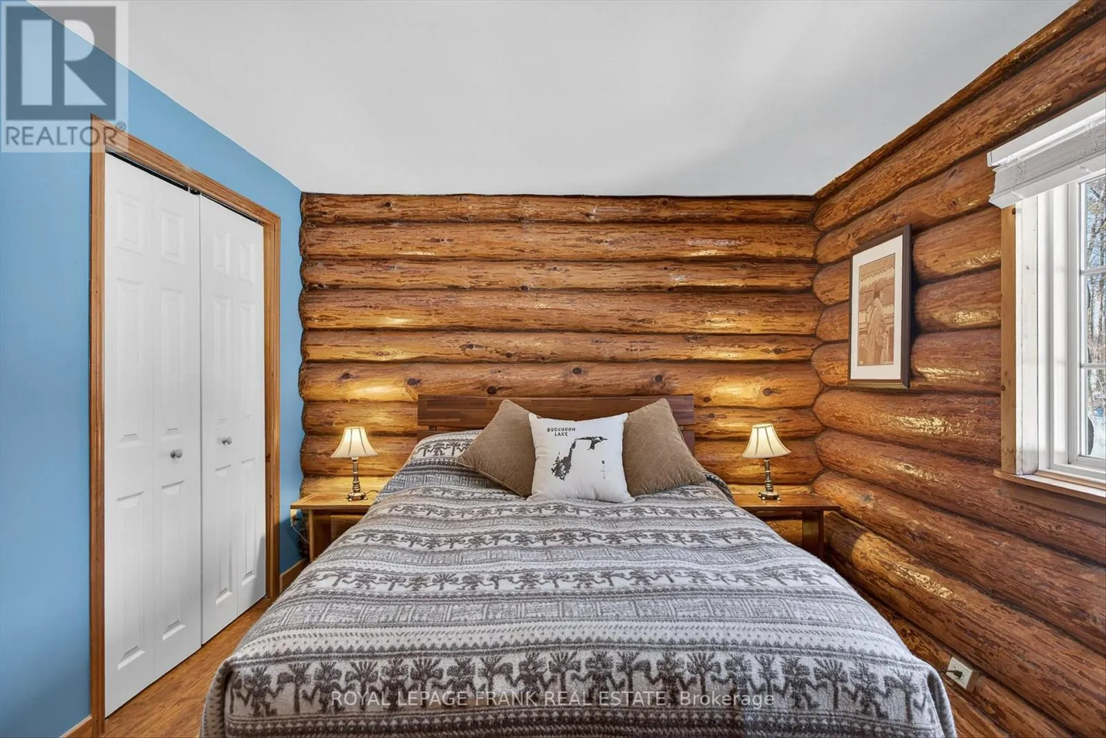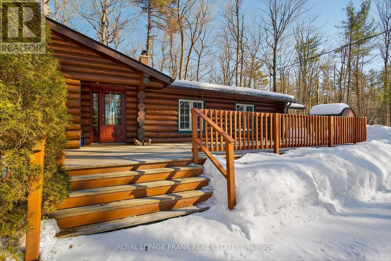 Cross Streets: Barcroft Rd/Sugarbush Cres. ** Directions: Lakehurst Rd to Flynn's Rd to Barcroft Rd to Sugarbush Cres. Lovely log home nestled on over an acre of treed privacy in the great community of the Sugarbush surrounded by Pigeon and Buckhorn Lakes. Just minutes to all amenities in Buckhorn or Ennismore. This property has great swimming and a spot to launch your kayak or canoe at the public access just down the road and only minutes to the beautiful Sandy Beach and 6 Foot Bay Golf Course. This well maintained home features pegged hardwood floors, beautiful granite fireplace (not WETT), vaulted ceilings in the gorgeous dining room with a walkout to a large wrap around deck and a large fire pit. 2 bedrooms on the main floor and a 5 pc bath. Lovely kitchen with glass display cabinetry and peninsula. Downstairs is a large family room, 3rd bedroom, 2pc bath & office! Large utility /furnace room. Detached double car garage and outdoor sauna. Just a few of the updates: Forced air electric furnace (2017), roof (2018), septic (2025), 200 amp electrical panel (2025), outdoor sauna (2019). Note: a private one acre lot also for sale, mls #X12842806 adjacent, could be purchased together. Home Inspection available. (id:27476)