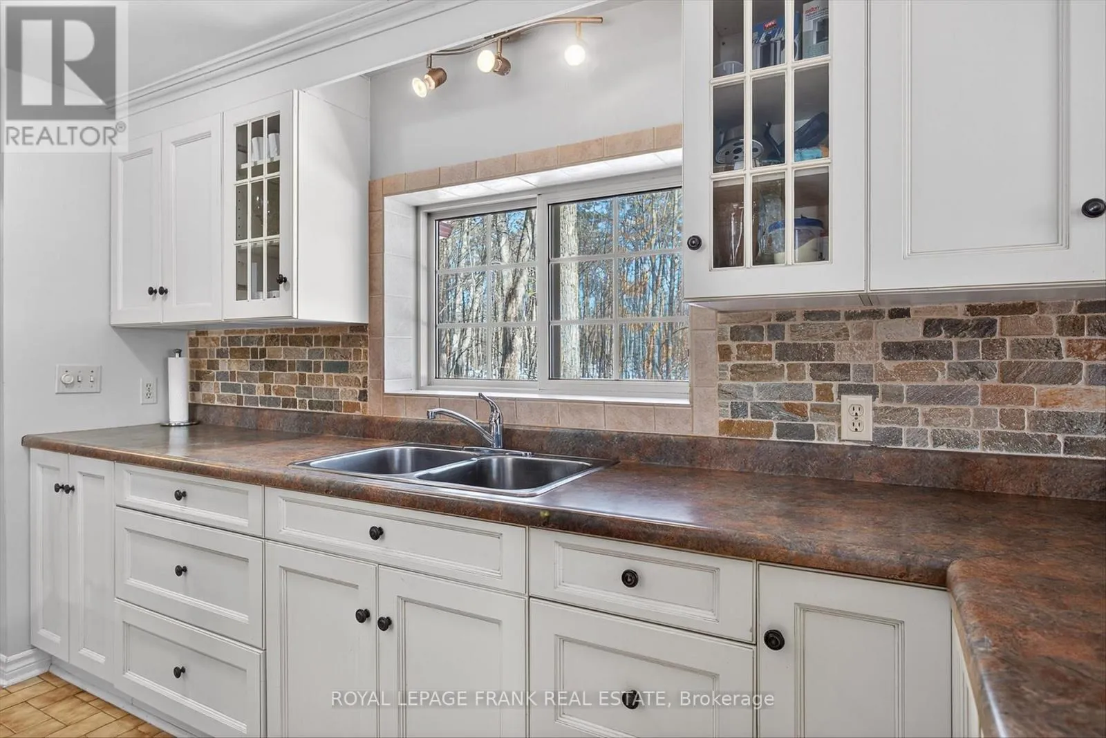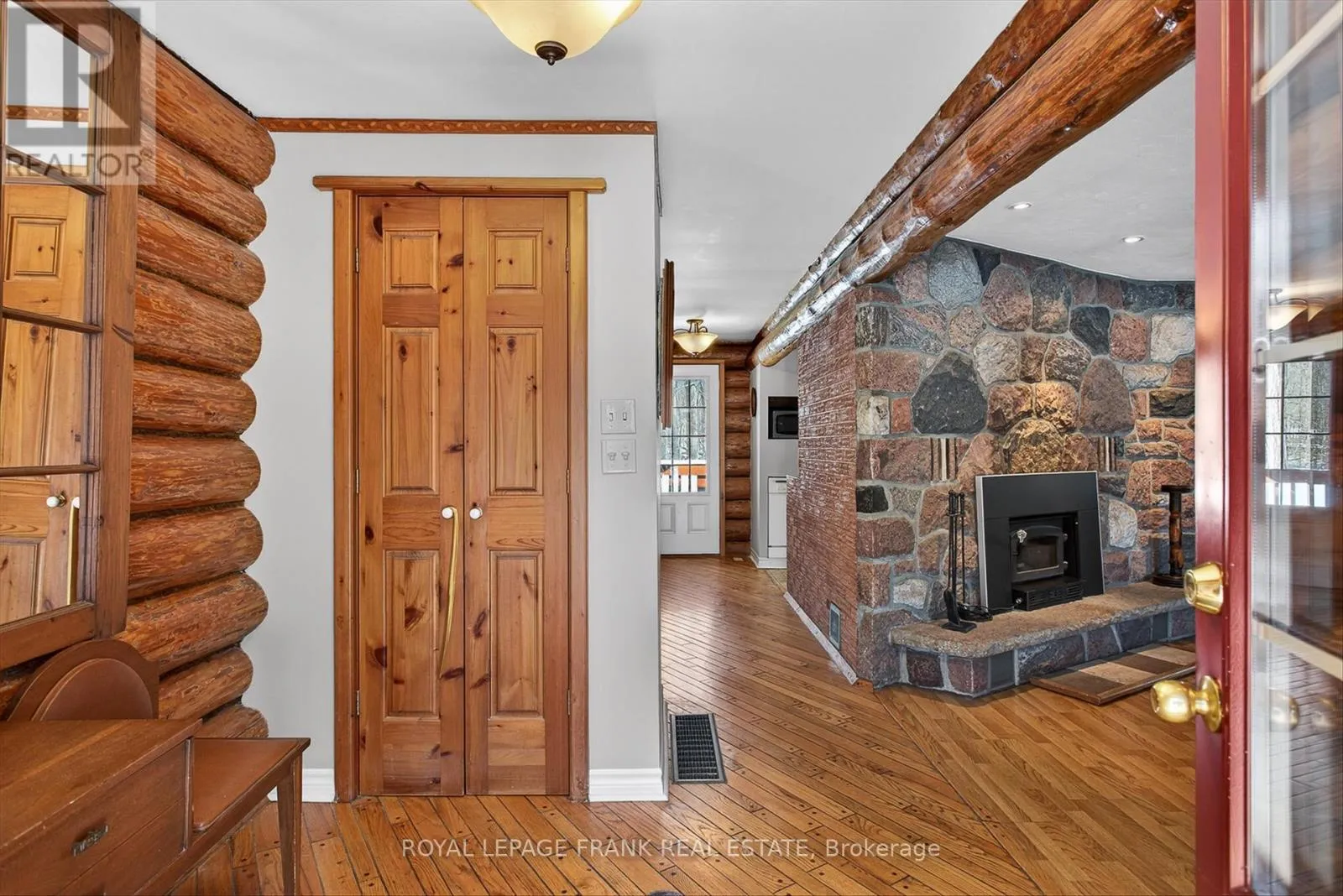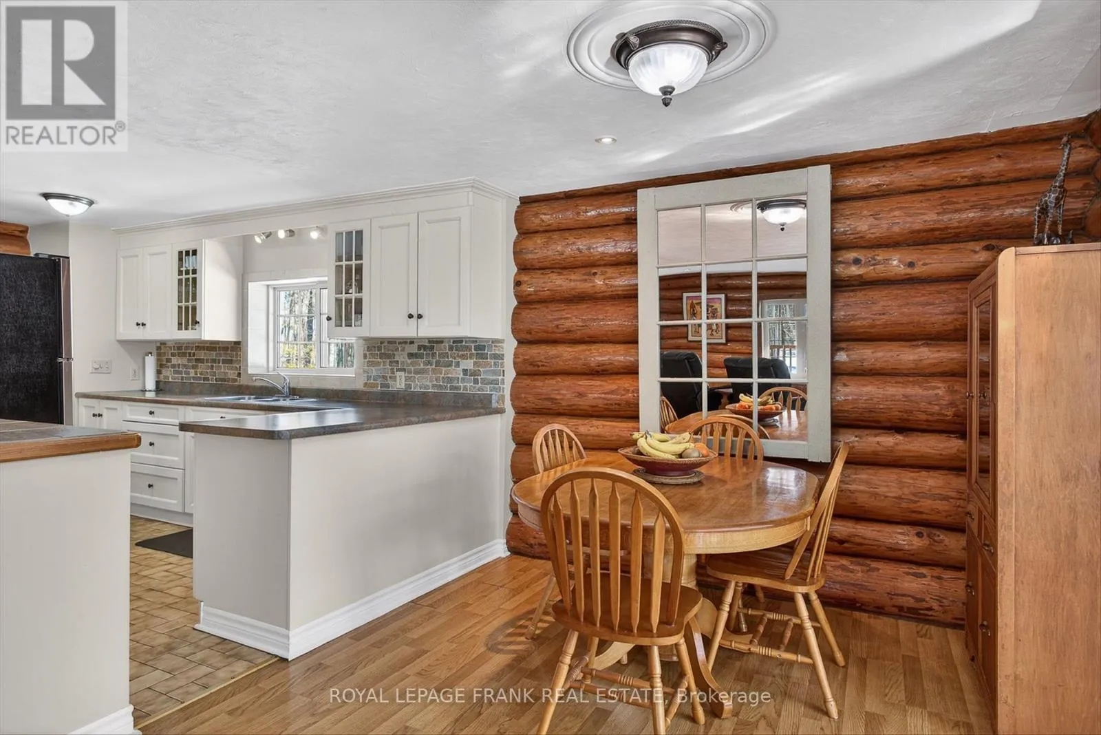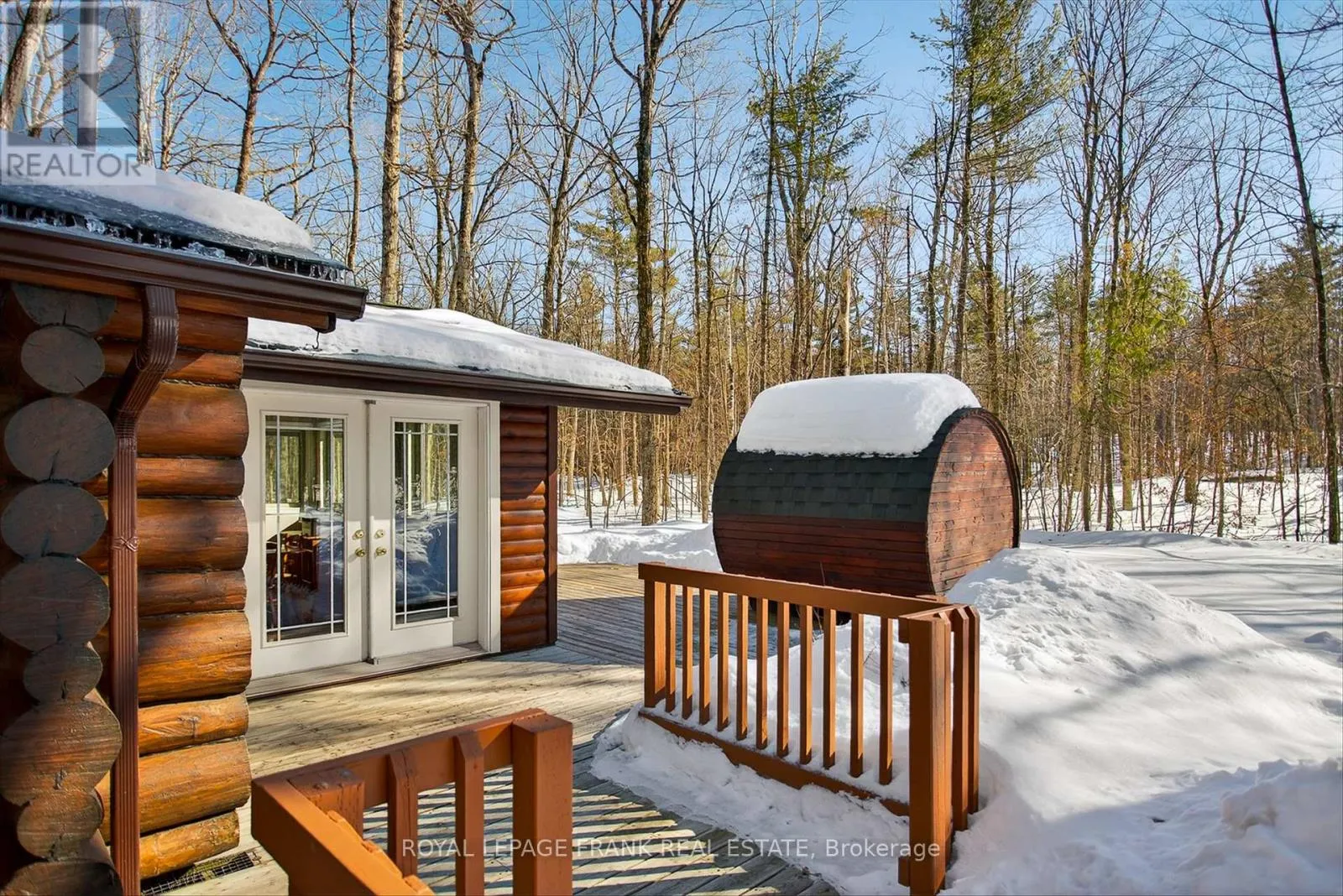 Cross Streets: Barcroft Rd/Sugarbush Cres. ** Directions: Lakehurst Rd to Flynn's Rd to Barcroft Rd to Sugarbush Cres. Lovely log home nestled on over an acre of treed privacy in the great community of the Sugarbush surrounded by Pigeon and Buckhorn Lakes. Just minutes to all amenities in Buckhorn or Ennismore. This property has great swimming and a spot to launch your kayak or canoe at the public access just down the road and only minutes to the beautiful Sandy Beach and 6 Foot Bay Golf Course. This well maintained home features pegged hardwood floors, beautiful granite fireplace (not WETT), vaulted ceilings in the gorgeous dining room with a walkout to a large wrap around deck and a large fire pit. 2 bedrooms on the main floor and a 5 pc bath. Lovely kitchen with glass display cabinetry and peninsula. Downstairs is a large family room, 3rd bedroom, 2pc bath & office! Large utility /furnace room. Detached double car garage and outdoor sauna. Just a few of the updates: Forced air electric furnace (2017), roof (2018), septic (2025), 200 amp electrical panel (2025), outdoor sauna (2019). Note: a private one acre lot also for sale, mls #X12842806 adjacent, could be purchased together. Home Inspection available. (id:27476)