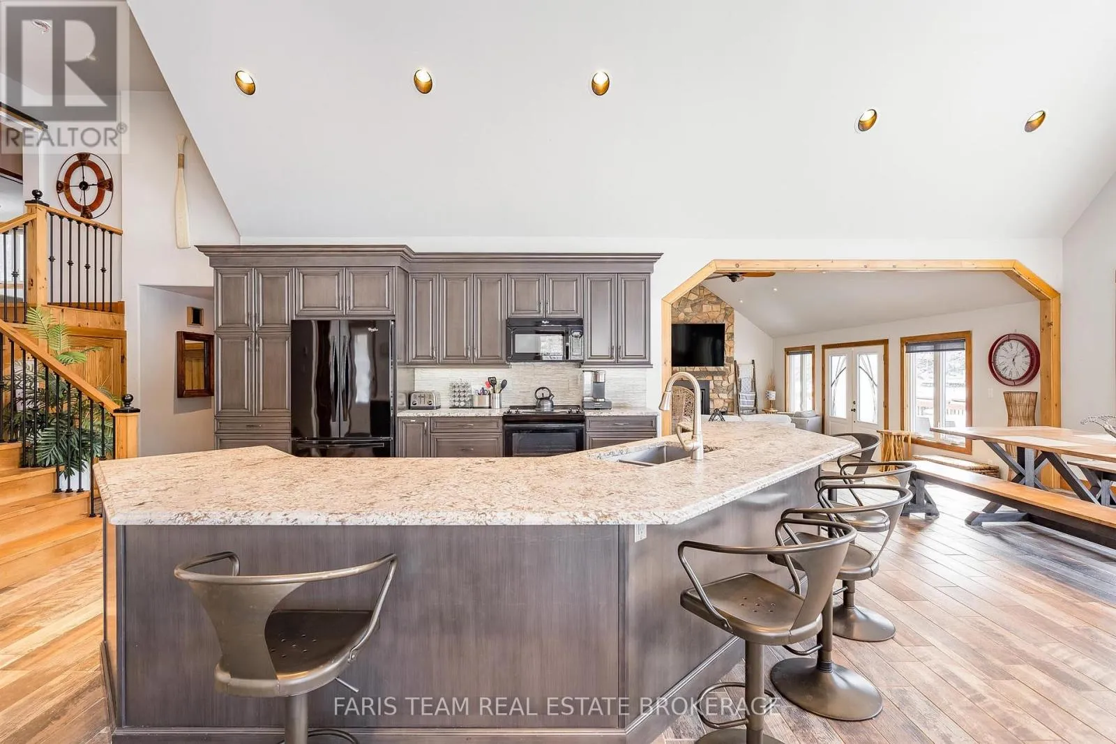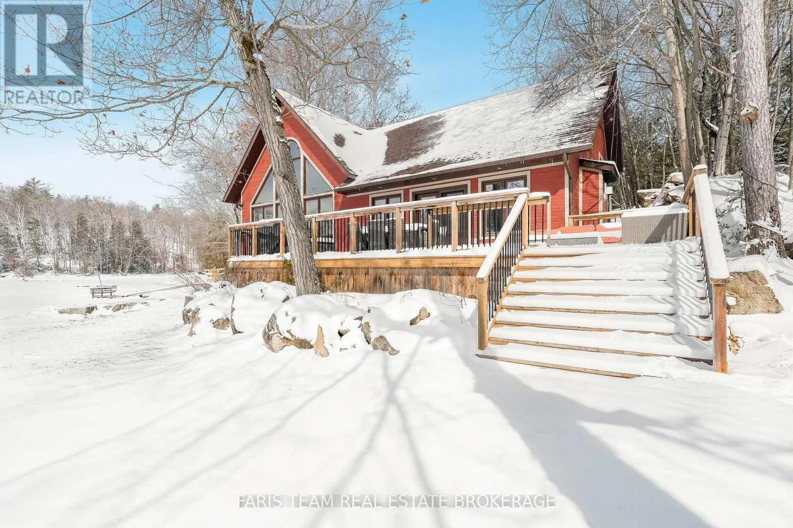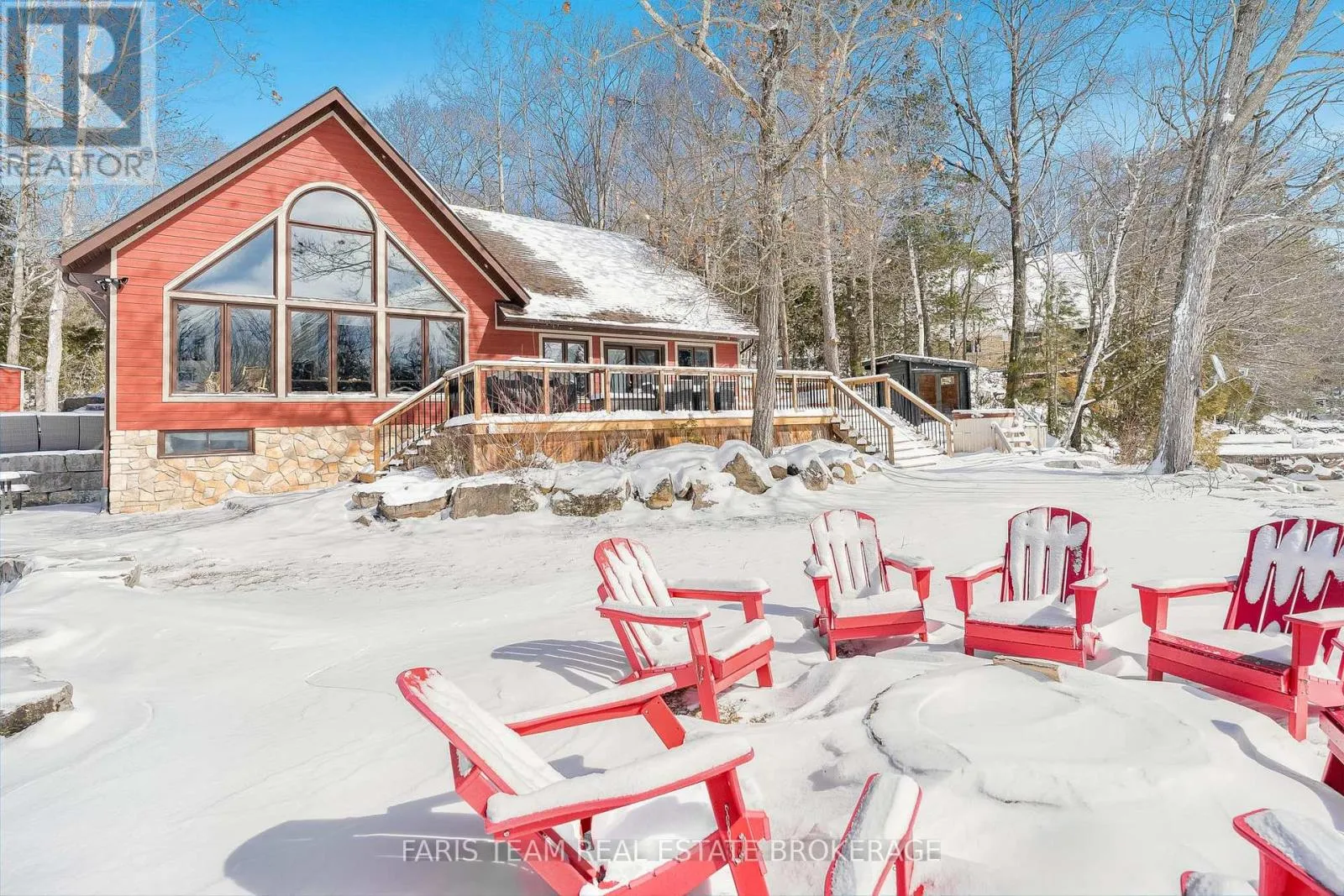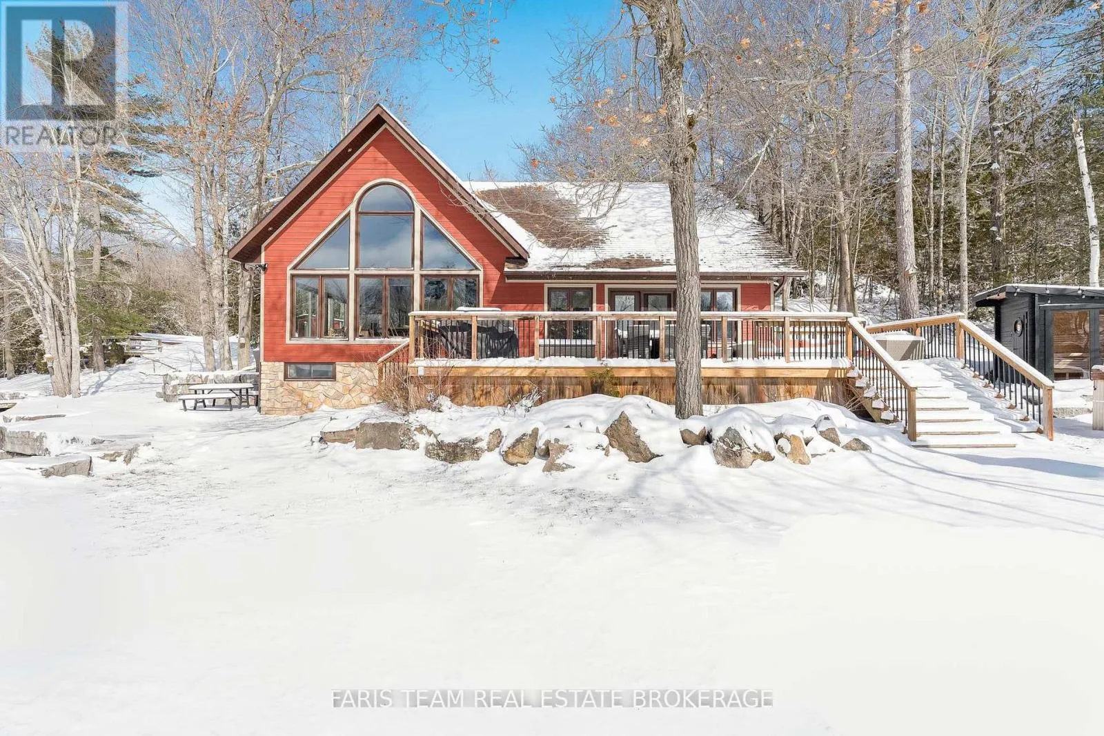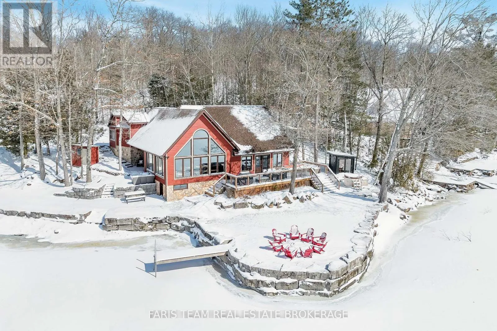 Collins Bay Rd/Fire Rte 394 Top 5 Reasons You Will Love This Home: 1) Rare opportunity to own an impressive 455' of pristine shoreline on Crystal Lake, offering breathtaking waterfront views and endless opportunities for lakeside living 2) Generously sized home featuring four spacious bedrooms, three full bathrooms, and over 2,700 square feet of comfortable living space designed for large families and hosting guests 3) Bright and inviting open-concept main level showcasing soaring vaulted ceilings and an abundance of natural light that fills the home throughout the day 4) Set on over 2-acres of beautifully sized property, complete with two detached garages, a dock system for easy lake access, an expansive deck ideal for entertaining, and a charming bunkie for additional guests 5) Fully furnished and thoughtfully decorated, allowing you to step in and immediately begin enjoying this incredible waterfront retreat. 2,767 fin.sq.ft. (id:27476)