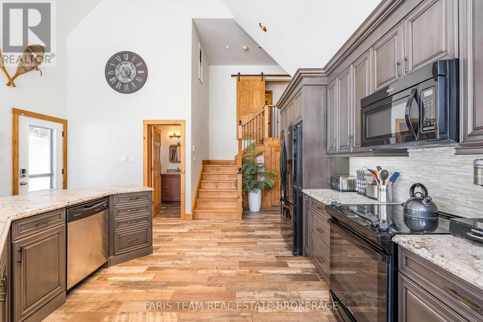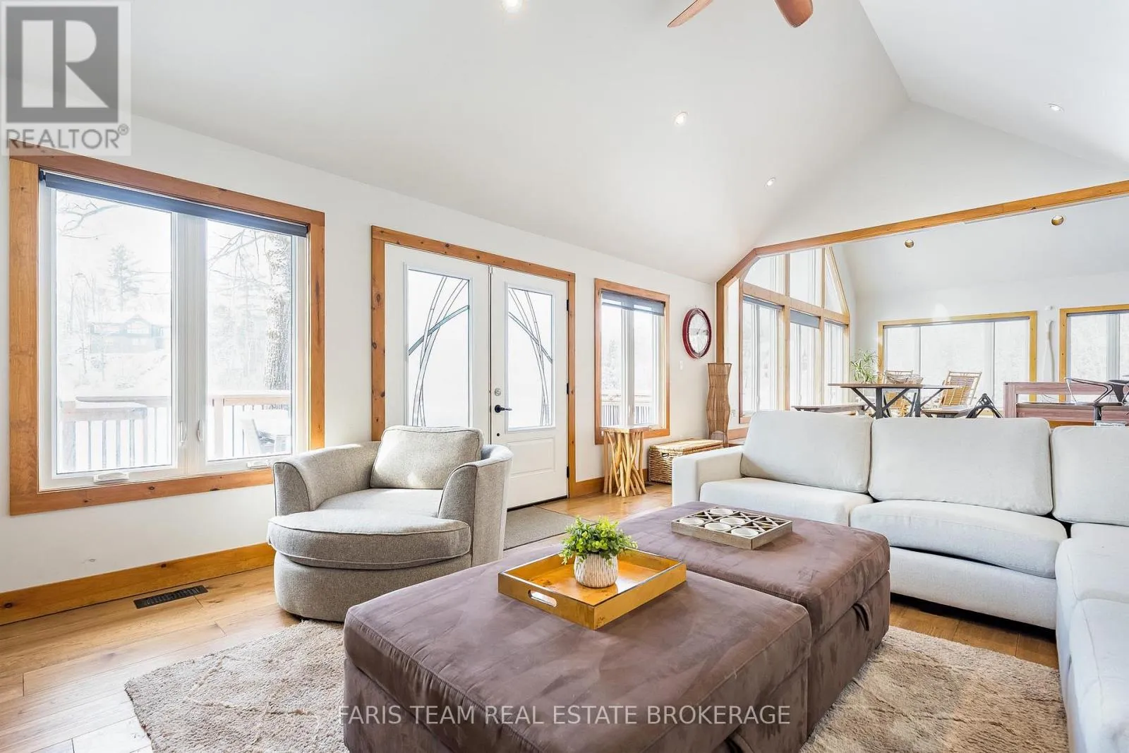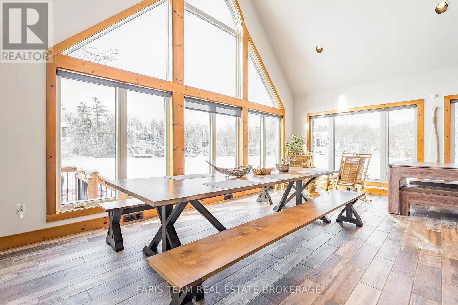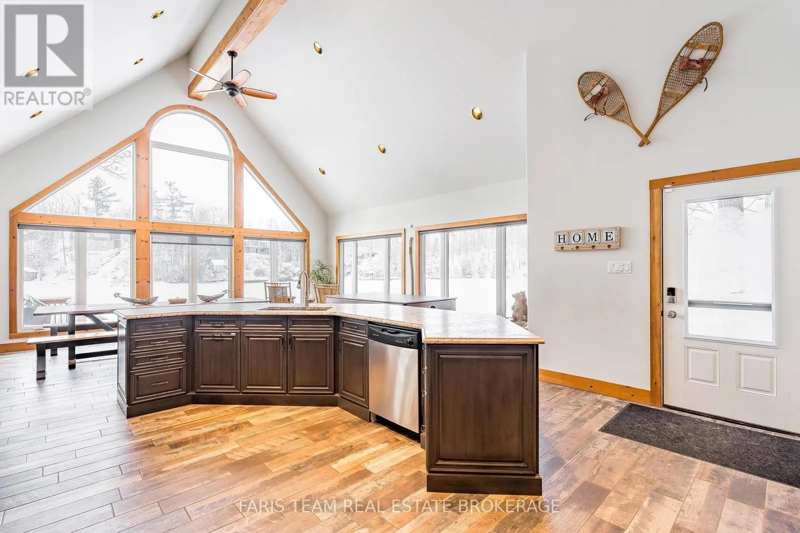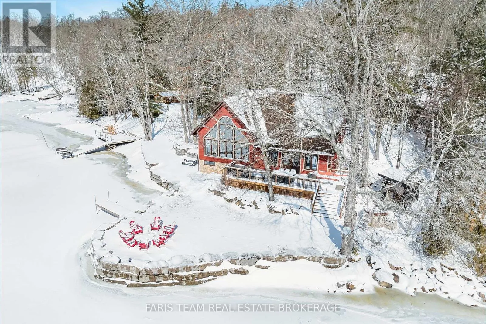 Collins Bay Rd/Fire Rte 394 Top 5 Reasons You Will Love This Home: 1) Rare opportunity to own an impressive 455' of pristine shoreline on Crystal Lake, offering breathtaking waterfront views and endless opportunities for lakeside living 2) Generously sized home featuring four spacious bedrooms, three full bathrooms, and over 2,700 square feet of comfortable living space designed for large families and hosting guests 3) Bright and inviting open-concept main level showcasing soaring vaulted ceilings and an abundance of natural light that fills the home throughout the day 4) Set on over 2-acres of beautifully sized property, complete with two detached garages, a dock system for easy lake access, an expansive deck ideal for entertaining, and a charming bunkie for additional guests 5) Fully furnished and thoughtfully decorated, allowing you to step in and immediately begin enjoying this incredible waterfront retreat. 2,767 fin.sq.ft. (id:27476)