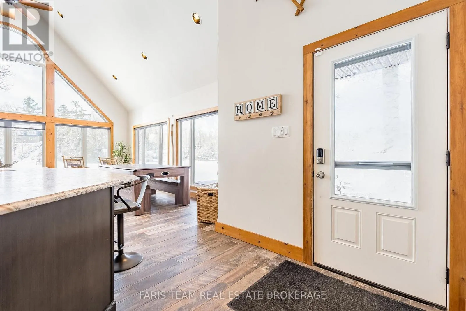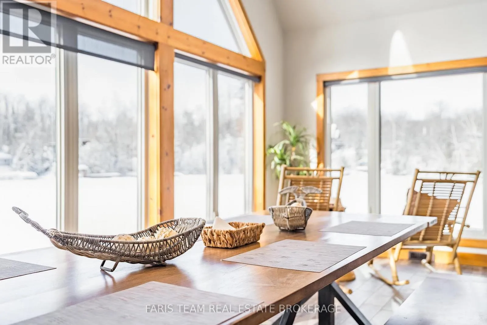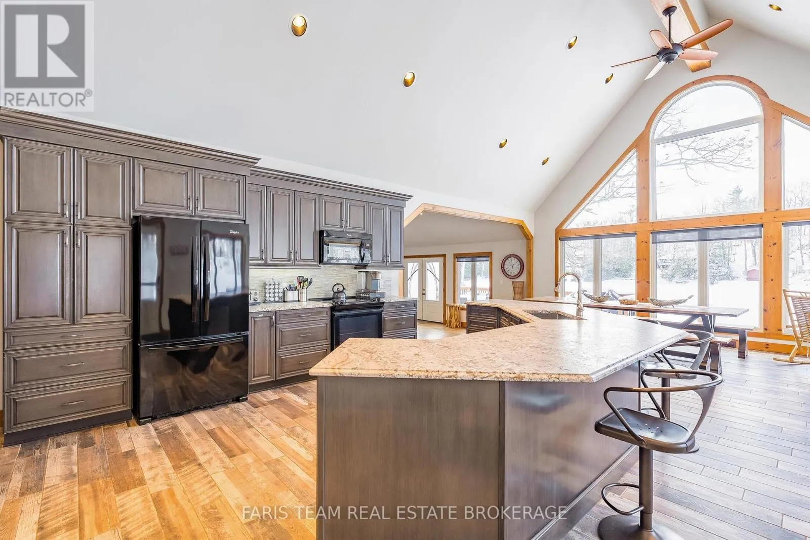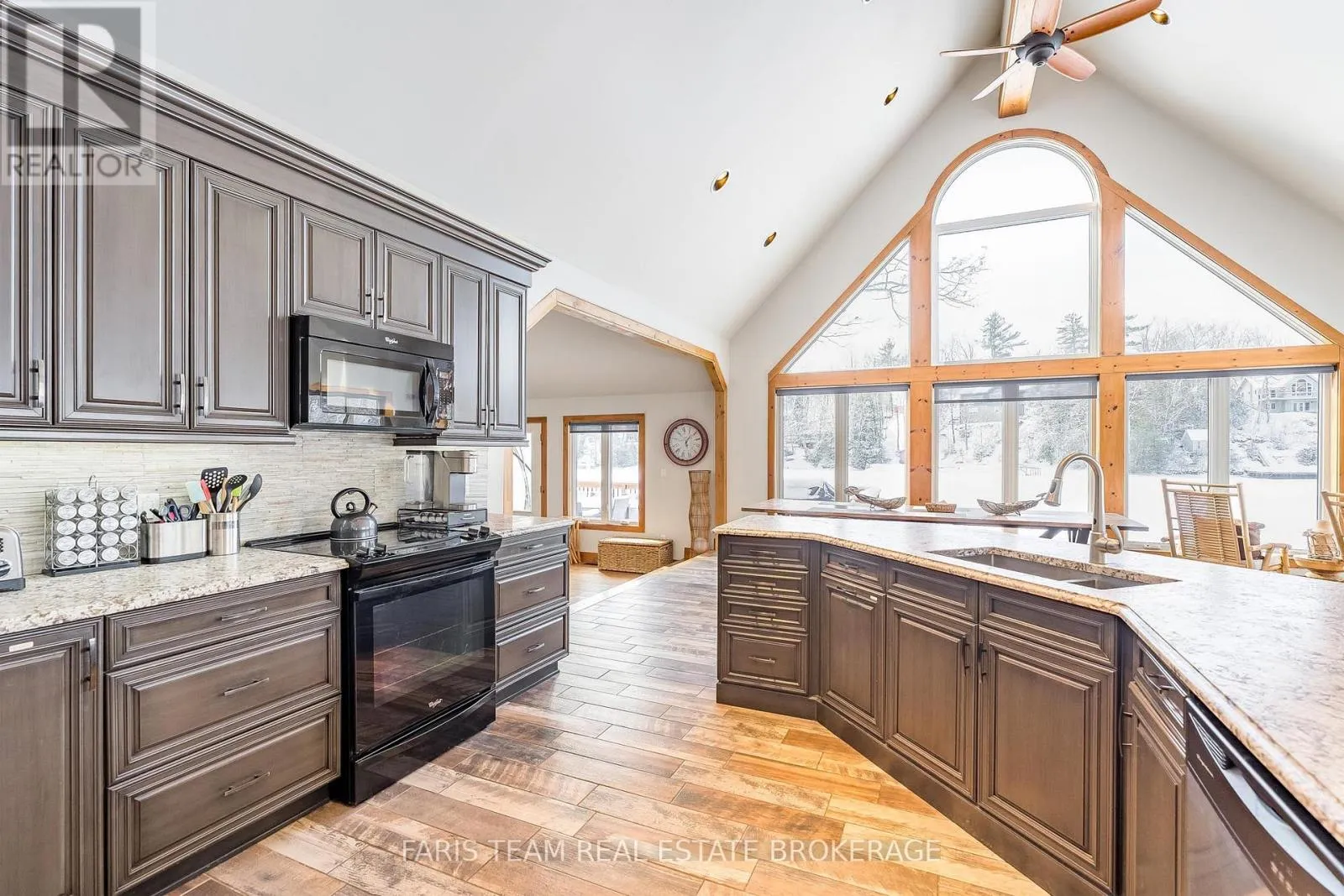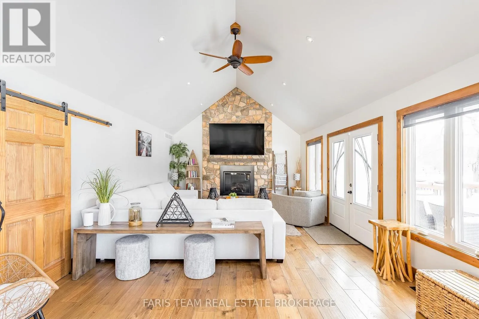 Collins Bay Rd/Fire Rte 394 Top 5 Reasons You Will Love This Home: 1) Rare opportunity to own an impressive 455' of pristine shoreline on Crystal Lake, offering breathtaking waterfront views and endless opportunities for lakeside living 2) Generously sized home featuring four spacious bedrooms, three full bathrooms, and over 2,700 square feet of comfortable living space designed for large families and hosting guests 3) Bright and inviting open-concept main level showcasing soaring vaulted ceilings and an abundance of natural light that fills the home throughout the day 4) Set on over 2-acres of beautifully sized property, complete with two detached garages, a dock system for easy lake access, an expansive deck ideal for entertaining, and a charming bunkie for additional guests 5) Fully furnished and thoughtfully decorated, allowing you to step in and immediately begin enjoying this incredible waterfront retreat. 2,767 fin.sq.ft. (id:27476)