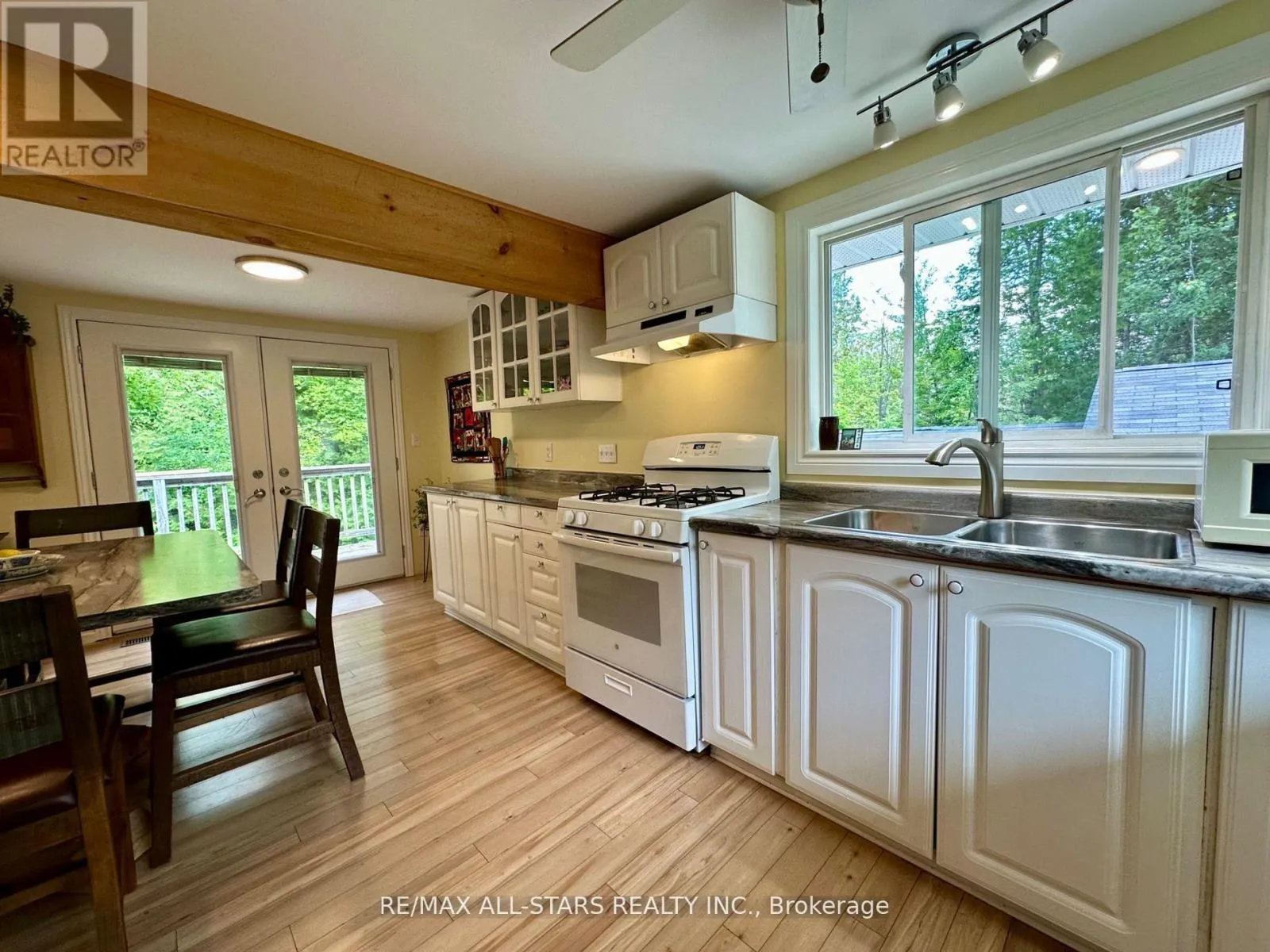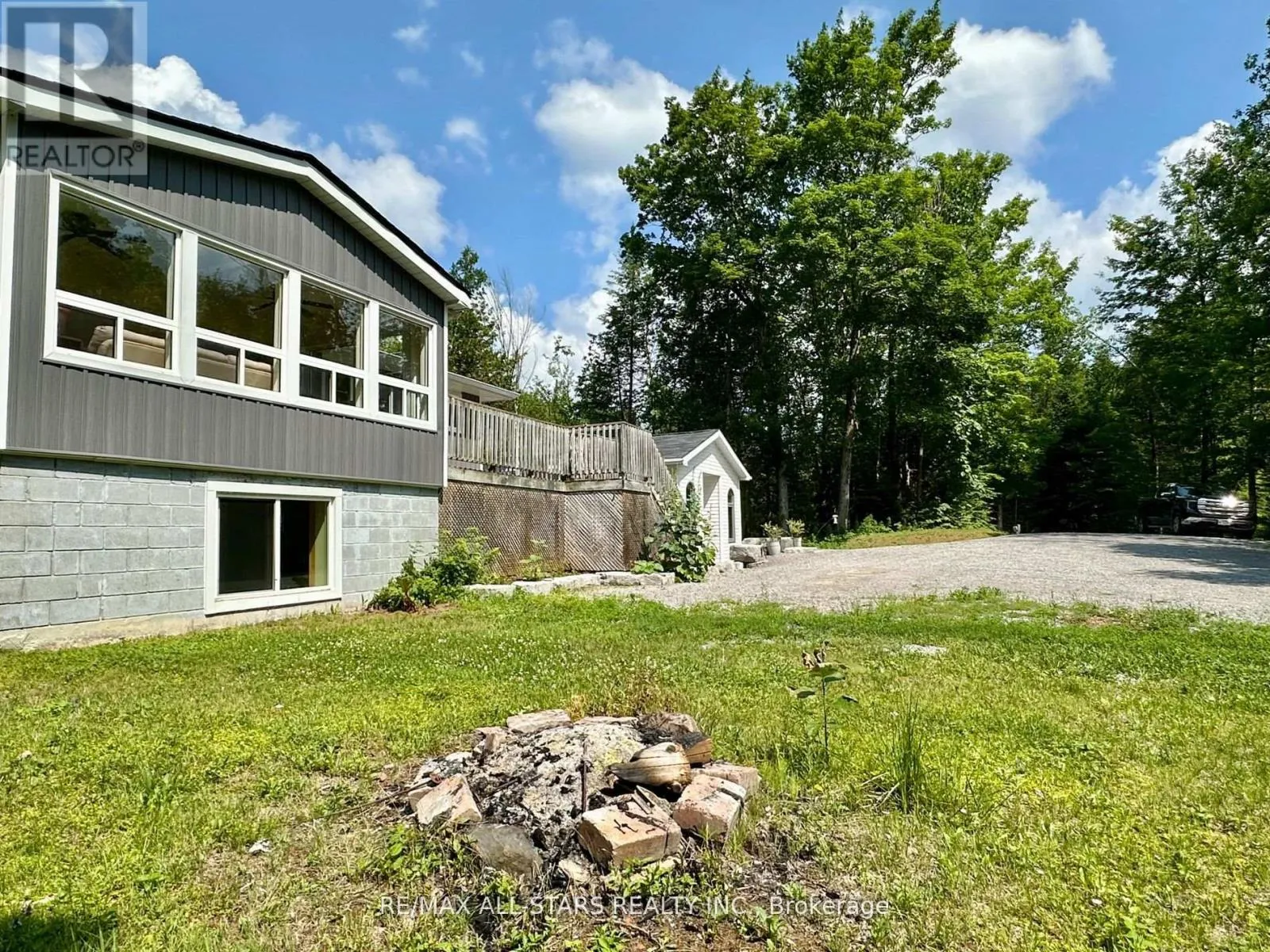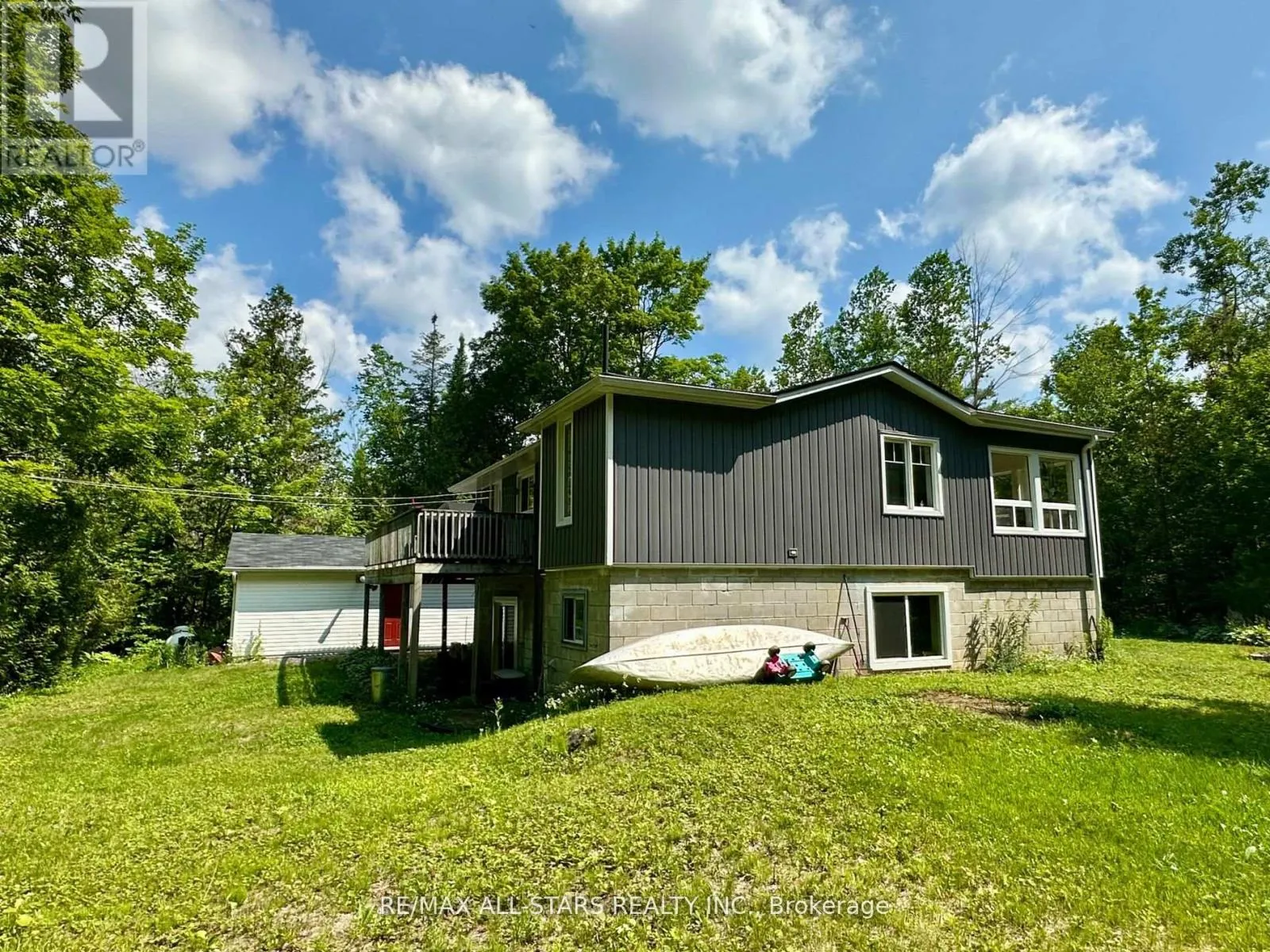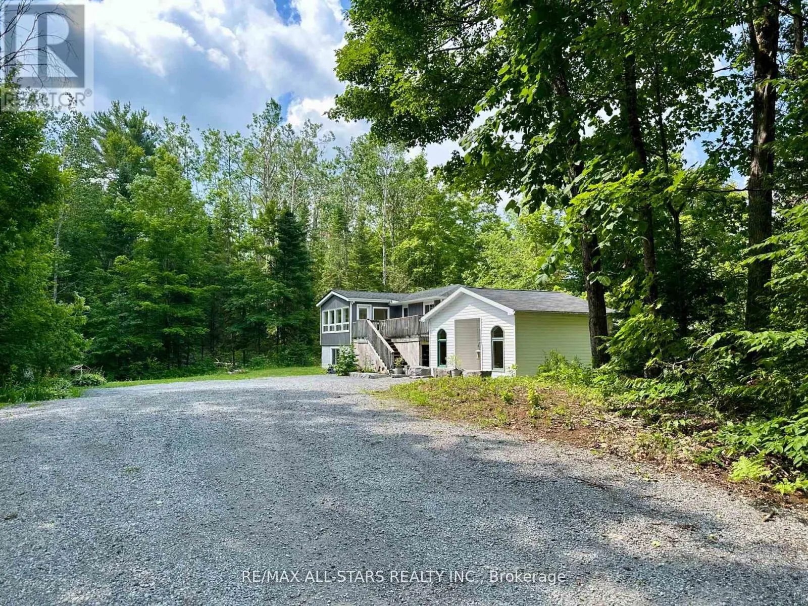 Cross Streets: GALWAY RD/ 121. ** Directions: COUNTY RD 121 TO GALWAY, PROPERTY ON THE RIGHT HAND SIDE. Nestled on a private, forested 1-acre lot, this beautifully renovated 3-bedroom, 1-bath home offers peaceful living with modern comforts. The open-concept main floor features a bright kitchen, dining, and living space that flows into a sunroom surrounded by serene forest views. Walk out directly from the kitchen and sunroom to a spacious wrap-around deck perfect for entertaining or enjoying quiet mornings with nature. The fully finished lower level offers a full walkout, a cozy rec room with a propane fireplace, and plenty of space for relaxation or hosting guests. Recent updates include a newer roof, furnace (2015), windows, siding, kitchen cabinetry, insulation, soffits, eavestroughs, and more all done with care and quality in mind. A major highlight is the detached 44' x 19' heated shop/studio fully finished with water and proper drainage via weeping tile, making it ideal for a home business, creative studio, or workshop. Just minutes from Crystal Lake, this move-in ready home blends privacy, comfort, and functionality in a sought-after location. (id:27476)