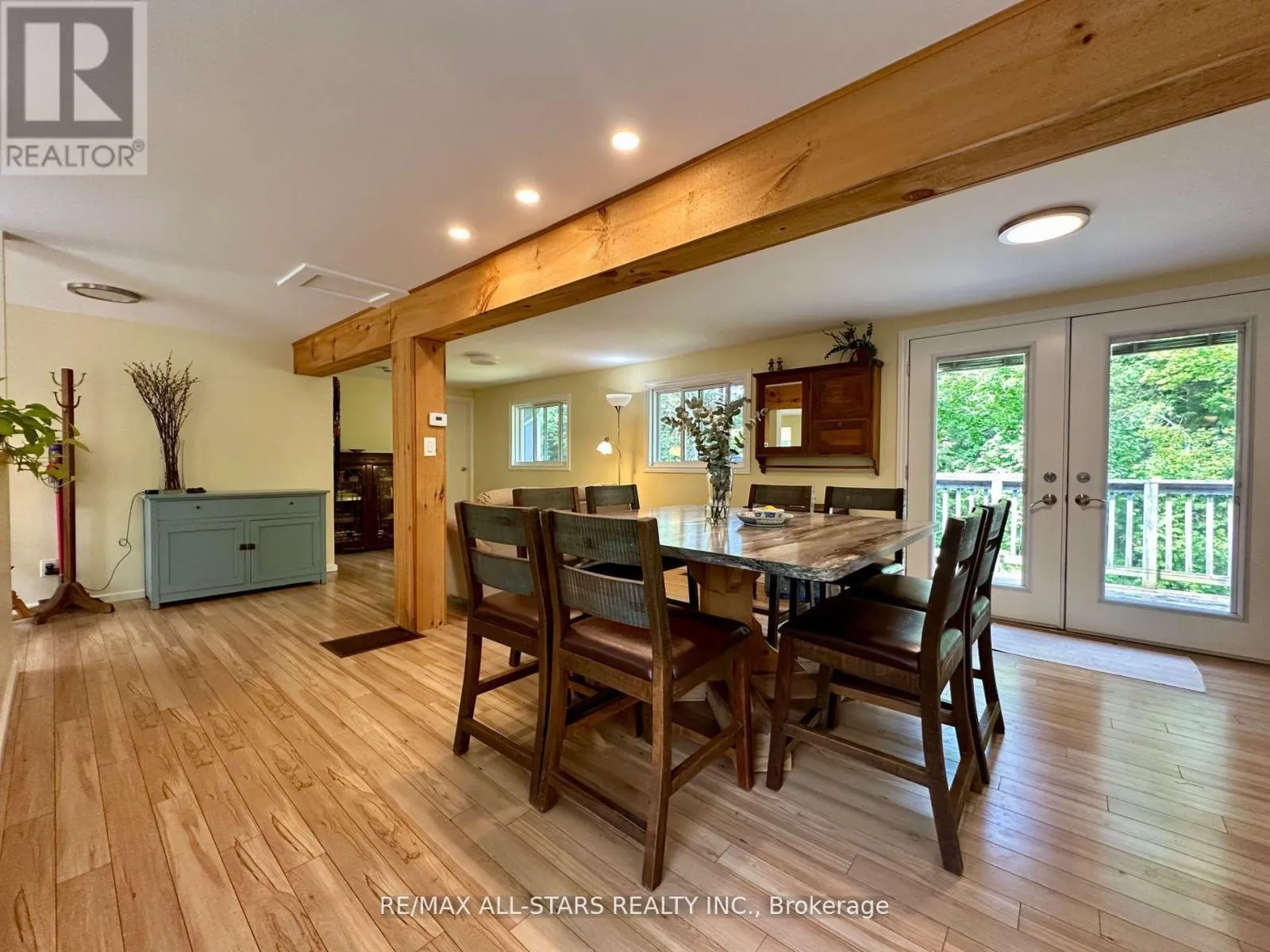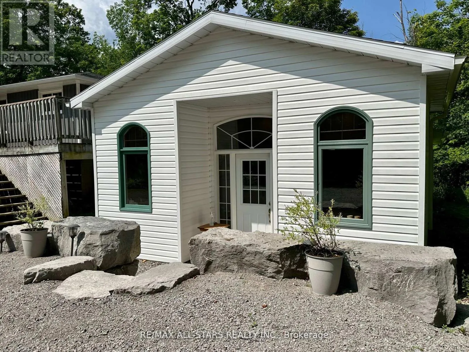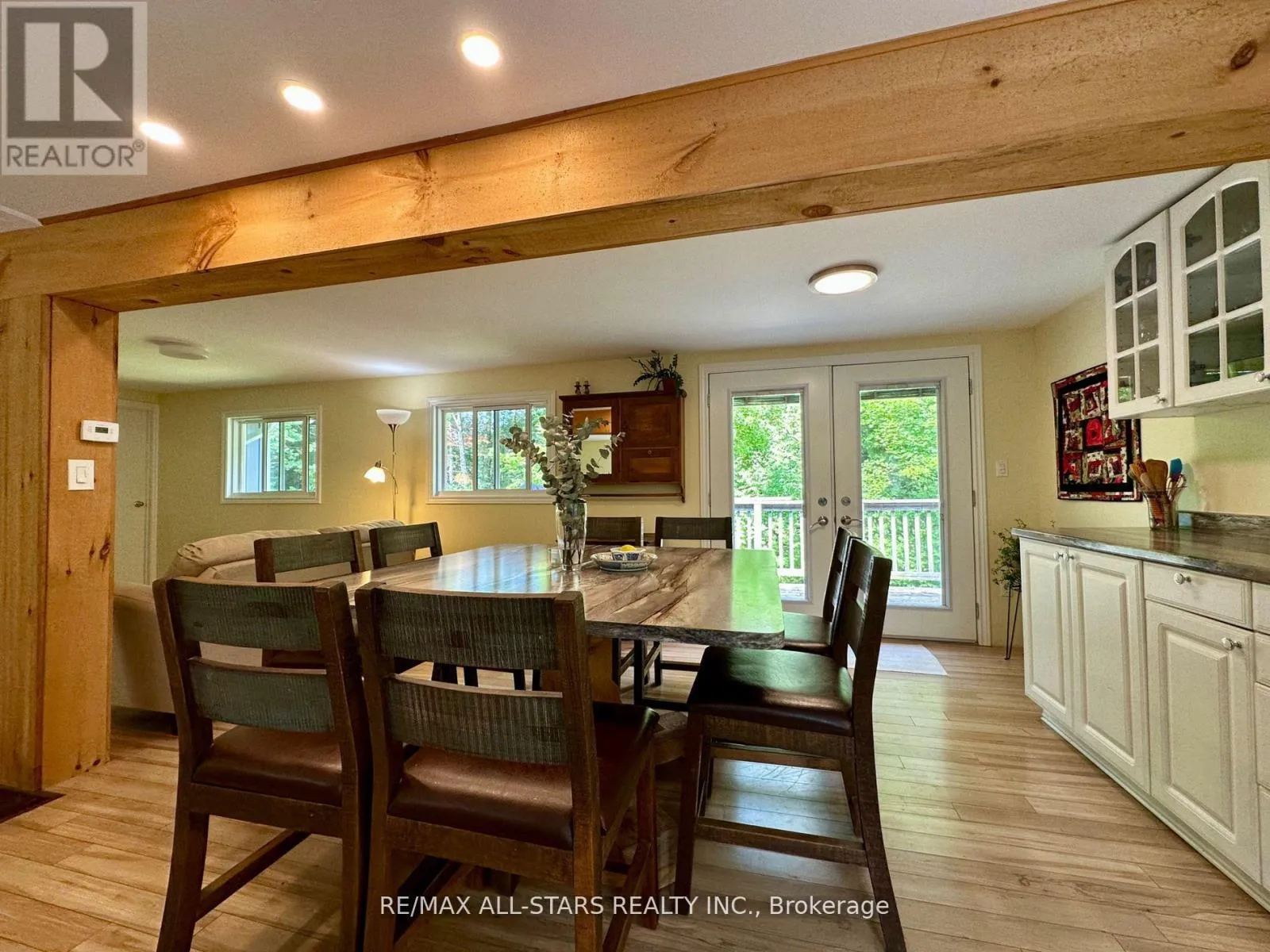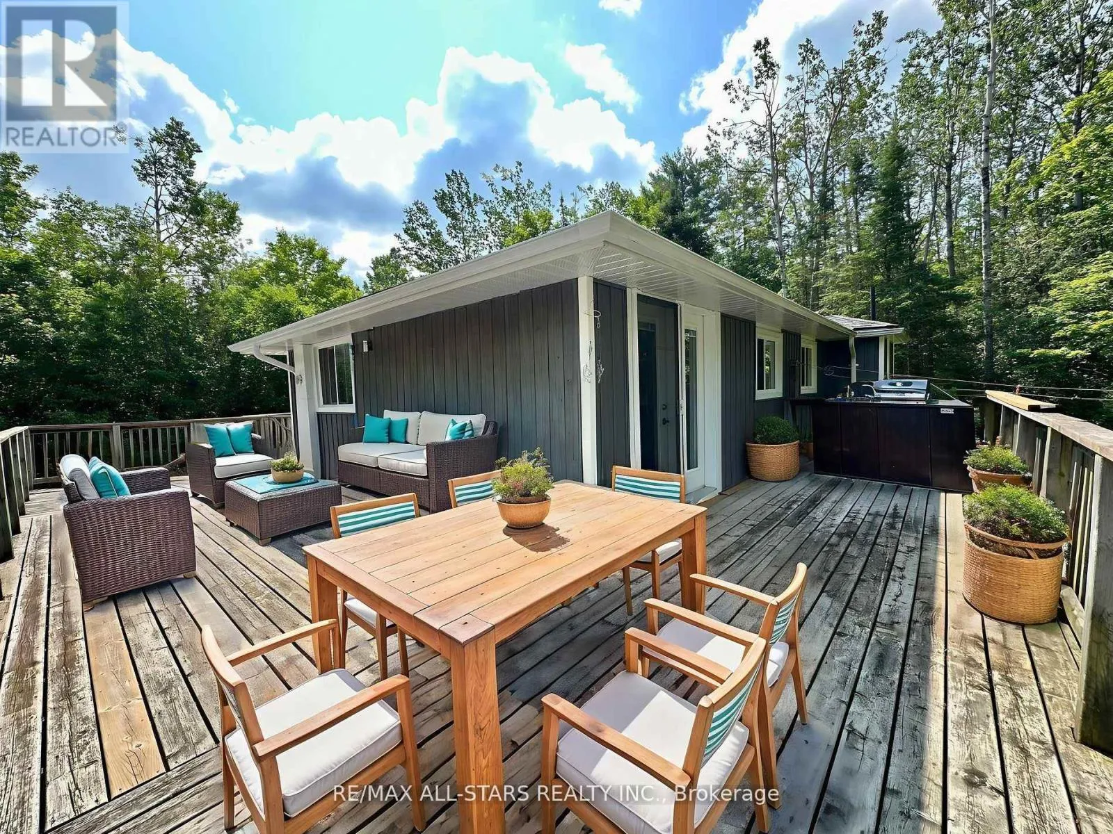 Cross Streets: GALWAY RD/ 121. ** Directions: COUNTY RD 121 TO GALWAY, PROPERTY ON THE RIGHT HAND SIDE. Nestled on a private, forested 1-acre lot, this beautifully renovated 3-bedroom, 1-bath home offers peaceful living with modern comforts. The open-concept main floor features a bright kitchen, dining, and living space that flows into a sunroom surrounded by serene forest views. Walk out directly from the kitchen and sunroom to a spacious wrap-around deck perfect for entertaining or enjoying quiet mornings with nature. The fully finished lower level offers a full walkout, a cozy rec room with a propane fireplace, and plenty of space for relaxation or hosting guests. Recent updates include a newer roof, furnace (2015), windows, siding, kitchen cabinetry, insulation, soffits, eavestroughs, and more all done with care and quality in mind. A major highlight is the detached 44' x 19' heated shop/studio fully finished with water and proper drainage via weeping tile, making it ideal for a home business, creative studio, or workshop. Just minutes from Crystal Lake, this move-in ready home blends privacy, comfort, and functionality in a sought-after location. (id:27476)