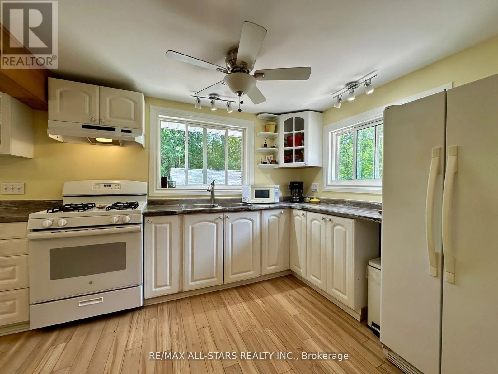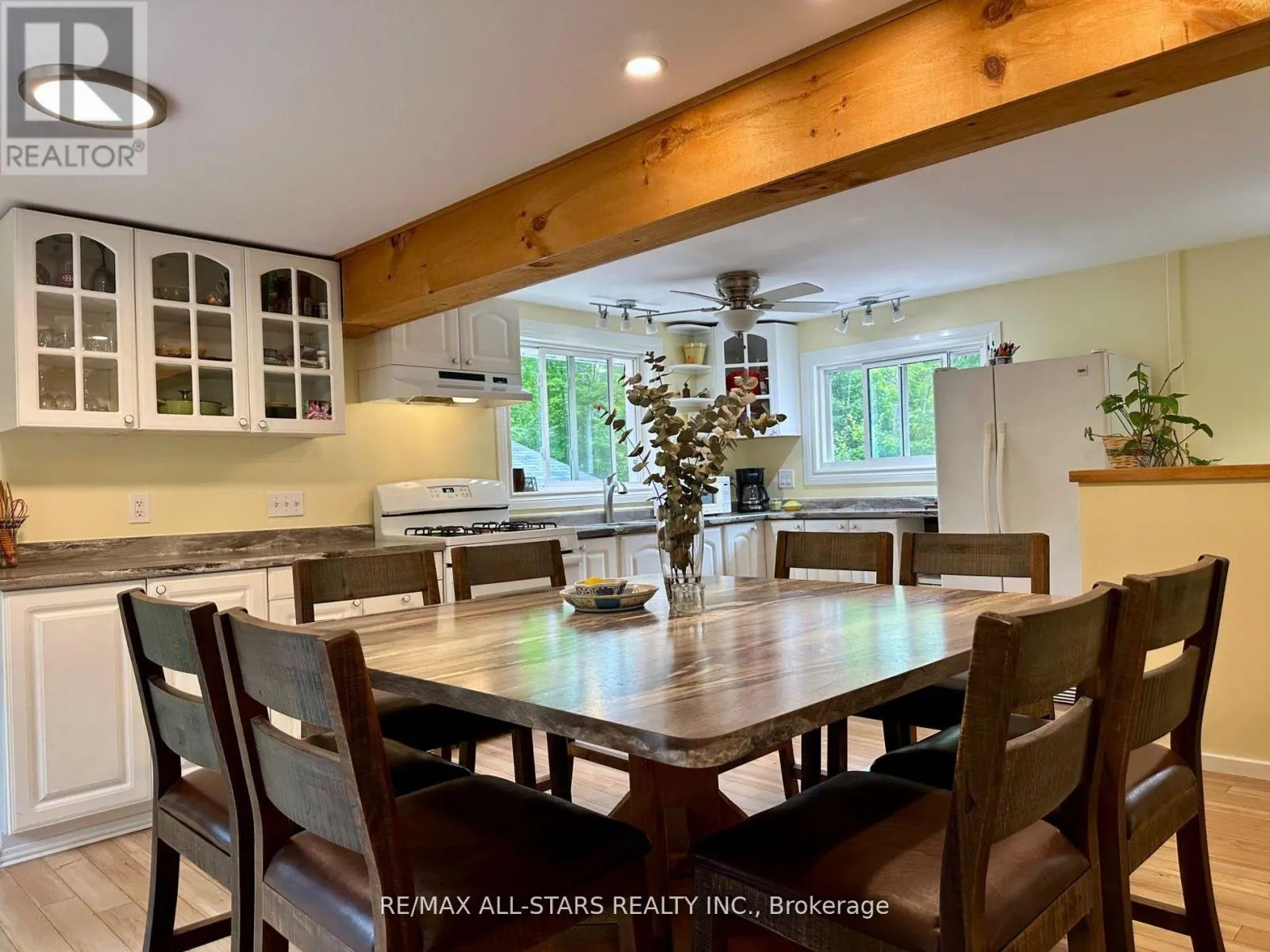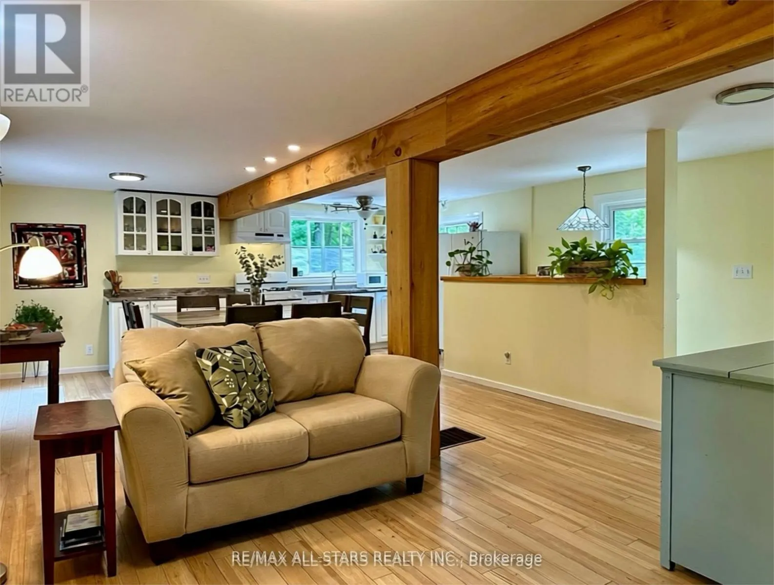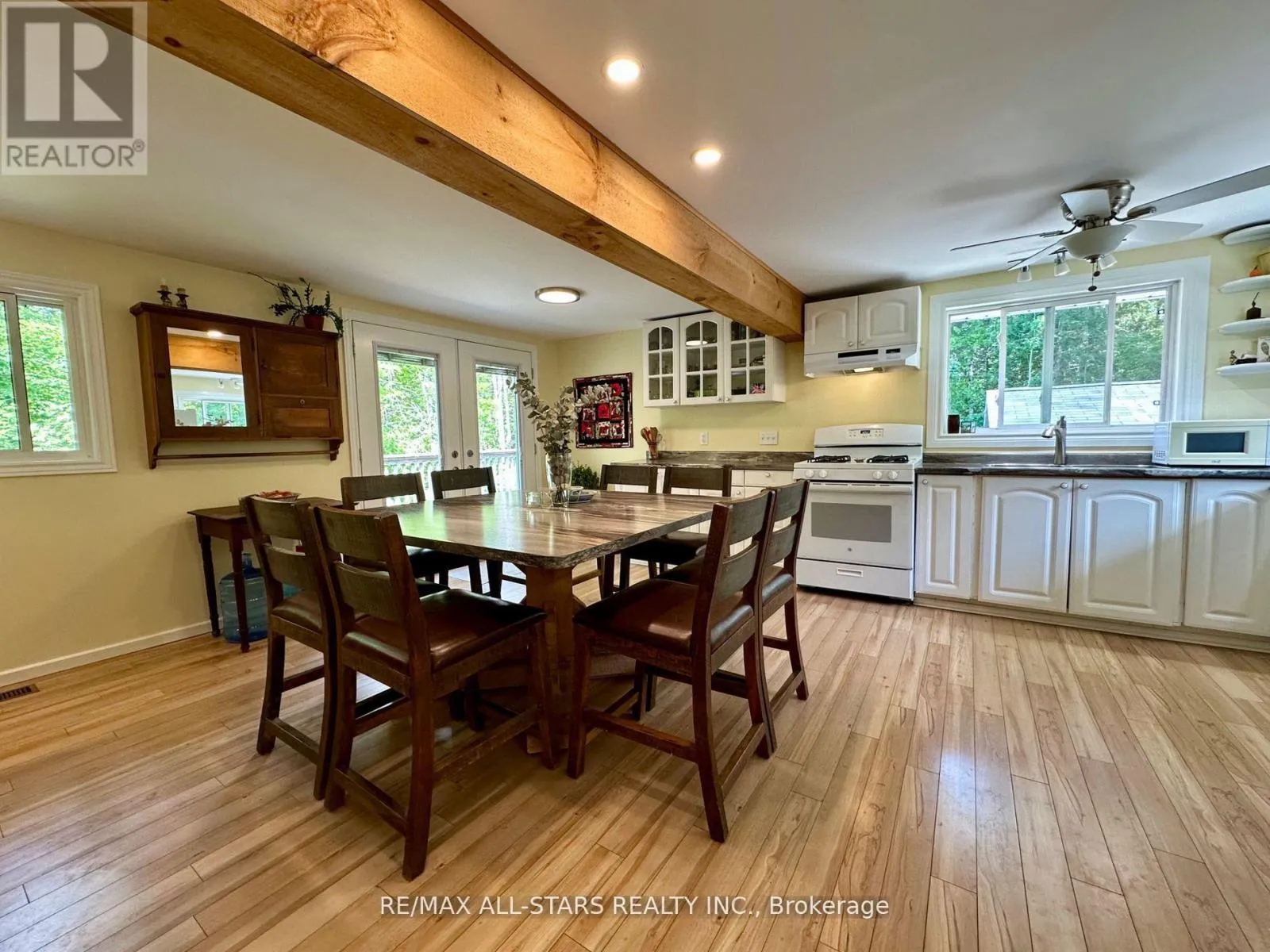 Cross Streets: GALWAY RD/ 121. ** Directions: COUNTY RD 121 TO GALWAY, PROPERTY ON THE RIGHT HAND SIDE. Nestled on a private, forested 1-acre lot, this beautifully renovated 3-bedroom, 1-bath home offers peaceful living with modern comforts. The open-concept main floor features a bright kitchen, dining, and living space that flows into a sunroom surrounded by serene forest views. Walk out directly from the kitchen and sunroom to a spacious wrap-around deck perfect for entertaining or enjoying quiet mornings with nature. The fully finished lower level offers a full walkout, a cozy rec room with a propane fireplace, and plenty of space for relaxation or hosting guests. Recent updates include a newer roof, furnace (2015), windows, siding, kitchen cabinetry, insulation, soffits, eavestroughs, and more all done with care and quality in mind. A major highlight is the detached 44' x 19' heated shop/studio fully finished with water and proper drainage via weeping tile, making it ideal for a home business, creative studio, or workshop. Just minutes from Crystal Lake, this move-in ready home blends privacy, comfort, and functionality in a sought-after location. (id:27476)