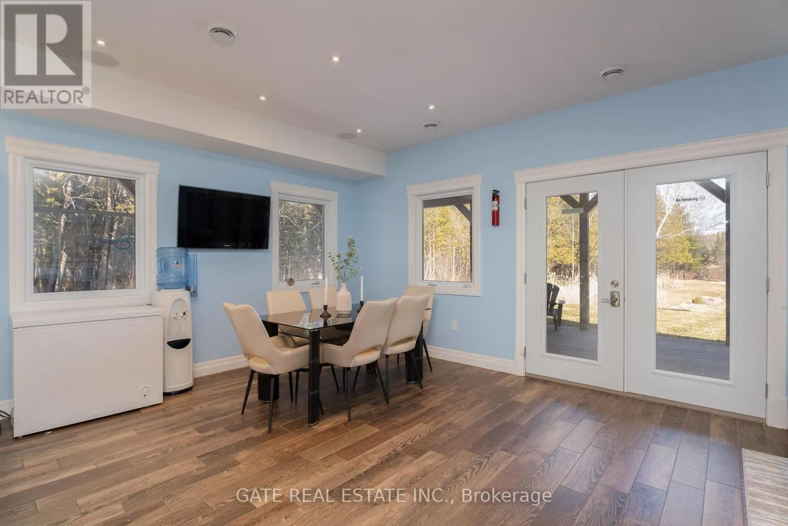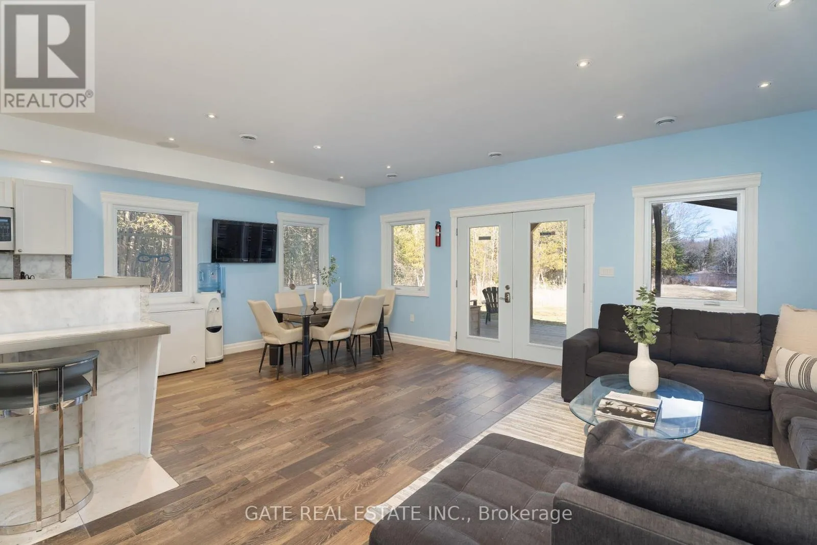 HWY 36 & BASS LAKE ROAD NOT TO MISS!!!!Fully Furnished!!! READY to MOVE-IN!! A Luxurious 5 Bed+5 Bath, Modern, Elegant, Cottage in Bobcaygeon, GEM of Kawartha Lakes. Nestled on nearly 3.5 acres along scenic Bass Lake Rd. This retreat offers privacy, high-end finishes, and smart design. All bedrooms feature private balconies with stunning water views, en-suites, and heated washroom floors. Step into a contemporary open-concept living space with expensive stone counter-tops, two double sinks, a premium Samsung dishwasher, and a chef's dream kitchen with LED-lit breakfast island, stainless steel appliances, and a wet bar. The wraparound deck, showcasing pot lights, 3 skylights, glass railings, solar-lit BBQ area, and direct gas hookup. Enjoy year-round comfort with R65 insulation on the top floor and R45 on the other Floors emergency electric heaters on every floor, and a powerful auto generator capable of supporting the entire home. Hardwood flooring on the 2nd and 3rd levels adds warmth and sophistication, while built-in speakers with room-by-room control create the perfect ambiance. Outdoors, a heated pipeline from the Well, a top-tier septic system with high-water alarm, a separate gazebo, a spacious water patio, and a floating dock for endless lakefront enjoyment. 5 mins to downtown Bobcaygeon, proximity to Fenelon Falls, Year around Festivals, Gatherings & Enjoyment. (id:27476)