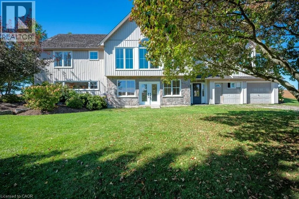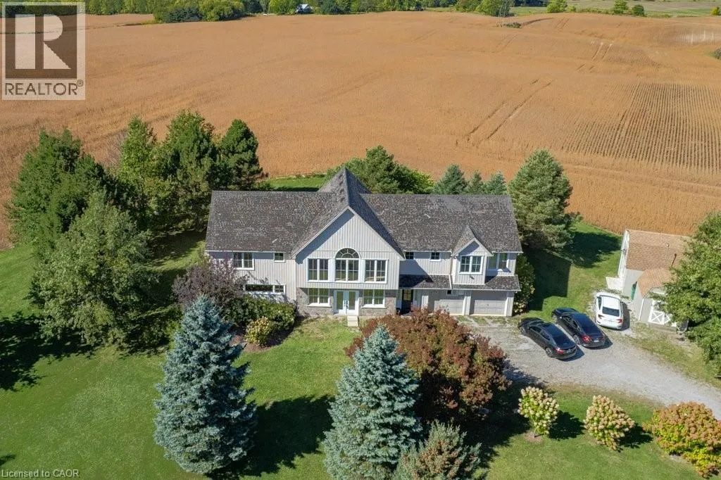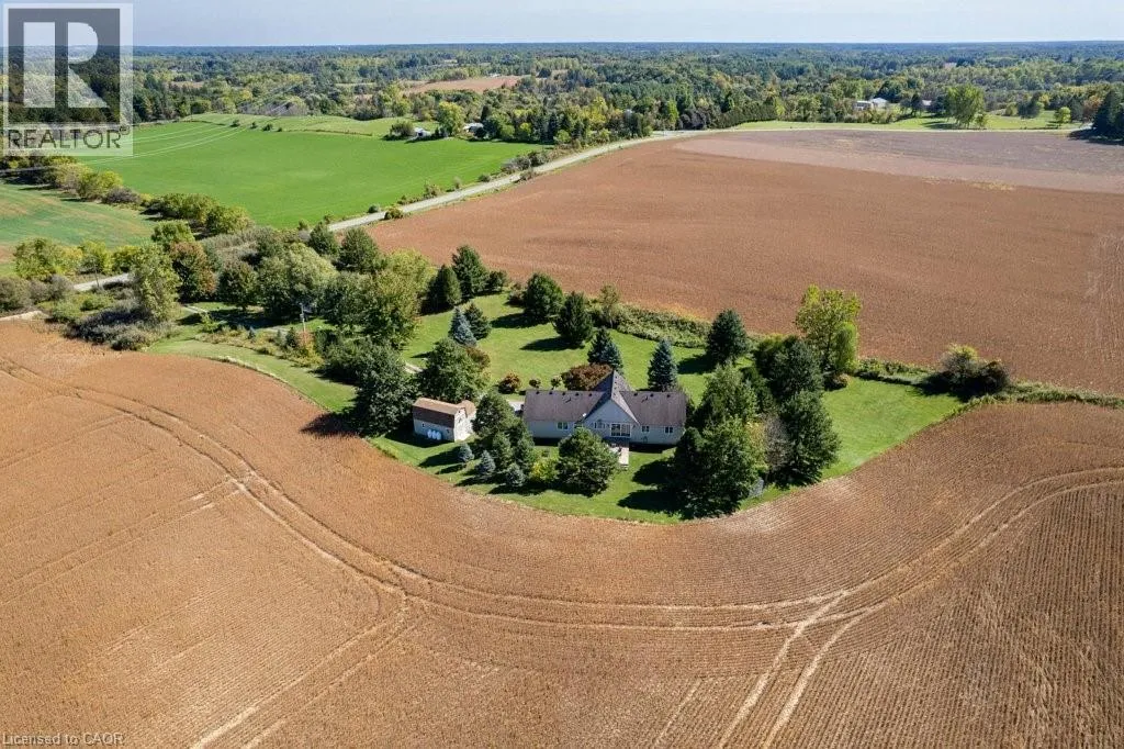Highway 5 to Harrisburg Rd Welcome to 407 Harrisburg Road in the charming village of Troy! This beautiful country property offers the perfect blend of peaceful rural living with modern comforts. Nestled on almost 3.5 acres, the home boasts a classic design with inviting curb appeal, mature landscaping, and plenty of outdoor space for entertaining or relaxing. With a pond, shop with 220amp, and inground sprinkler system this property has everything you need! Step inside to find a bright, open layout featuring a welcoming living room with large windows, an open kitchen space and a dining area ideal for family gatherings. The home offers a finished lower level with flexible space for a rec room, home office, or in-law suite. Enjoy the serenity of your private backyard, complete with mature trees, lush greenery, and room for gardens, play areas, or future projects. A long driveway and detached shop provide plenty of parking and storage. Located just minutes to Brantford, Paris, and Cambridge, youâll love the balance of small-town charm with quick access to amenities, schools, and commuter routes. (id:27476)