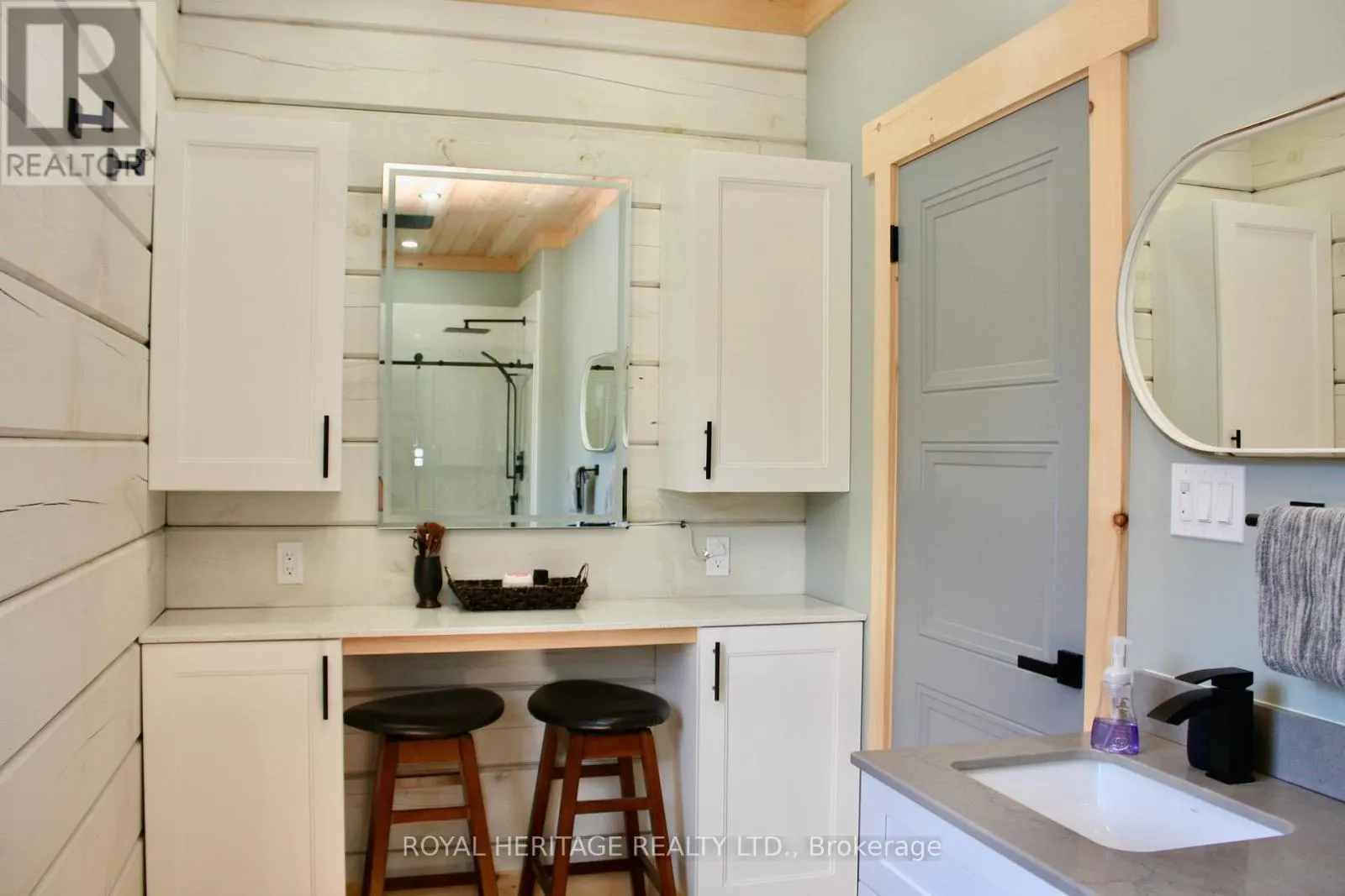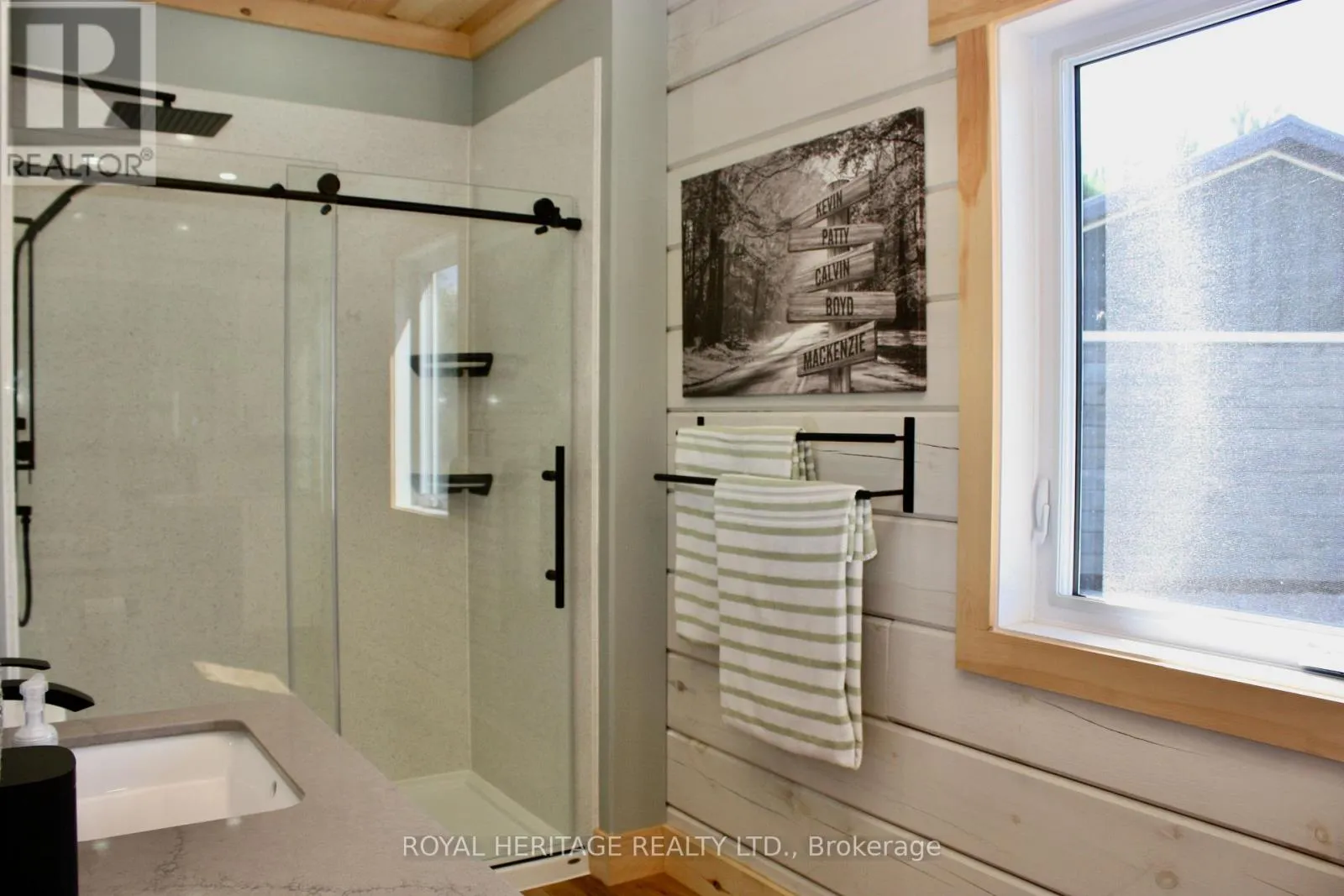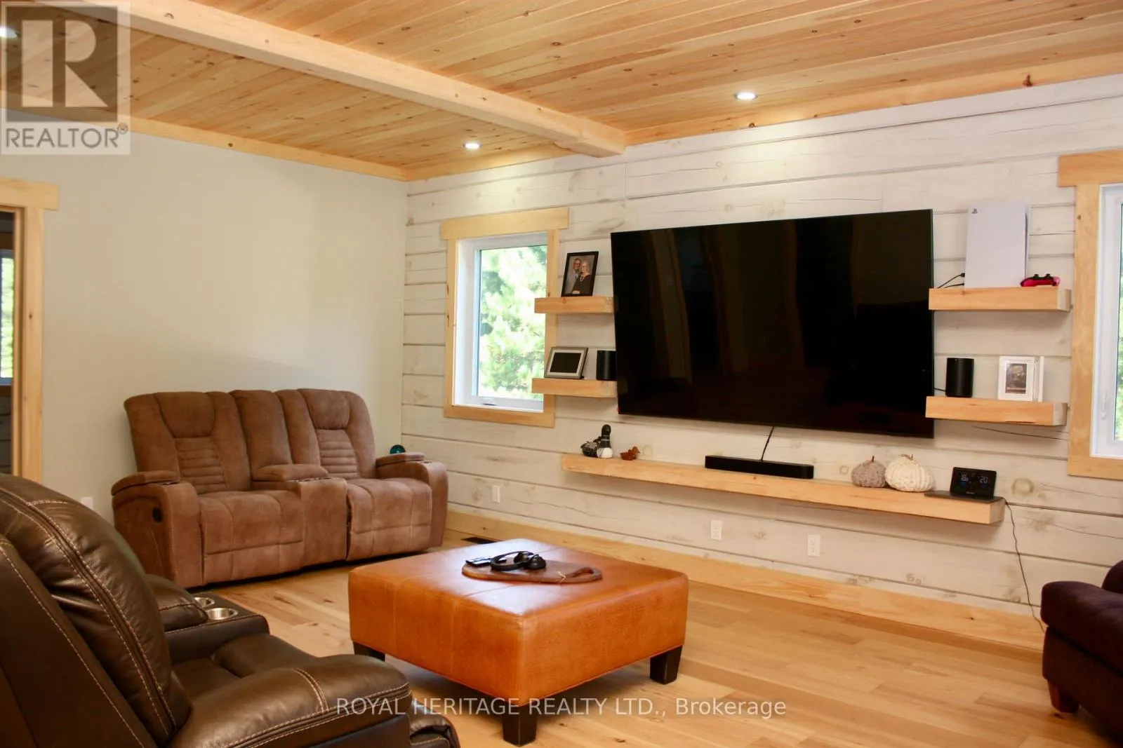 Cross Streets: Weslemkoon Lake rd/Pine View Ridge Rd. ** Directions: Weslemkoon Lake rd to Pine View Ridge Rd. This rare offering delivers the ultimate in timeless modern log home architecture with custom finishes and lifestyle flexibility. The ground level front entrance steps to an inviting open concept layout. Foyer is large, bright and airy and can lend itself to an added dining area. Chefs kitchen includes a huge island, tall cabinetry and beautiful quartz counters. Just off the kitchen are the pantry and laundry room that function well as a butlers pantry or prepping area. Note 6 1/2 inch engineered Hickory floors through out and kiln dried pine trim, ceiling and casings. The great room exudes warmth and comfort boasting built in floating shelves and views from every window. Primary bedroom functions beautifully with huge walk in closet, 4 piece ensuite w his and hers sinks and walk out to a 20 x 12 foot back porch, the perfect spot to enjoy your morning coffee whilst soaking up the tranquil views and sounds of nature. Bedrooms 2 and 3 are well sized and share a 4 piece bath. One of the finest attributes of this home is it's huge covered front porch w 2 gas hook ups. Picture an ample seating area with a fire table and a dining area with BBQ, all this under twirling porch ceiling fans. Now, the garage is a show stopper to be sure, detached, 2 car but could fit 3 vehicles, 200 amp service and ICF 4' foundation walls. Looking for a workshop? This garage will inspire the hobbyist, musician, contractor, wood worker, car enthusiast. Perhaps create your dream man cave or studio. Room for all the tools and toys. In this home both interior and exterior lighting offers night mode. All smartly controlled by AI but can also be manual. Looking to disconnect or reconnect? With plenty of space for parking, playing or just plain relaxing feel free to expand, create or simply breathe. Lake access just down the street to boat launch. Please enjoy the attached Iguide video, information sheet and floor plans. Come on home to the country. (id:27476)