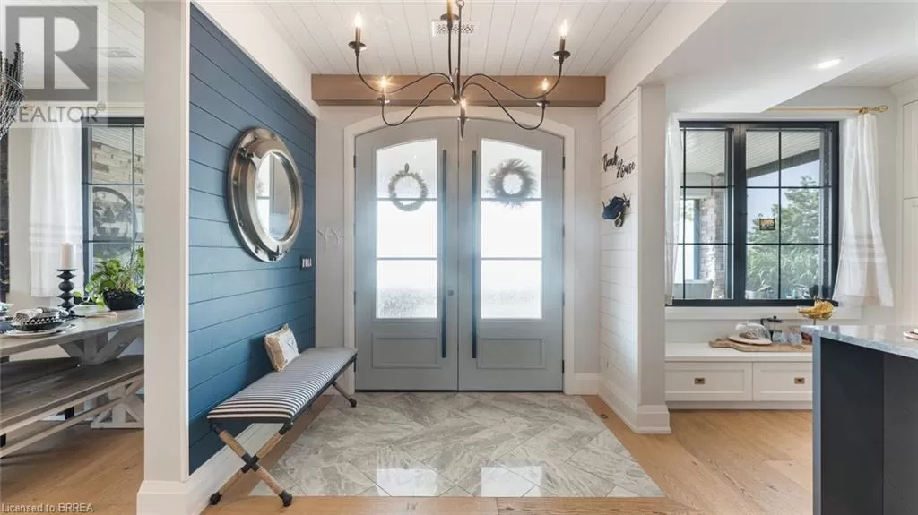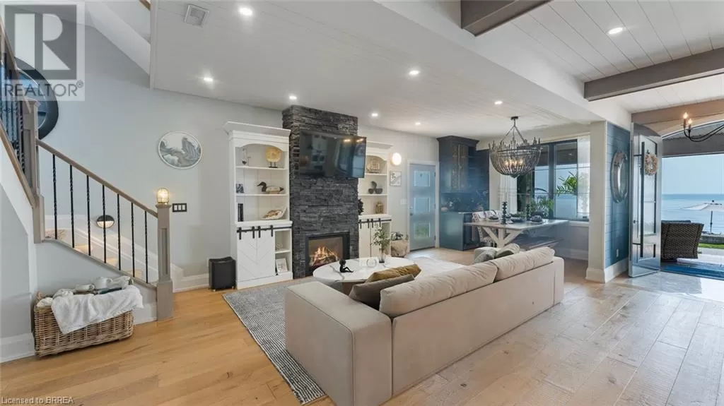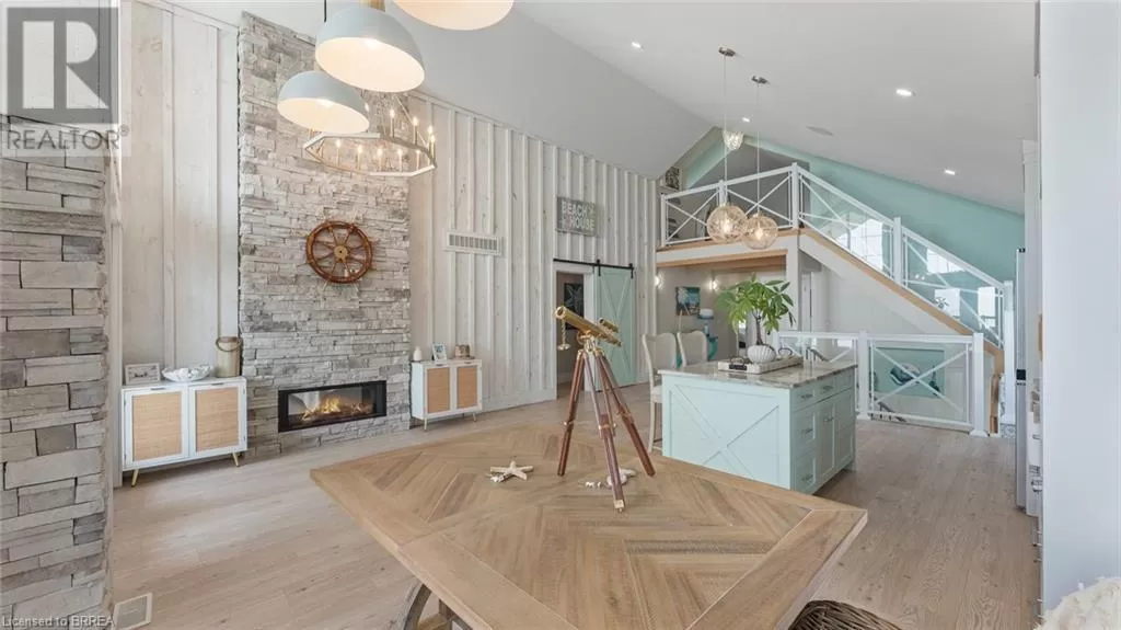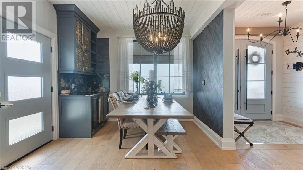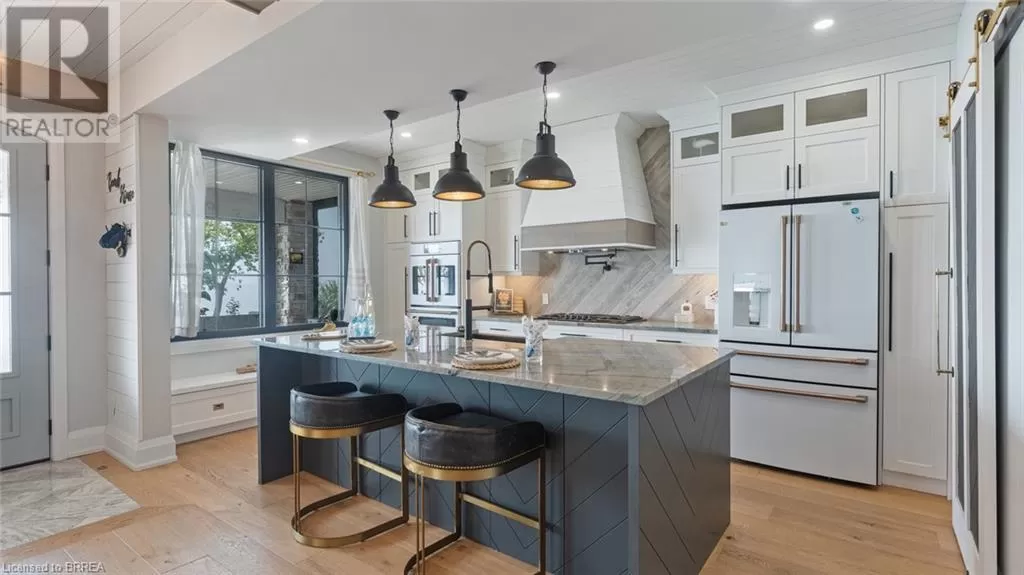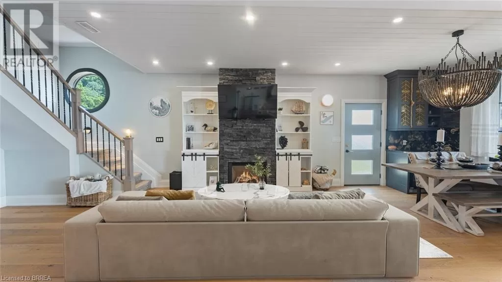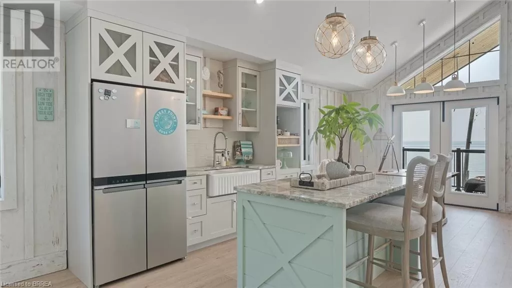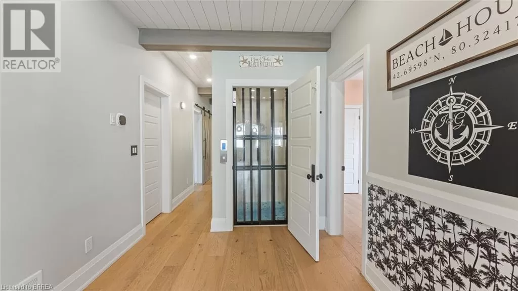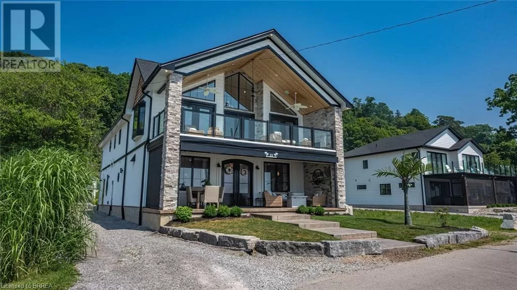 Turkey Point. Cedar Street past Old Hill Road in the dead end cul de sac. Imagine waking each morning to gentle waves lapping the shore, sunlight dancing across endless water. This is life at Turkey Point, where Lake Erie's northern shore becomes your personal paradise. Nestled in charming Turkey Point, Ontario, this extraordinary property offers the ultimate retreat from everyday life. Here, cozy cottages dot the shoreline, local eateries serve fresh catches, and life moves to the gentle cadence of boats returning to harbor. This peaceful enclave has long been a magnet for those seeking authentic waterfront living, and now it can be yours. Built in 2022 on a tranquil dead-end cul-de-sac, this stunning lake house was designed with one singular vision: to celebrate the magnificent water views that stretch endlessly before you. Every angle, every room, every carefully placed window serves to connect you with the ever-changing beauty of Lake Erie. Step through the front door and be embraced by over 3,800 square feet of thoughtfully designed living space. The modern architecture features soaring windows that frame the water like living artwork, transforming your daily routine into breathtaking moments. The two-story design centers around expansive living areas that dissolve boundaries between indoor and outdoor living. Two great rooms provide multiple gathering spaces, each offering its own unique lake perspective. Whether hosting intimate dinners or grand celebrations, guests will be captivated by the ever-present backdrop of shimmering water. The dual kitchen concept ensures entertaining flows seamlessly. Imagine preparing meals while watching sailboats drift by, or enjoying morning coffee as sunrise paints the water in brilliant hues. An elevator provides effortless access to both levels. Five bedrooms offer peaceful retreats. Three bathrooms provide comfort, while the three-car garage includes upper suite potential. From this vantage point, Lake Erie becomes your playground. Nothing beats life on the water! Luxury Certified. (id:27476)