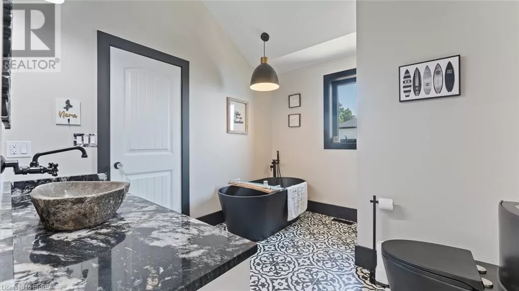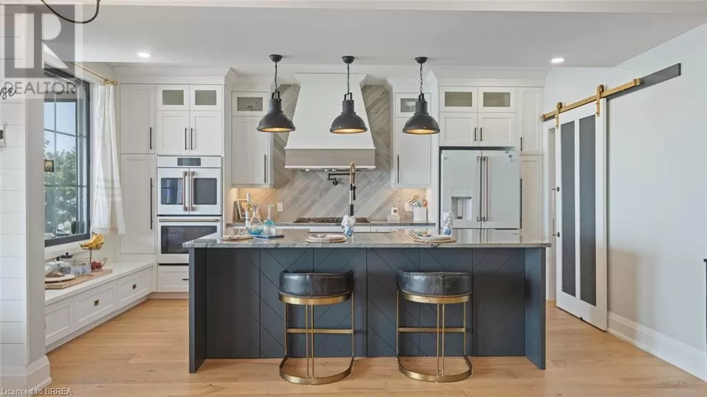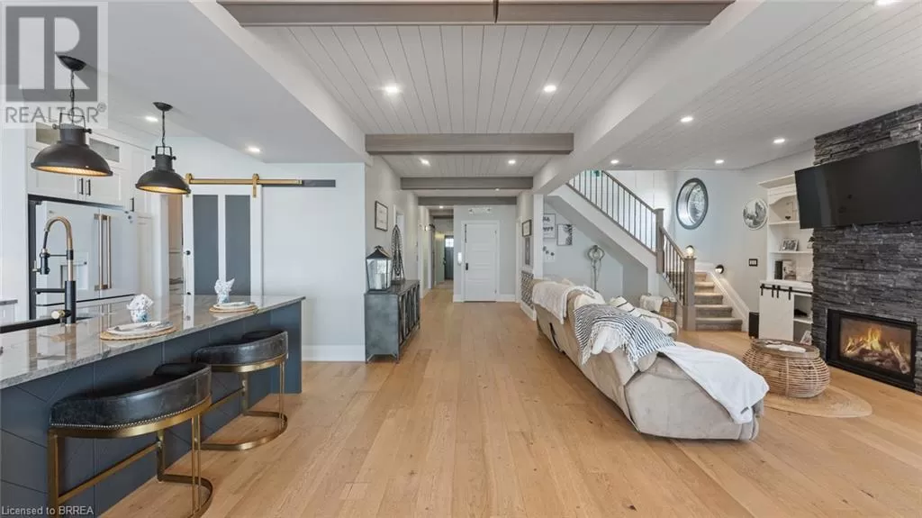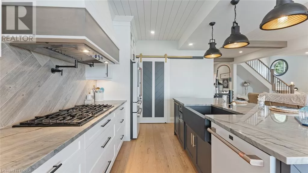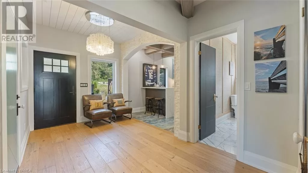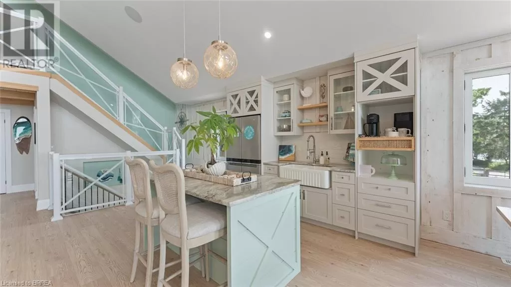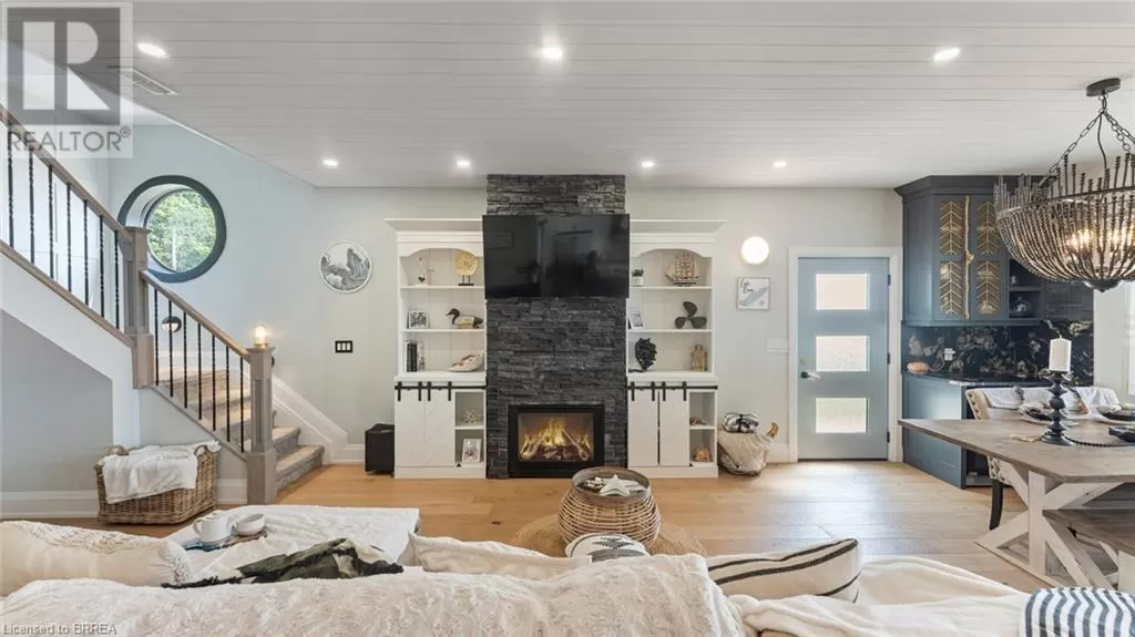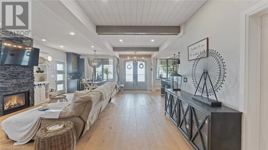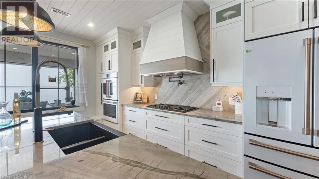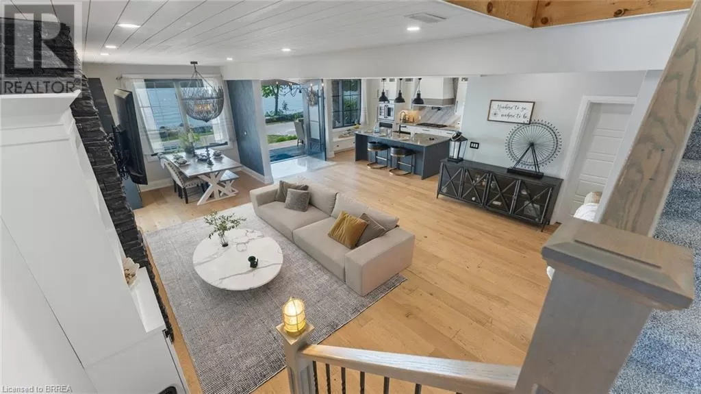 Turkey Point. Cedar Street past Old Hill Road in the dead end cul de sac. Imagine waking each morning to gentle waves lapping the shore, sunlight dancing across endless water. This is life at Turkey Point, where Lake Erie's northern shore becomes your personal paradise. Nestled in charming Turkey Point, Ontario, this extraordinary property offers the ultimate retreat from everyday life. Here, cozy cottages dot the shoreline, local eateries serve fresh catches, and life moves to the gentle cadence of boats returning to harbor. This peaceful enclave has long been a magnet for those seeking authentic waterfront living, and now it can be yours. Built in 2022 on a tranquil dead-end cul-de-sac, this stunning lake house was designed with one singular vision: to celebrate the magnificent water views that stretch endlessly before you. Every angle, every room, every carefully placed window serves to connect you with the ever-changing beauty of Lake Erie. Step through the front door and be embraced by over 3,800 square feet of thoughtfully designed living space. The modern architecture features soaring windows that frame the water like living artwork, transforming your daily routine into breathtaking moments. The two-story design centers around expansive living areas that dissolve boundaries between indoor and outdoor living. Two great rooms provide multiple gathering spaces, each offering its own unique lake perspective. Whether hosting intimate dinners or grand celebrations, guests will be captivated by the ever-present backdrop of shimmering water. The dual kitchen concept ensures entertaining flows seamlessly. Imagine preparing meals while watching sailboats drift by, or enjoying morning coffee as sunrise paints the water in brilliant hues. An elevator provides effortless access to both levels. Five bedrooms offer peaceful retreats. Three bathrooms provide comfort, while the three-car garage includes upper suite potential. From this vantage point, Lake Erie becomes your playground. Nothing beats life on the water! Luxury Certified. (id:27476)