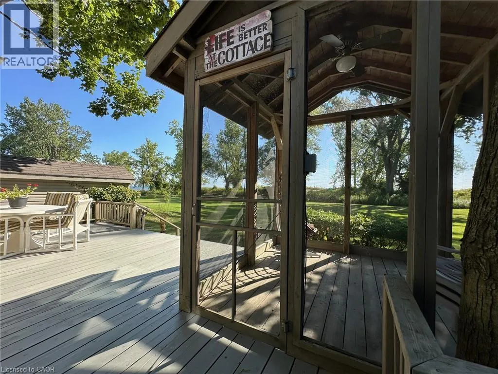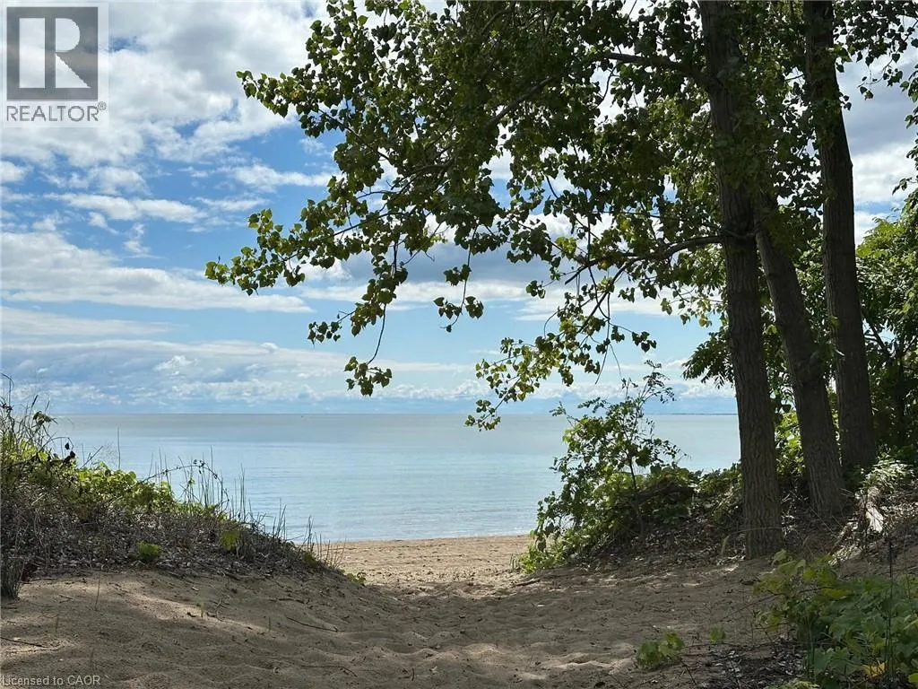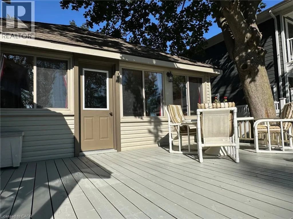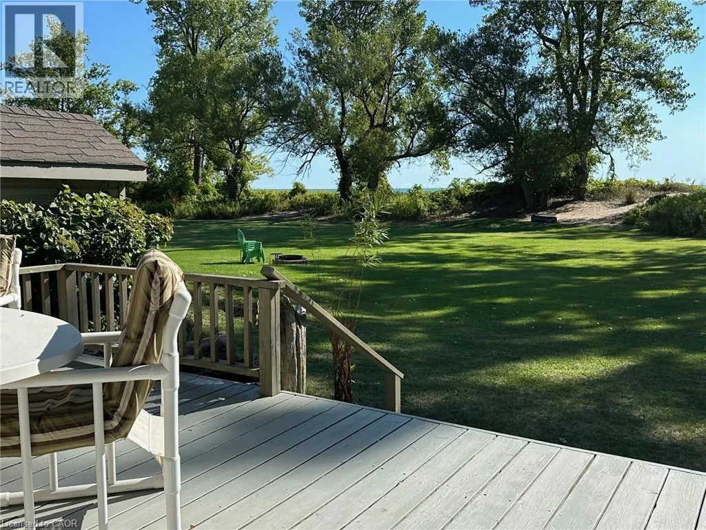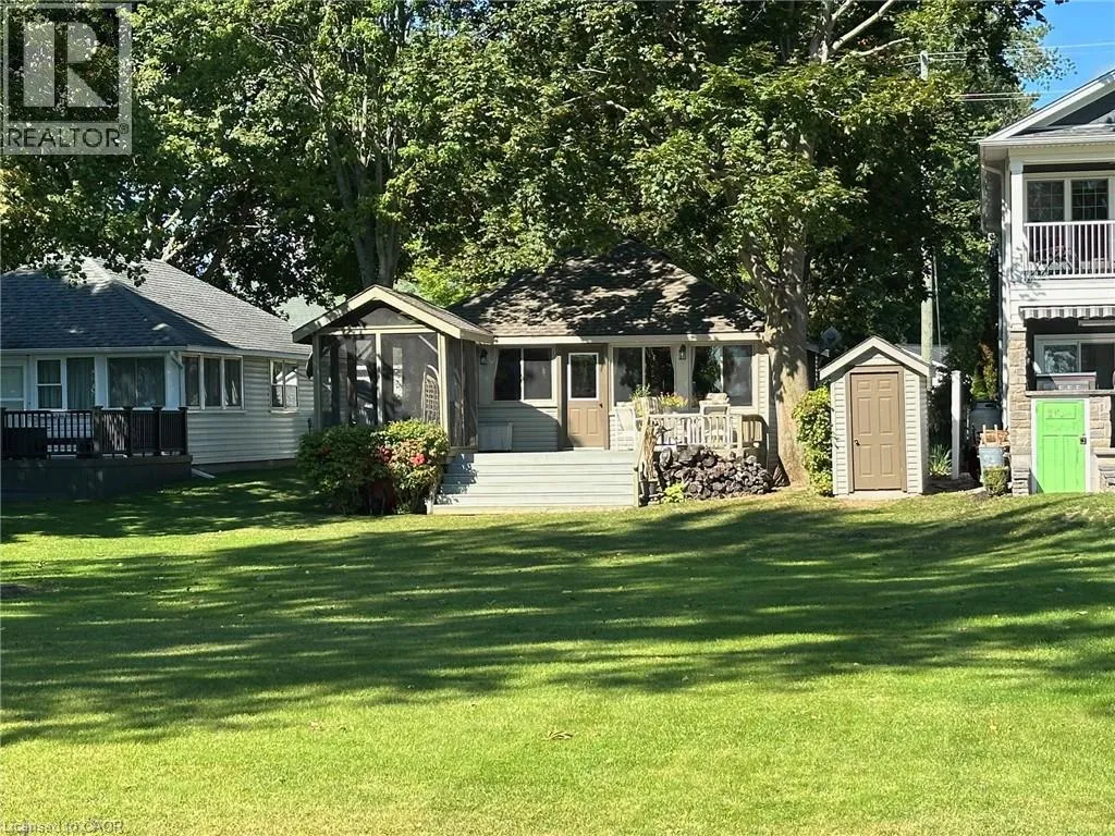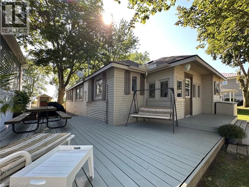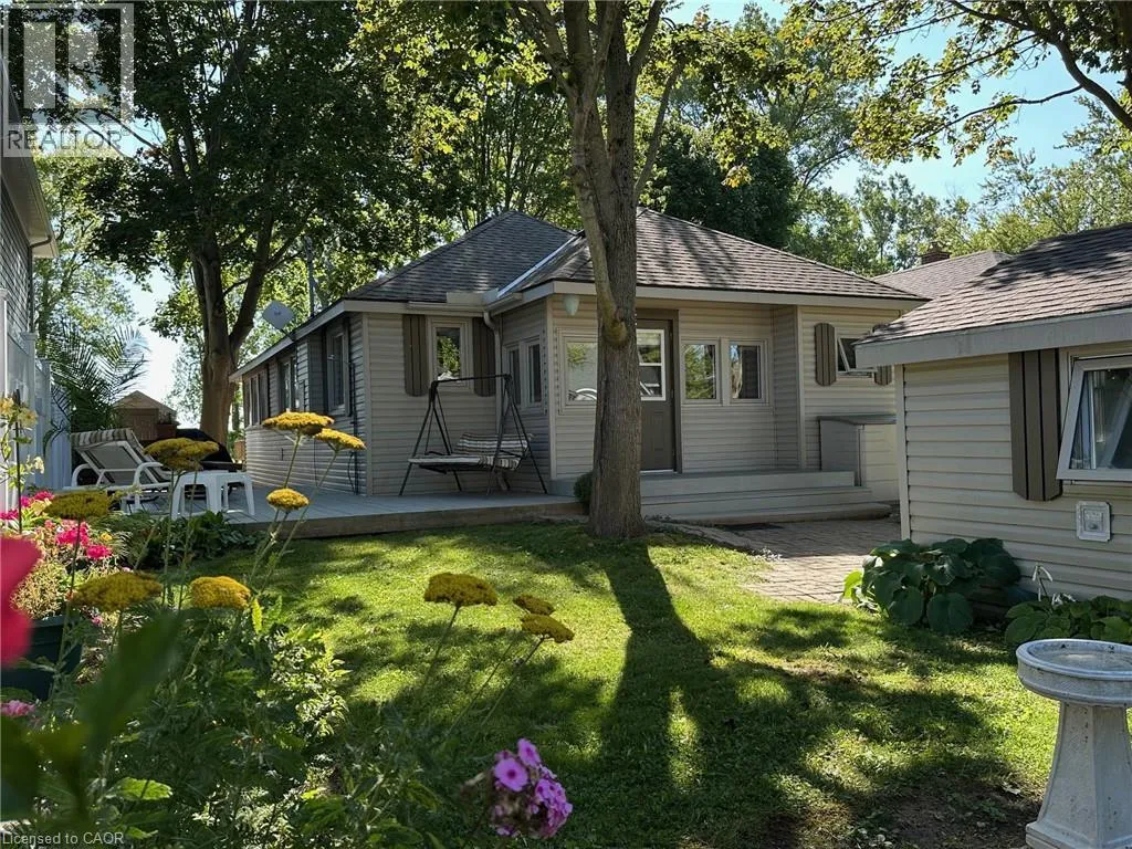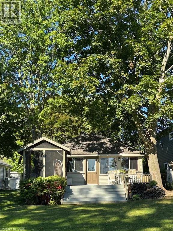 Turkey Point Rd. to bottom of hill, right on Cedar RARE BEACHFRONT COTTAGE! Discover the perfect retreat at this prime Turkey Point Beach property, featuring 40 feet of direct lake access with no road between your cottage and 3 km of sandy beach. This charming cottage offers three bedrooms and a sunroom, comfortably accommodating eight guests. An additional 240 sq ft Bunkie with power vent, ceiling fans, built-in bunk beds for four provides more sleeping space and is an ideal play space for the kids on a rainy day. All windows replaced in the cottage and Bunkie in 2017. Enjoy outdoor living with multiple spacious decks and a cozy screened room, and enjoy the wide-open grassed area for family gatherings around the fire pit for a little 'smoretime'. Conveniently located within walking distance to parks, pickleball courts, pavilion, ice cream, restaurants, marina, seadoo rental, and licensed grocery store. Nearby you will find mountain biking, hiking trails, swimming, boating, fishing, ziplining, wineries, breweries, shopping options and much more. Whether you choose to enjoy the seasonal cottage 'as is' or build your 'dream escape' at the beach on the calm Lake Erie shore, this location promises endless opportunities for creating lasting memories with your family. (id:27476)