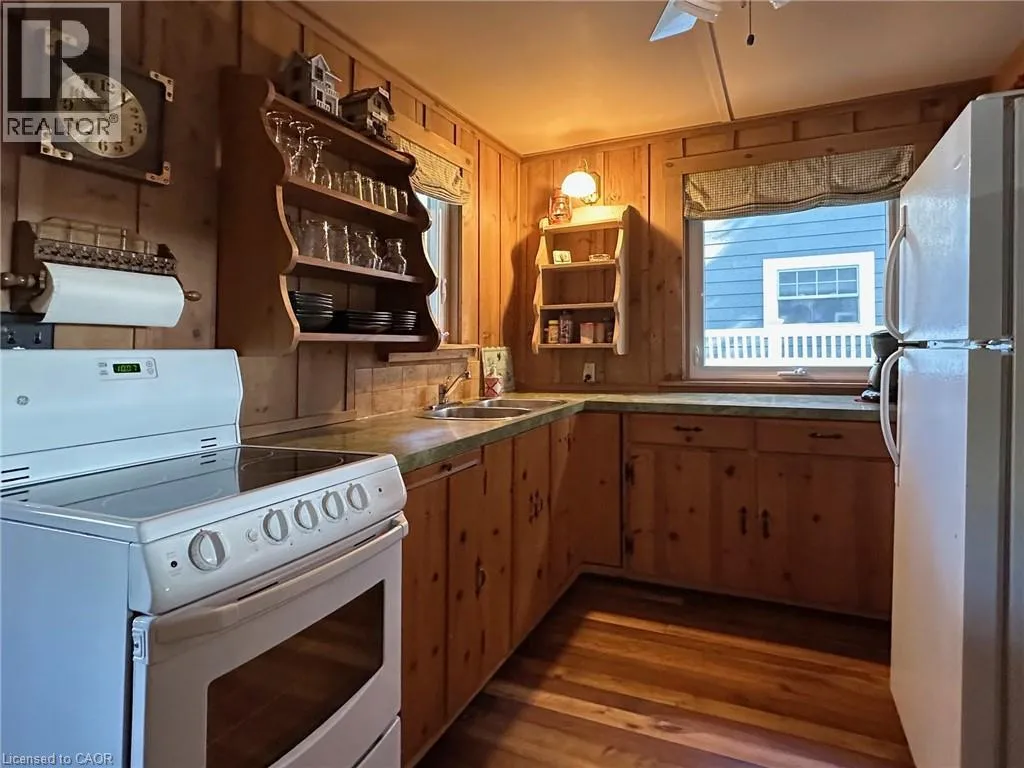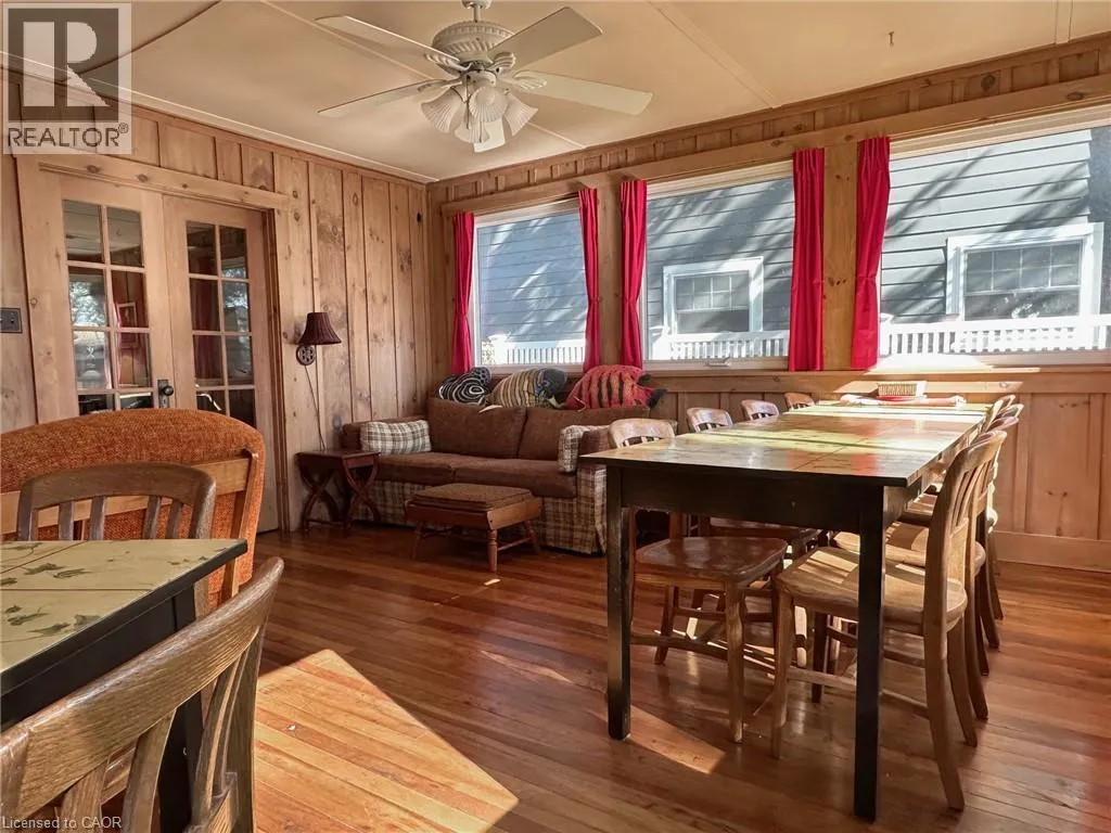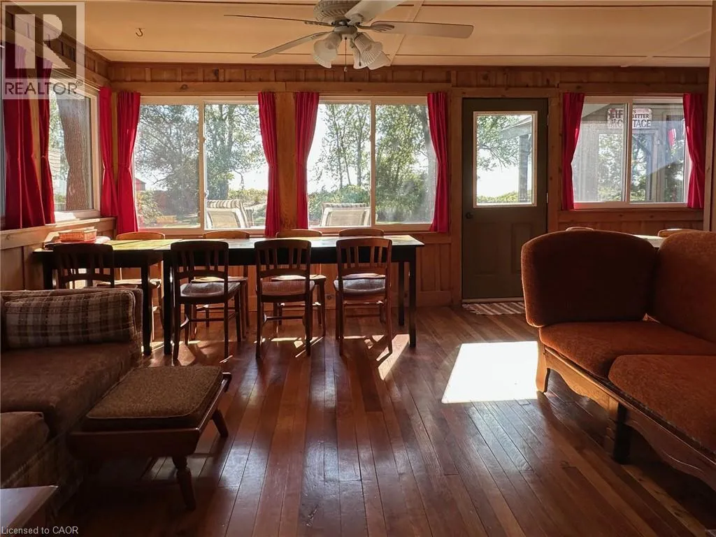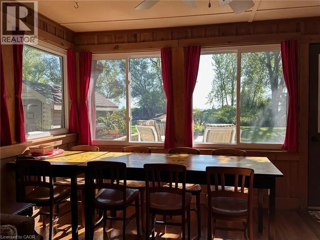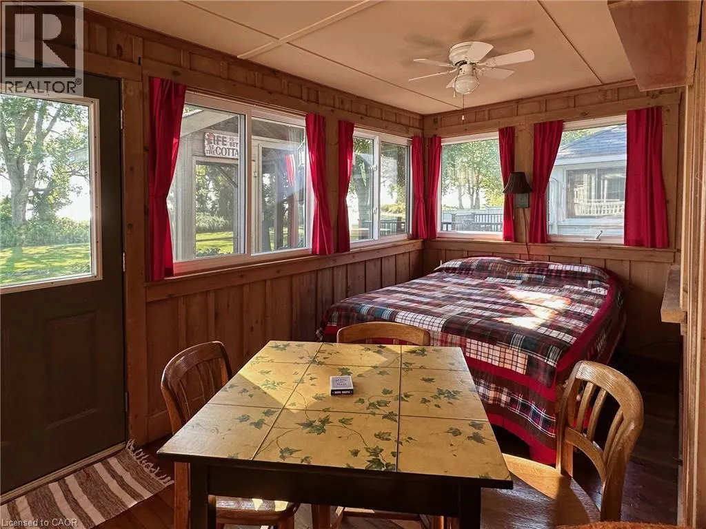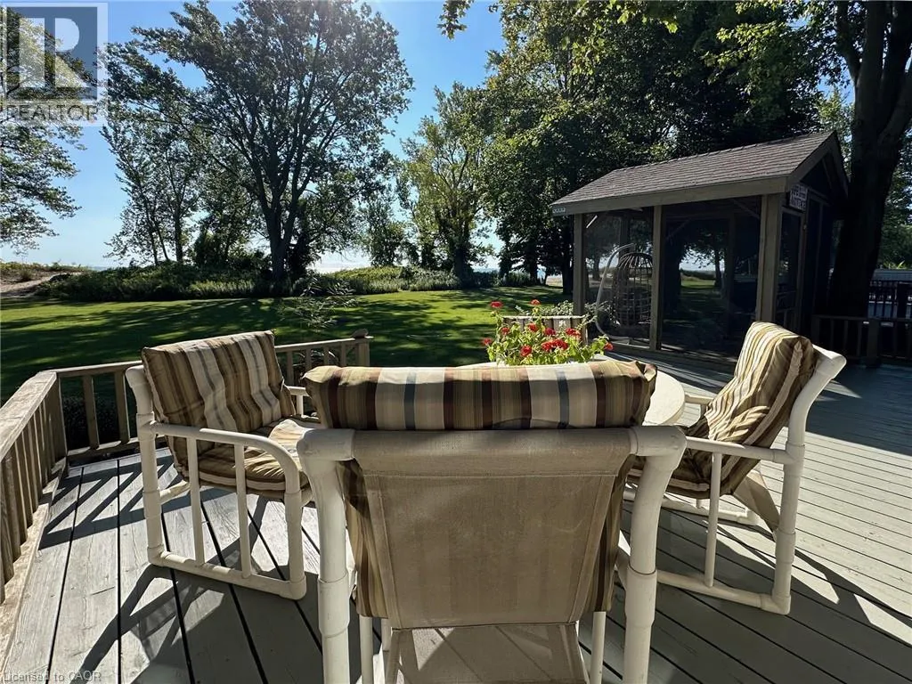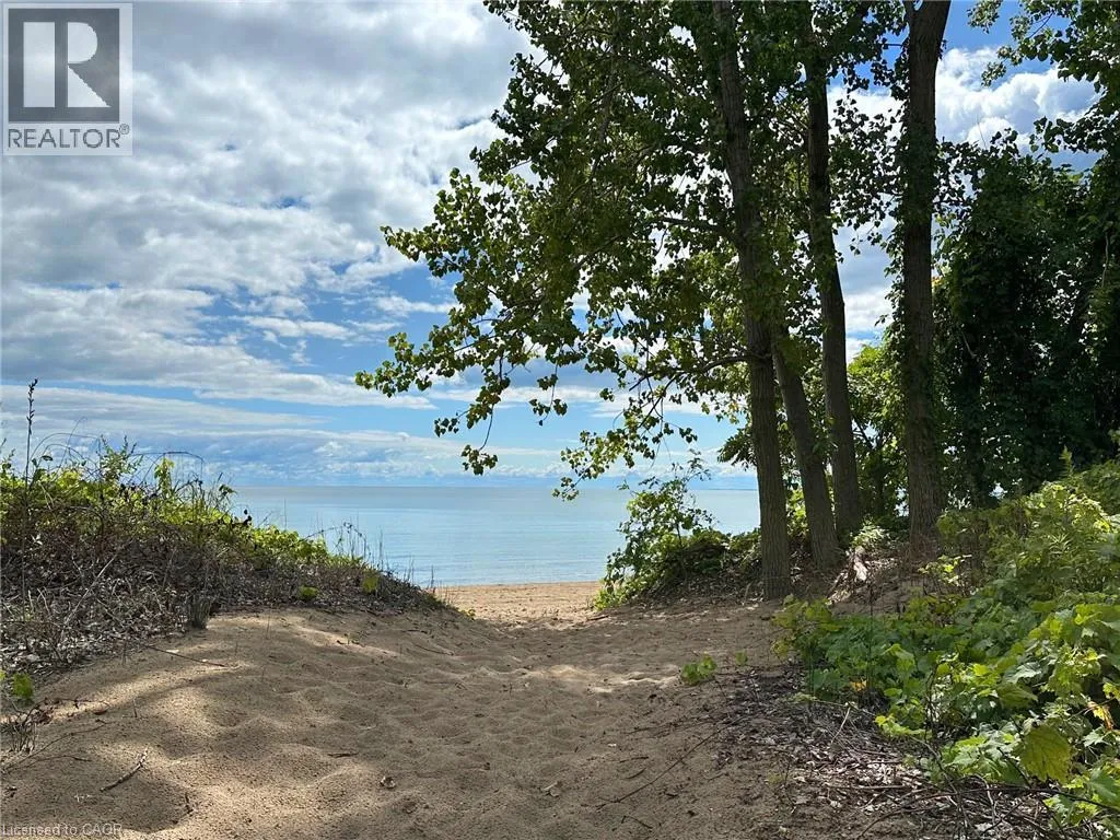 Turkey Point Rd. to bottom of hill, right on Cedar RARE BEACHFRONT COTTAGE! Discover the perfect retreat at this prime Turkey Point Beach property, featuring 40 feet of direct lake access with no road between your cottage and 3 km of sandy beach. This charming cottage offers three bedrooms and a sunroom, comfortably accommodating eight guests. An additional 240 sq ft Bunkie with power vent, ceiling fans, built-in bunk beds for four provides more sleeping space and is an ideal play space for the kids on a rainy day. All windows replaced in the cottage and Bunkie in 2017. Enjoy outdoor living with multiple spacious decks and a cozy screened room, and enjoy the wide-open grassed area for family gatherings around the fire pit for a little 'smoretime'. Conveniently located within walking distance to parks, pickleball courts, pavilion, ice cream, restaurants, marina, seadoo rental, and licensed grocery store. Nearby you will find mountain biking, hiking trails, swimming, boating, fishing, ziplining, wineries, breweries, shopping options and much more. Whether you choose to enjoy the seasonal cottage 'as is' or build your 'dream escape' at the beach on the calm Lake Erie shore, this location promises endless opportunities for creating lasting memories with your family. (id:27476)