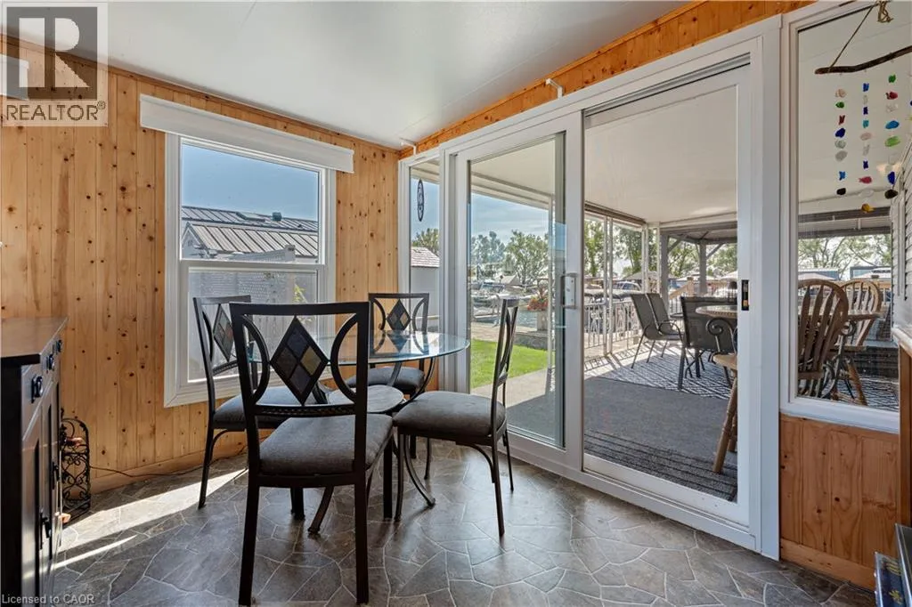 Turn right on Cedar, right on Reserve, left on Clubhouse Welcome to 92 Clubhouse Road unit #6. Stunning waterfront unit with expansive outdoor deck and gazebo overlooking the water. Sunroom features all new window and new sliding door (2024). New ductless split system (2023). Upper deck added (2022). interior features 2 beds, 1 bath, plus pullout allowing to sleep 6 comfortably. Kitchen nicely updated featuring gas stove and new fridge (2025). Unit is turn key, includes all contents indoor and outdoor and comes with 2 storage sheds. Comes with its own private boat slip. Don't miss out on this Turkey Point waterfront opportunity. (id:27476)