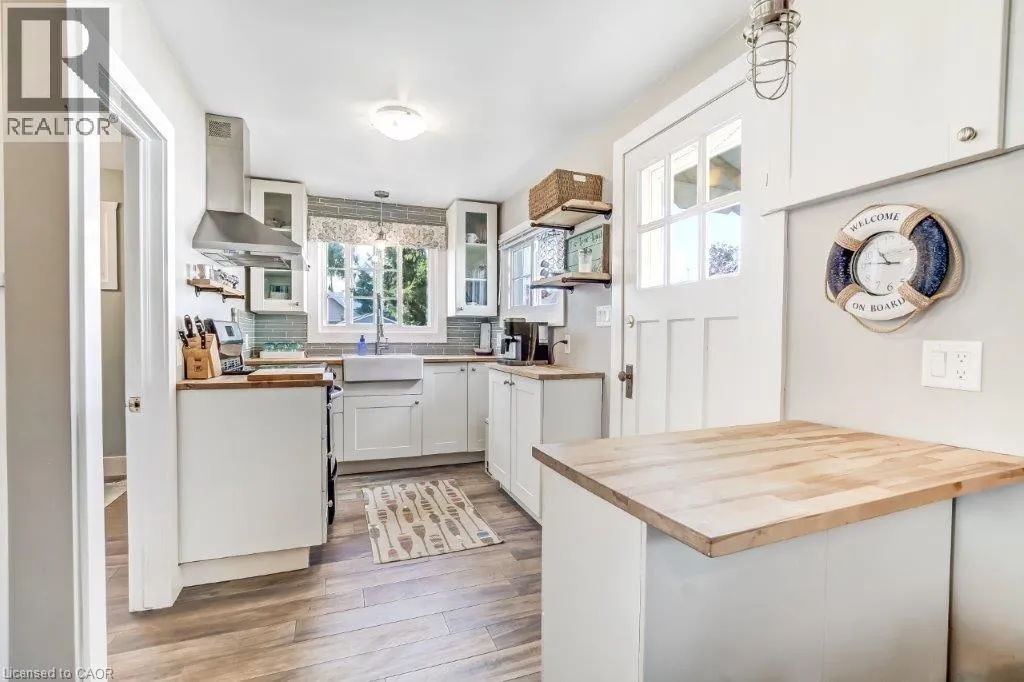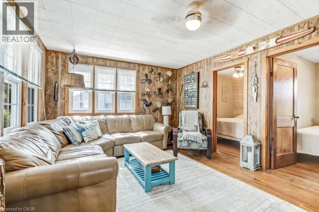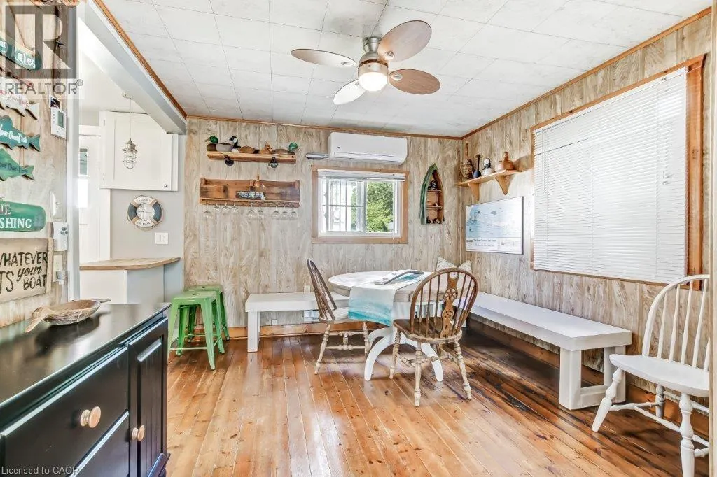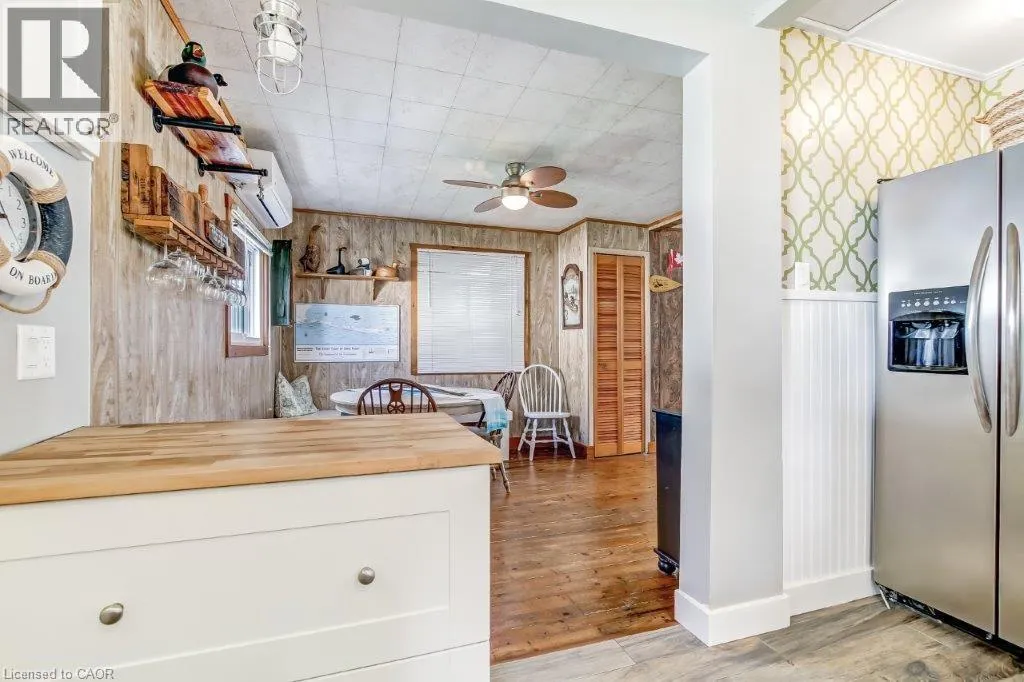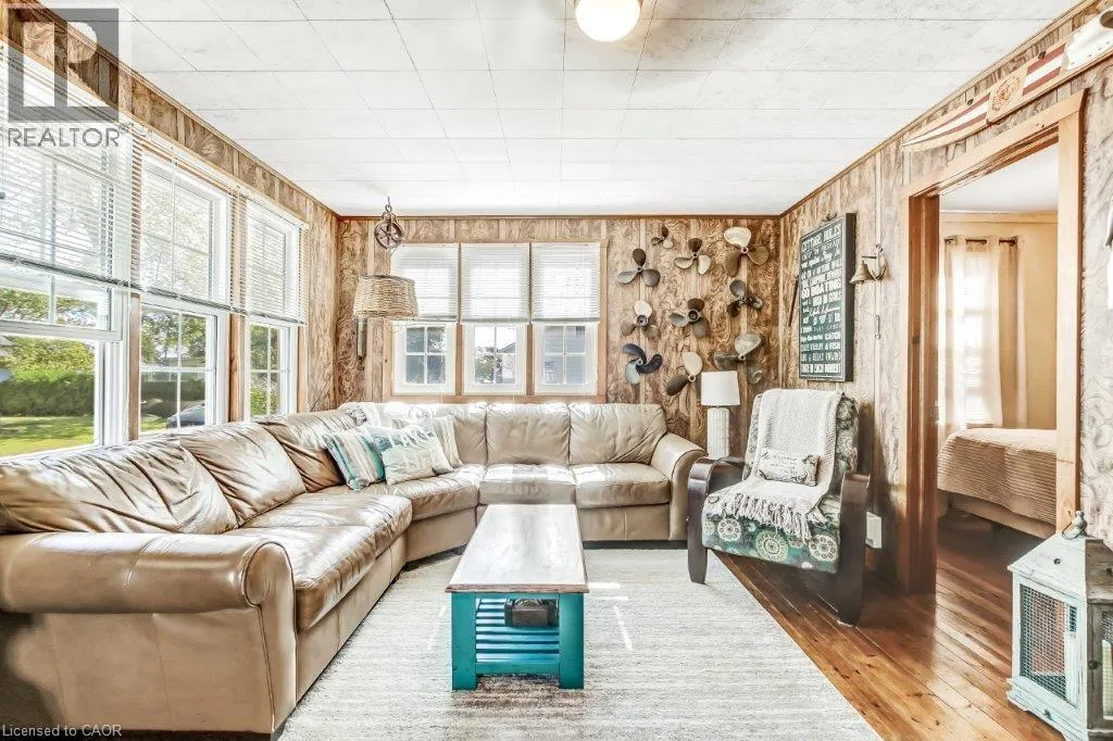 Turkey Point Rd., left on Cedar St., left on Isabel St Charming 2-bedroom cottage with lake views on one of Turkey Pointâs best streets! This turnkey property has been extensively updated: roof shingles, ductless A/C, spray-foam insulation, and renovated kitchen and in-floor heated tile in the renovated bath. Enjoy a spacious front deck with lake views, plus a backyard built for entertainingâflagstone patio, gazebo with screens and privacy curtains, firepit, outdoor shower, and plenty of green space. The detached garage offers excellent storage or potential for a bunkie, and the added shed provides even more room for beach gear and tools. Double driveways accommodate 5â6 cars, making it perfect for hosting family and friends. A beautifully maintained, move-in-ready cottage, a rare opportunity on a sought-after street! (id:27476)