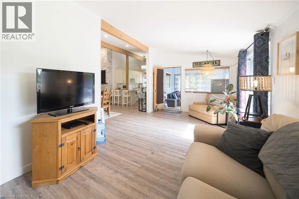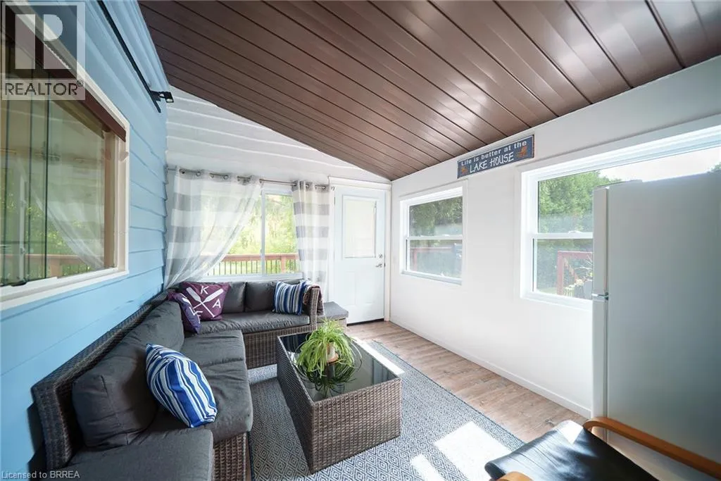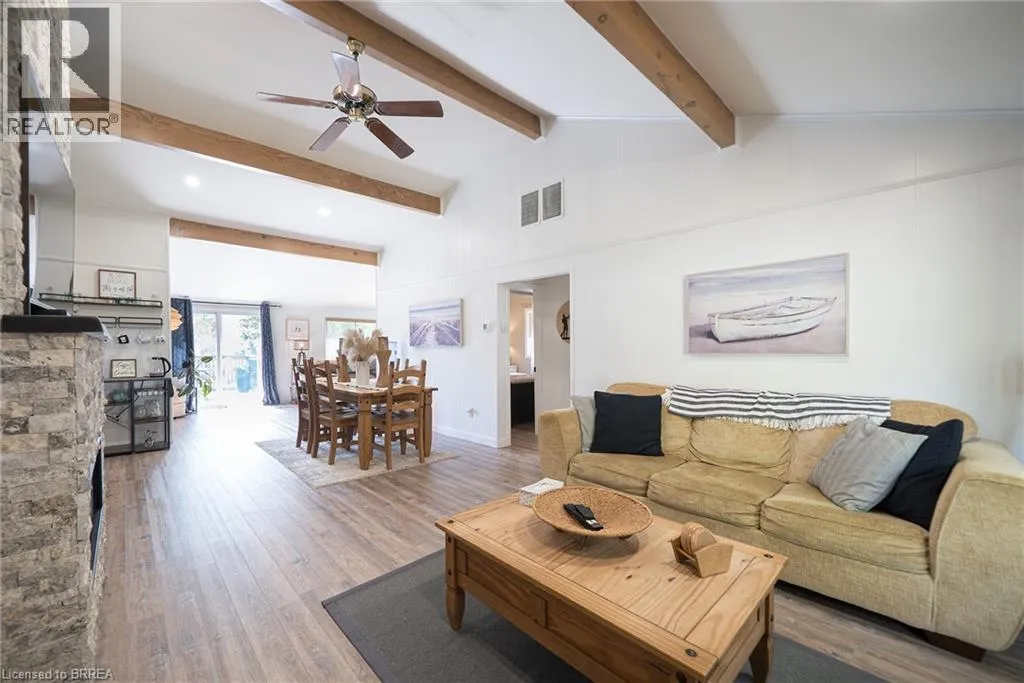 From Turkey Point Rd, turn left on Cedar Dr. Turn left on Head St. Follow to the end of Head St. Welcome to 114 Hillview Crescent, a beautifully updated 3-bedroom, 1-bathroom home nestled in the heart of Turkey Point. Privately situated on one of the highest points in the area, this property offers a peaceful setting surrounded by nature, while being just a short stroll to one of the finest sandy beaches in Southwestern Ontario. Inside, the home has been thoughtfully renovated and features a bright, open-concept layout with modern finishes throughout. The inviting living room showcases a cozy propane fireplace with a cultured stone surround and barnwood mantel, seamlessly flowing into the dining area and updated kitchen complete with white cabinetry, crown moulding, ample storage, and upgraded lighting. Durable luxury vinyl flooring runs throughout the main living spaces, while the fully renovated bathroom offers clean, stylish finishes. All three bedrooms are bright and functional, with the primary bedroom featuring a loft space for additional storage. A beautifully finished sunroom extends the living space and provides the perfect spot to relax year-round. Extensive updates have been completed throughout the home, including new siding, eaves, soffit and fascia, updated electrical with 200 amp service, a new furnace and A/C, updated windows and doors, and improvements to the crawlspace with sump pumps, vapor barrier, and insulation . The exterior offers a private setting with a spacious deck, firepit area, mature landscaping, and thoughtful drainage enhancements. Located in a highly sought-after lakeside community, Turkey Point is renowned for its shallow bay and incredible outdoor lifestyle. Enjoy fishing, boating, biking, water sports, and access to scenic conservation areas, all just steps from your door. Whether youâre looking for a full-time residence, a weekend retreat, or an investment opportunity, this property offers the perfect blend of comfort, privacy, and lifestyle. (id:27476)