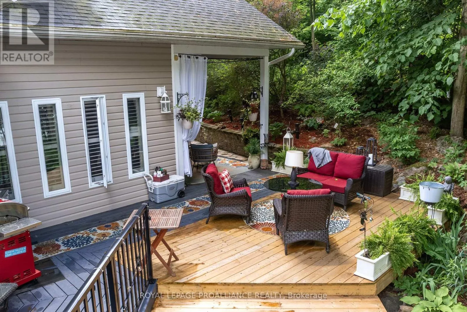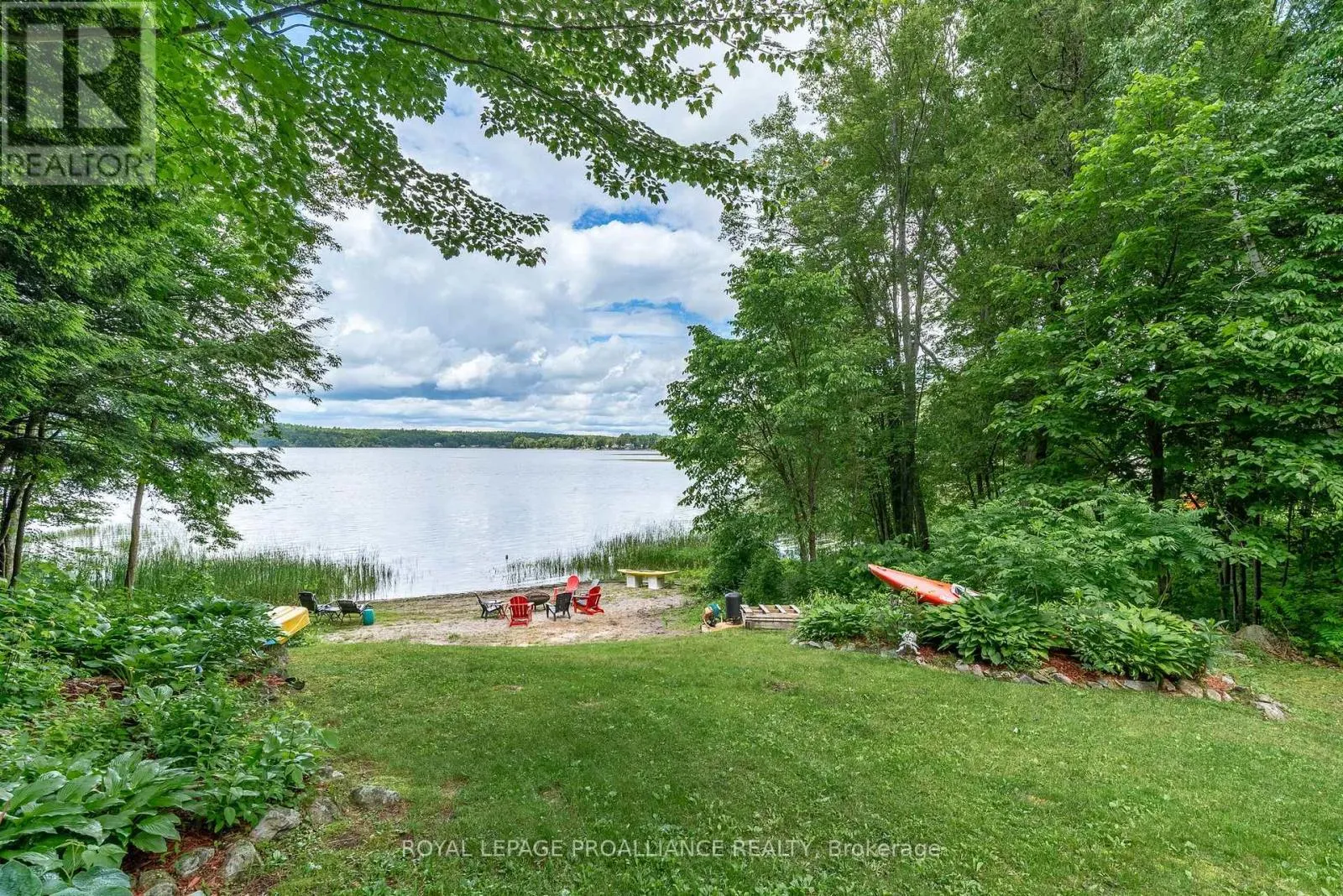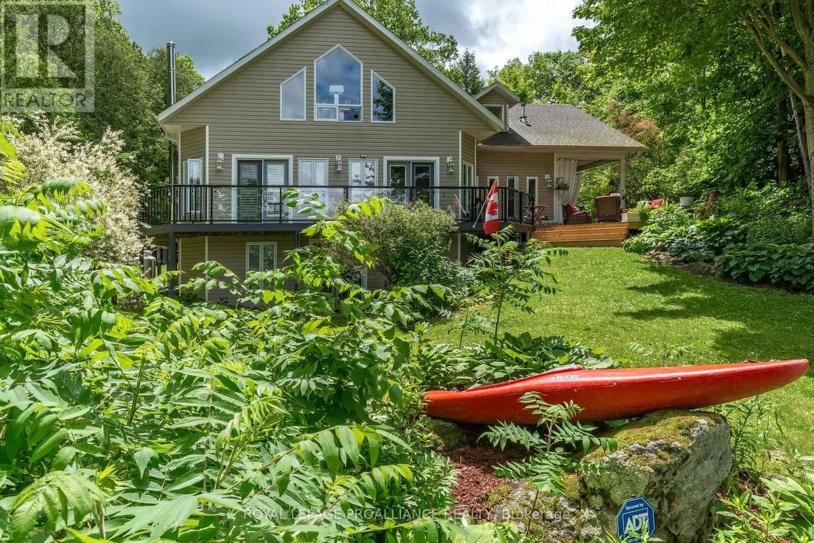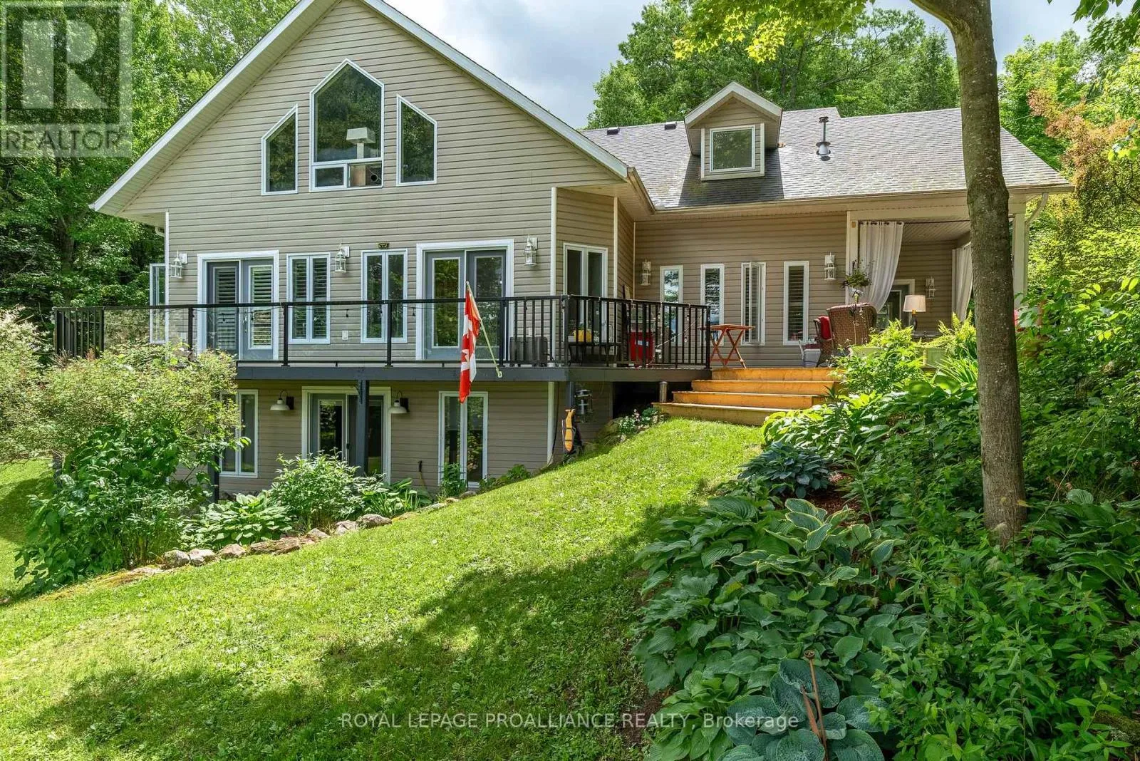 Marlbank Road / Stoco Road / Hughes Lane Who says you can't have it all? Gorgeous year round home on the lake & only 8 minutes to town. Pull into the driveway, step outside & onto the wrap around deck which allows for plenty of seating & breathtaking views! Take in the sounds of nature because you sure have it here on this private 1+acre lot, surrounded by trees, water & a sandy beach. Let's head into the 2400+/- square foot home which will WOW you! The oversized front foyer has plenty of windows so you can see the waterfront as well as the beautiful gardens and, it doubles as a nice office with the powder room for convenience. The exquisite kitchen will please with so many upgrades including a propane fireplace; wood cabinets with some glass doors; granite countertops, backsplash, pantry, appliance garage, wine rack & refrigerator, soft close drawers & doors, pull outs including a spice rack, trash & recycling bin, crown moldings, valances, under cabinet lighting & two stainless steel sinks(one being in the island which seats 4-6). The formal dining room & den overlook the water & are complemented by a pellet stove insert. Three bedrooms & a laundry room also on this level. The primary overlooks the water & has access to the deck; a walk-in closet; spa like ensuite with a jetted soaker tub & separate shower. The other 2 bedrooms share a lovely 3 piece bath which provides a closet for each bedroom. The family room is upstairs & perhaps the best view of all but, let's not forget the walkout basement which gives you even more potential! Worth Mentioning: Shingles 2014; Double Pane Vinyl Windows; 200 Amp Breaker Panel wired for Generac Generator; Propane Furnace 2018; Central Air 2009; HRV 2022; Owned Hot Water Tank 2023; Additional Insulation Blown into Attic & Additional Roof Vents Installed; Gaylord's Hardwood Plank Floors in Den, Dining Room, Hallway & Primary Bedroom 2019; Recessed Lighting throughout. Numerous Electrical Light Fixtures replaced including the Kitchen Fan Lights & Dining Room Chandelier. (id:27476)