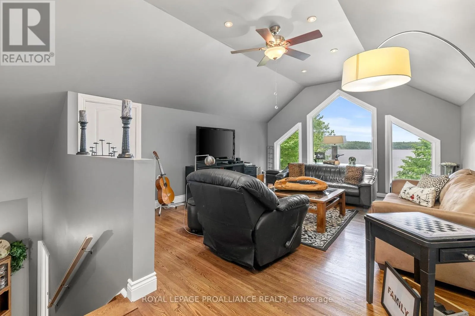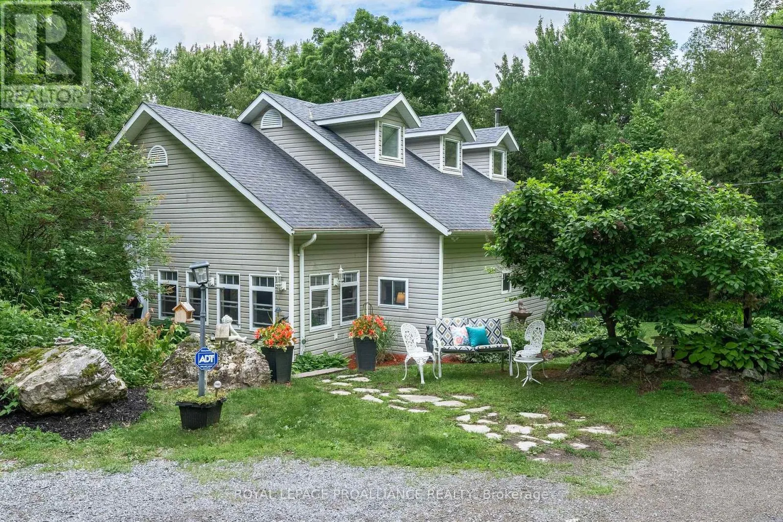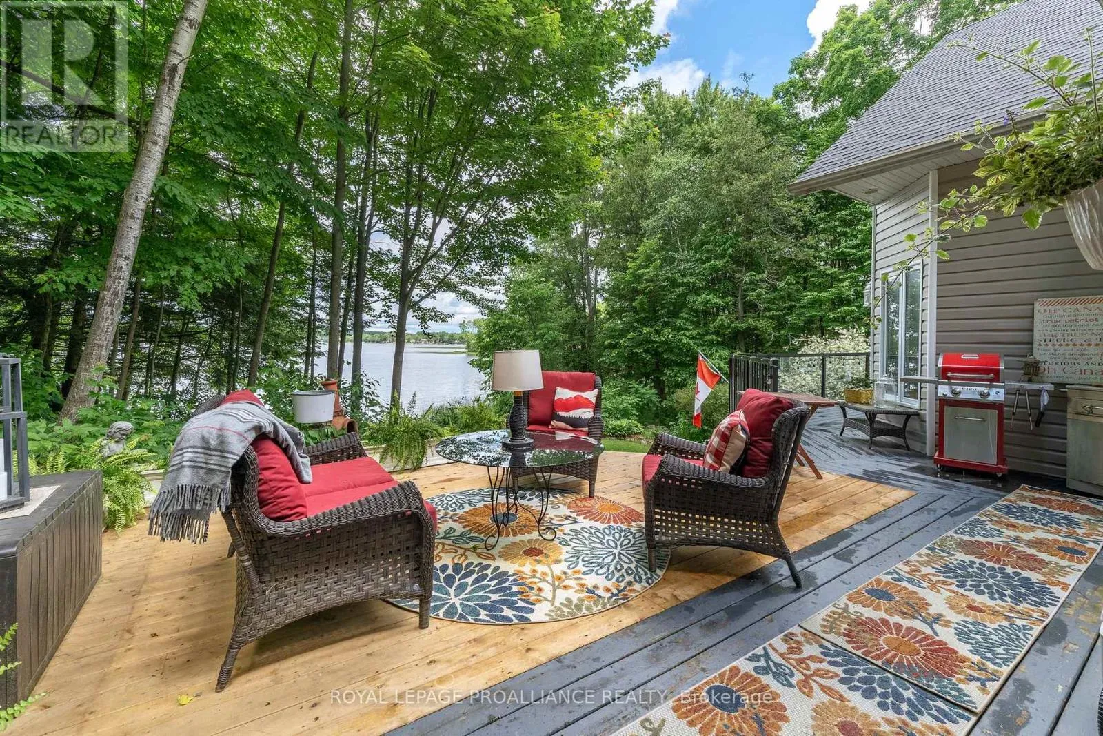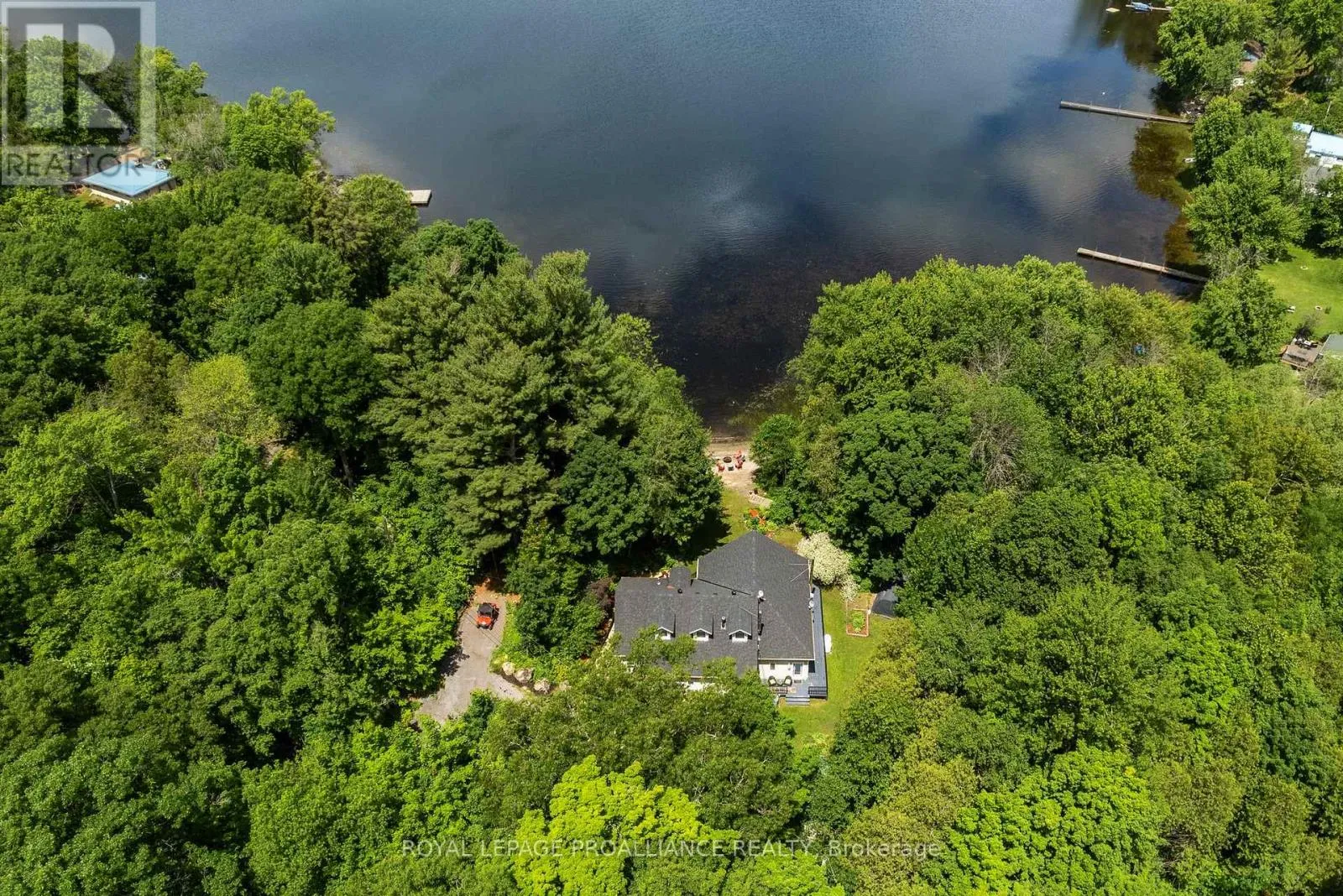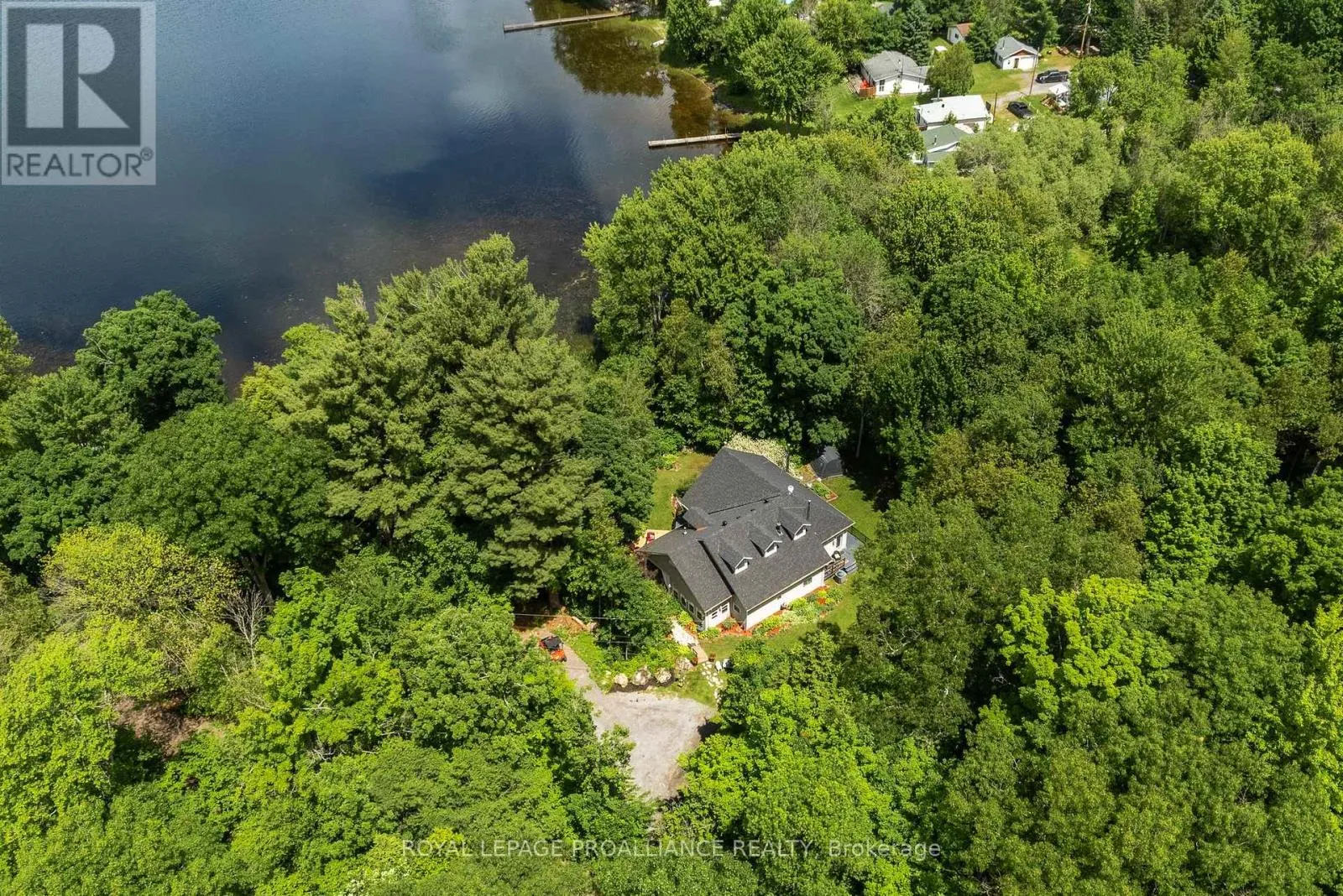 Marlbank Road / Stoco Road / Hughes Lane Who says you can't have it all? Gorgeous year round home on the lake & only 8 minutes to town. Pull into the driveway, step outside & onto the wrap around deck which allows for plenty of seating & breathtaking views! Take in the sounds of nature because you sure have it here on this private 1+acre lot, surrounded by trees, water & a sandy beach. Let's head into the 2400+/- square foot home which will WOW you! The oversized front foyer has plenty of windows so you can see the waterfront as well as the beautiful gardens and, it doubles as a nice office with the powder room for convenience. The exquisite kitchen will please with so many upgrades including a propane fireplace; wood cabinets with some glass doors; granite countertops, backsplash, pantry, appliance garage, wine rack & refrigerator, soft close drawers & doors, pull outs including a spice rack, trash & recycling bin, crown moldings, valances, under cabinet lighting & two stainless steel sinks(one being in the island which seats 4-6). The formal dining room & den overlook the water & are complemented by a pellet stove insert. Three bedrooms & a laundry room also on this level. The primary overlooks the water & has access to the deck; a walk-in closet; spa like ensuite with a jetted soaker tub & separate shower. The other 2 bedrooms share a lovely 3 piece bath which provides a closet for each bedroom. The family room is upstairs & perhaps the best view of all but, let's not forget the walkout basement which gives you even more potential! Worth Mentioning: Shingles 2014; Double Pane Vinyl Windows; 200 Amp Breaker Panel wired for Generac Generator; Propane Furnace 2018; Central Air 2009; HRV 2022; Owned Hot Water Tank 2023; Additional Insulation Blown into Attic & Additional Roof Vents Installed; Gaylord's Hardwood Plank Floors in Den, Dining Room, Hallway & Primary Bedroom 2019; Recessed Lighting throughout. Numerous Electrical Light Fixtures replaced including the Kitchen Fan Lights & Dining Room Chandelier. (id:27476)
