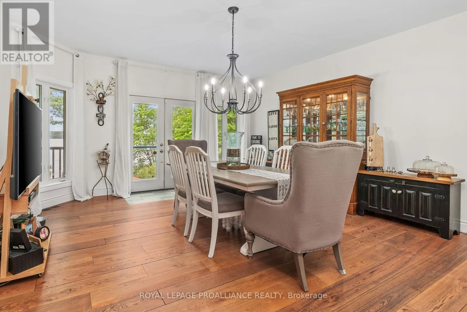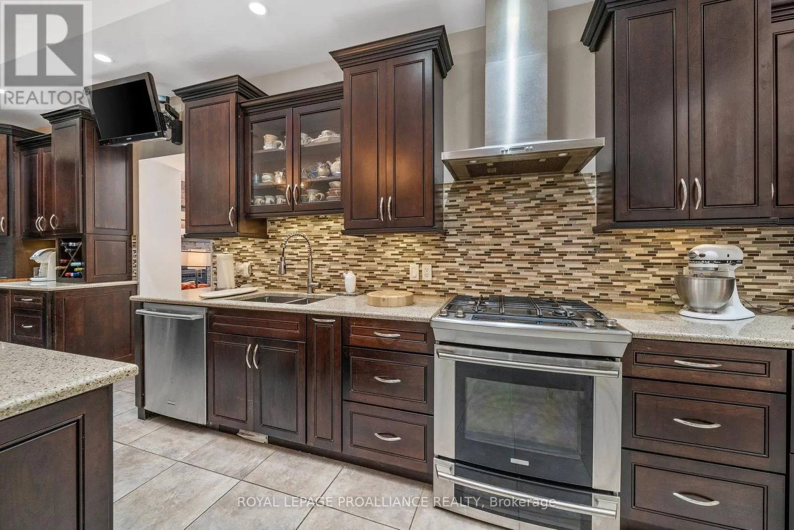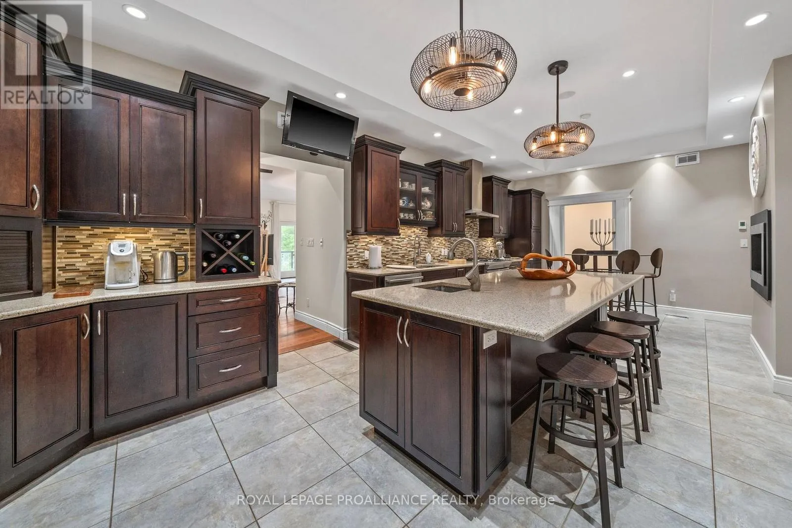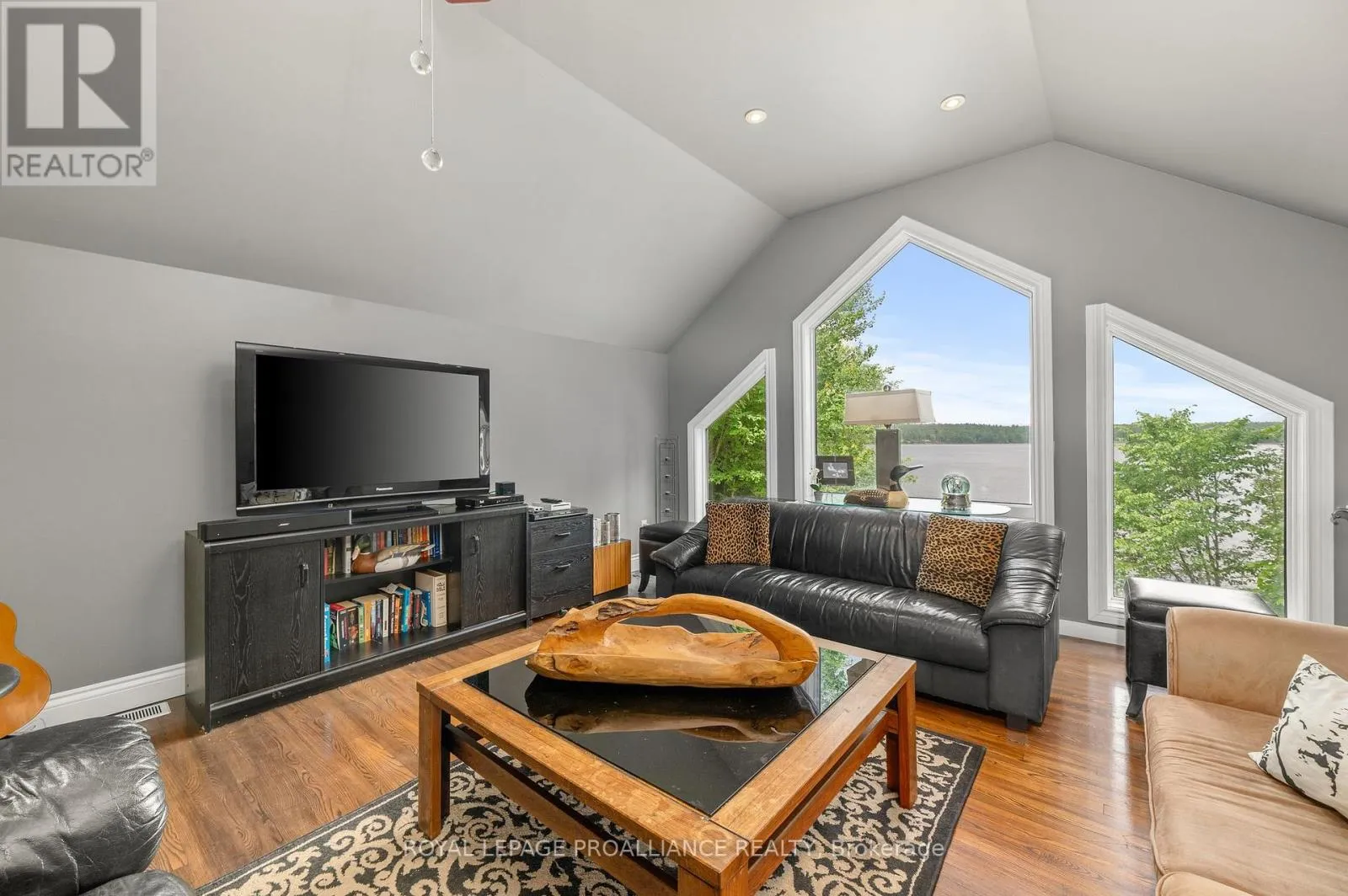 Marlbank Road / Stoco Road / Hughes Lane Who says you can't have it all? Gorgeous year round home on the lake & only 8 minutes to town. Pull into the driveway, step outside & onto the wrap around deck which allows for plenty of seating & breathtaking views! Take in the sounds of nature because you sure have it here on this private 1+acre lot, surrounded by trees, water & a sandy beach. Let's head into the 2400+/- square foot home which will WOW you! The oversized front foyer has plenty of windows so you can see the waterfront as well as the beautiful gardens and, it doubles as a nice office with the powder room for convenience. The exquisite kitchen will please with so many upgrades including a propane fireplace; wood cabinets with some glass doors; granite countertops, backsplash, pantry, appliance garage, wine rack & refrigerator, soft close drawers & doors, pull outs including a spice rack, trash & recycling bin, crown moldings, valances, under cabinet lighting & two stainless steel sinks(one being in the island which seats 4-6). The formal dining room & den overlook the water & are complemented by a pellet stove insert. Three bedrooms & a laundry room also on this level. The primary overlooks the water & has access to the deck; a walk-in closet; spa like ensuite with a jetted soaker tub & separate shower. The other 2 bedrooms share a lovely 3 piece bath which provides a closet for each bedroom. The family room is upstairs & perhaps the best view of all but, let's not forget the walkout basement which gives you even more potential! Worth Mentioning: Shingles 2014; Double Pane Vinyl Windows; 200 Amp Breaker Panel wired for Generac Generator; Propane Furnace 2018; Central Air 2009; HRV 2022; Owned Hot Water Tank 2023; Additional Insulation Blown into Attic & Additional Roof Vents Installed; Gaylord's Hardwood Plank Floors in Den, Dining Room, Hallway & Primary Bedroom 2019; Recessed Lighting throughout. Numerous Electrical Light Fixtures replaced including the Kitchen Fan Lights & Dining Room Chandelier. (id:27476)