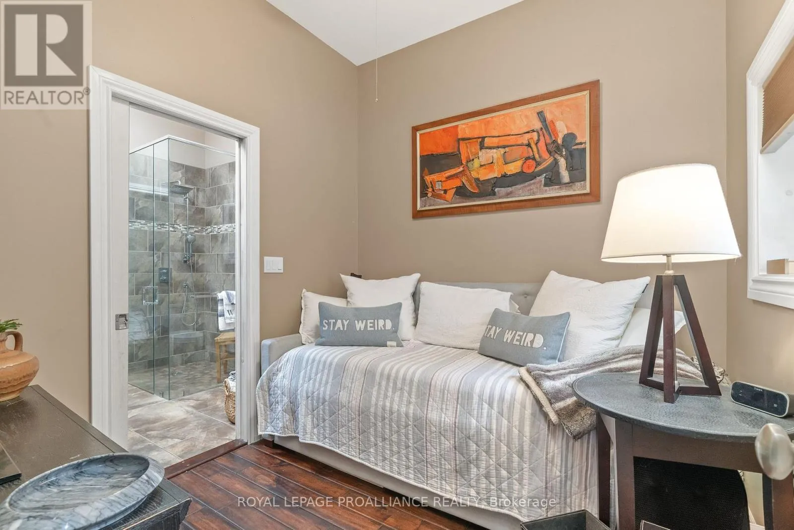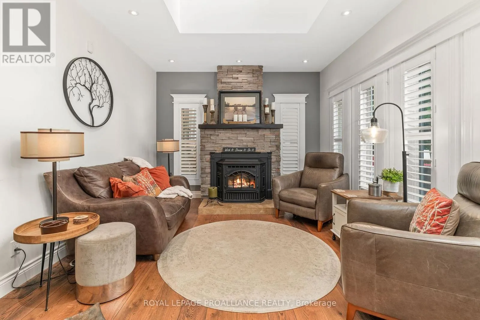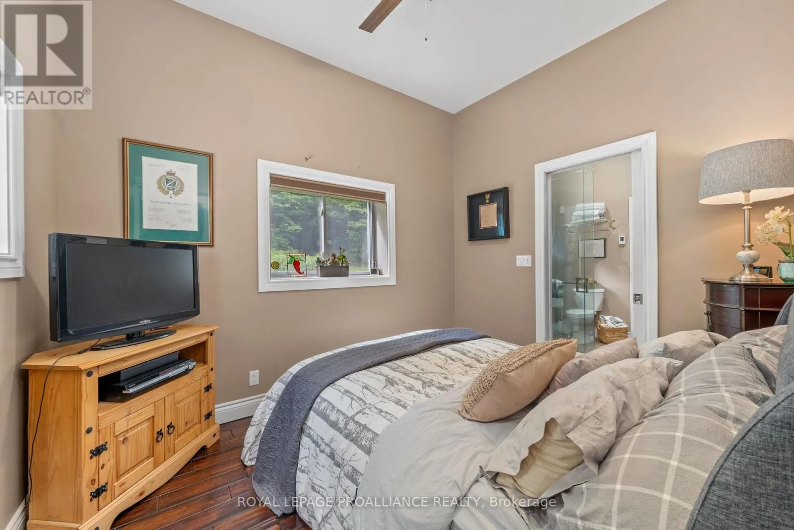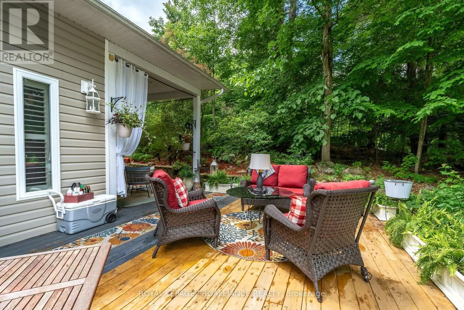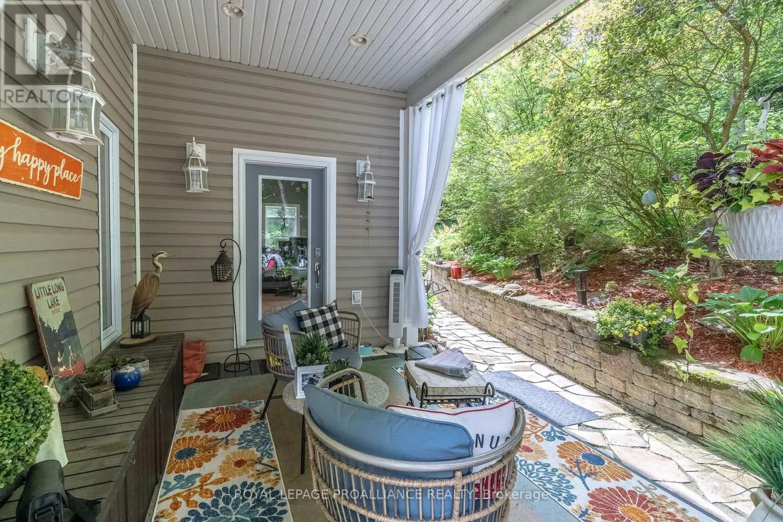 Marlbank Road / Stoco Road / Hughes Lane Who says you can't have it all? Gorgeous year round home on the lake & only 8 minutes to town. Pull into the driveway, step outside & onto the wrap around deck which allows for plenty of seating & breathtaking views! Take in the sounds of nature because you sure have it here on this private 1+acre lot, surrounded by trees, water & a sandy beach. Let's head into the 2400+/- square foot home which will WOW you! The oversized front foyer has plenty of windows so you can see the waterfront as well as the beautiful gardens and, it doubles as a nice office with the powder room for convenience. The exquisite kitchen will please with so many upgrades including a propane fireplace; wood cabinets with some glass doors; granite countertops, backsplash, pantry, appliance garage, wine rack & refrigerator, soft close drawers & doors, pull outs including a spice rack, trash & recycling bin, crown moldings, valances, under cabinet lighting & two stainless steel sinks(one being in the island which seats 4-6). The formal dining room & den overlook the water & are complemented by a pellet stove insert. Three bedrooms & a laundry room also on this level. The primary overlooks the water & has access to the deck; a walk-in closet; spa like ensuite with a jetted soaker tub & separate shower. The other 2 bedrooms share a lovely 3 piece bath which provides a closet for each bedroom. The family room is upstairs & perhaps the best view of all but, let's not forget the walkout basement which gives you even more potential! Worth Mentioning: Shingles 2014; Double Pane Vinyl Windows; 200 Amp Breaker Panel wired for Generac Generator; Propane Furnace 2018; Central Air 2009; HRV 2022; Owned Hot Water Tank 2023; Additional Insulation Blown into Attic & Additional Roof Vents Installed; Gaylord's Hardwood Plank Floors in Den, Dining Room, Hallway & Primary Bedroom 2019; Recessed Lighting throughout. Numerous Electrical Light Fixtures replaced including the Kitchen Fan Lights & Dining Room Chandelier. (id:27476)