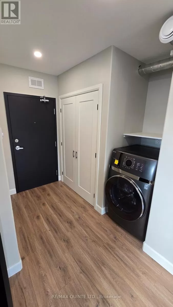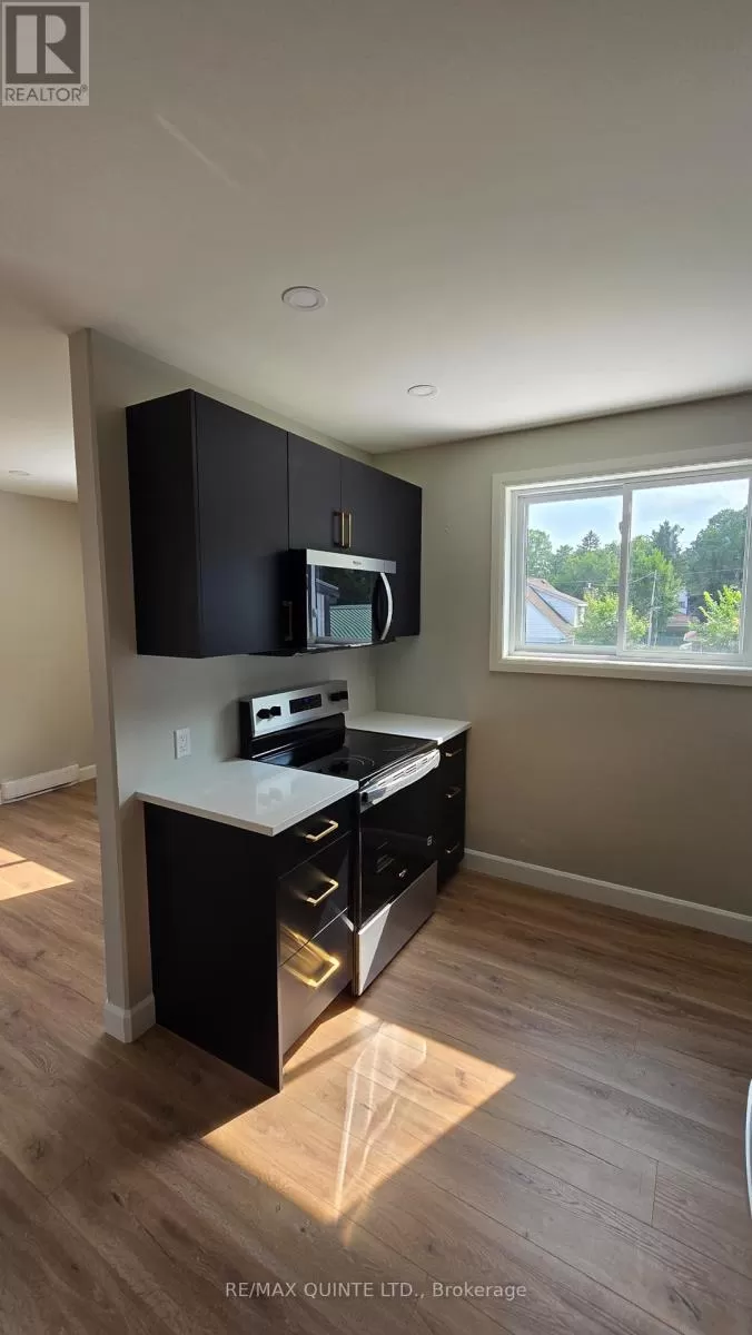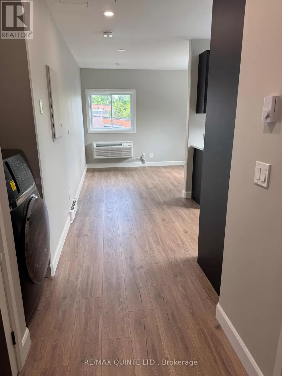 Cross Streets: Victoria st. N & Spring St. W. ** Directions: Follow highway 37 into Tweed. This bright, thoughtfully designed second storey studio apartment is located in a fully restored 1846 heritage building in the heart of Tweed. Newly built from the ground up, the bachelor-style unit offers stylish, low-maintenance living with premium finishes and efficient use of space; perfect for a professional, student, or anyone seeking simplicity without sacrificing quality. The open-concept layout features a modern kitchen with white quartz countertops, custom black slab cabinetry with solid wood interiors, and brand new stainless steel appliances. The bathroom includes a tiled shower, quartz vanity, and tiled floors, creating a clean and contemporary feel throughout. Luxury vinyl plank flooring runs through the entire unit, complemented by beautiful light fixtures and ample pot lighting. Additional features include an in-suite all-in-one washer and dryer, a private hot water tank, a utility/storage closet, and efficient heating and cooling with a heat pump. One outdoor parking space is included. The building has been fully rebuilt with new hydro and water services, and each unit is separately metered. Tenant is responsible for hydro, heat, and water. No pets and no smoking permitted. First and last months rent required. Located just steps from local amenities, parks, and Stoco Lake, this modern studio offers a fantastic opportunity to live in a beautifully restored landmark in one of Ontarios most charming small towns. Tweed provides a strong sense of community, scenic outdoor spaces, and easy access to Belleville. Available immediately. (id:27476)