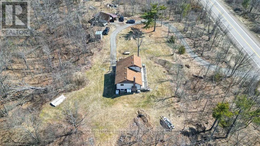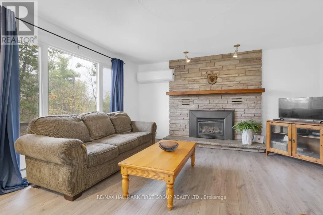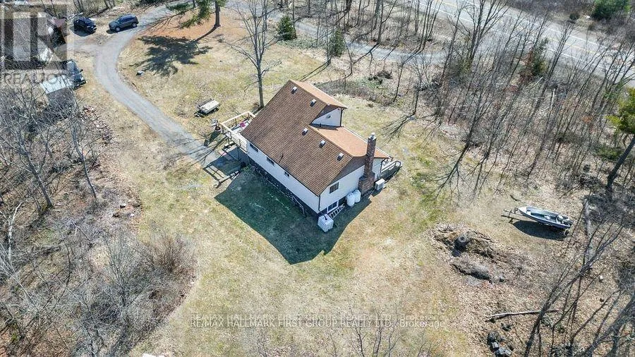Cross Streets: East of #37 on Highway #7. ** Directions: Hwy 7 North of Upper Flinton Rd. PRIVATE COUNTRY SETTING! Wow imagine being secluded on a quiet 2 ACRE lot with NO neighbours overlooking? Enjoy the spectacular hill top view from this lovely home. Must see this unique design, features spacious 4 Bedrooms & 3 Baths. Functional layout, main level has eat in kitchen and cozy living room with propane fireplace & 2 main floor bedrooms and laundry. Upper level features Primary bedroom loft with 2 PC bath and a Juliette balcony. Lots of space on the lower level with a finished rec room area & nice walk-out to patio. Spacious deck in front for entertaining! Plus extra bonus for the handyman, you'll love the detached garage with workshop area & loft, great storage for the toys. Efficient heating & cooling with heat pump. Also includes back up plug for generator. This immaculate home was freshly painted throughout, shows well! Good location on Highway #7, close to Village of Tweed 2 hours to GTA or Ottawa! This fantastic property is value packed- a must see, won't last long! (id:27476)
