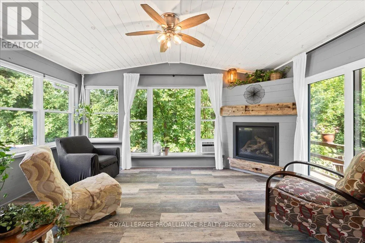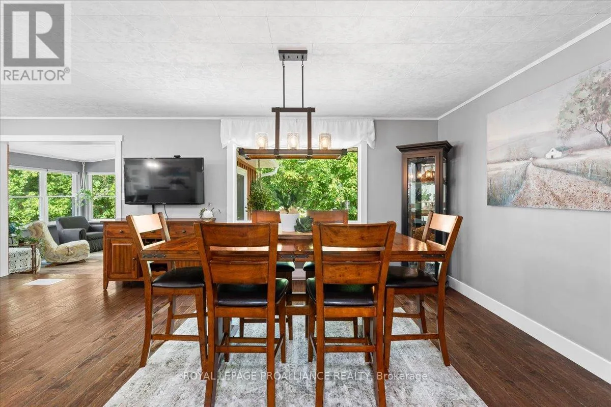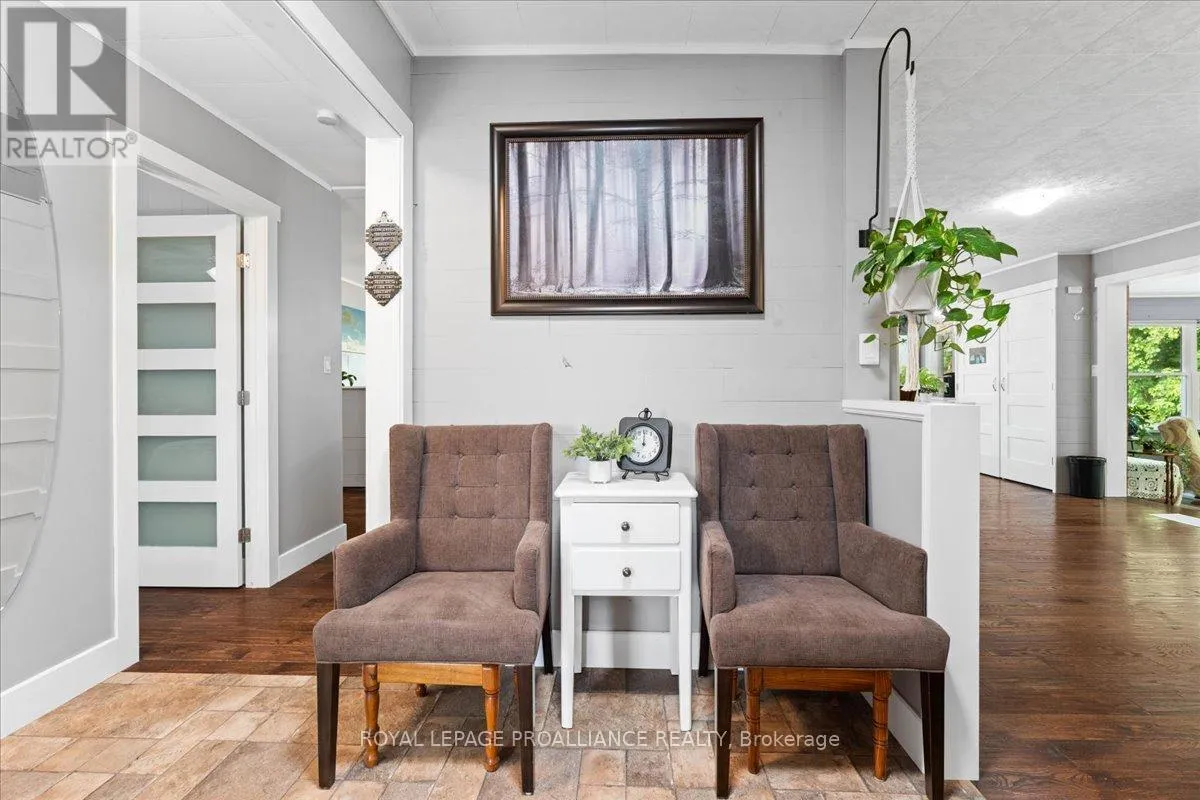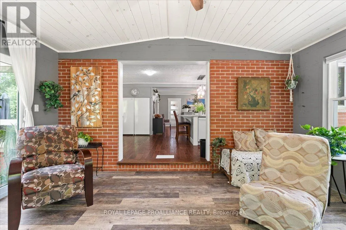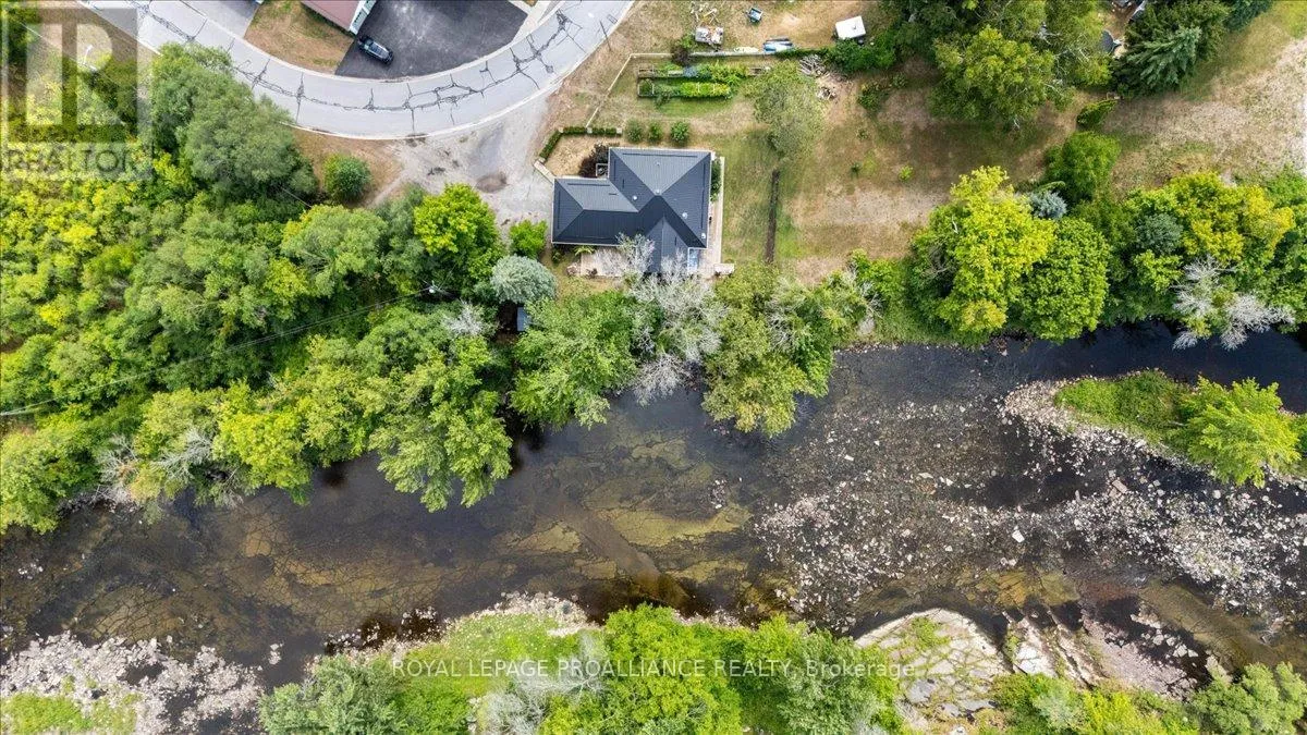 Cross Streets: Highway 37. ** Directions: Take Highway 37 to Spring St. East. Tucked away on a quiet back street in the lovely village of Tweed, this well appointed bungalow offers a rare opportunity for privacy, charm and riverfront living. Backing onto the Moira River, the property features an attached garage and a four season sunroom with a cozy natural gas fireplace, perfect for enjoying the view year round. Patio doors open to a private courtyard overlooking the water creating an ideal spot for morning coffee or evening relaxation. The backyard is a true extension of the home with ample space for gardening in the raised beds, hosting summer gatherings or enjoying a game of lawn darts with friends. Inside, the main floor offers an open concept living and dining area with a flexible layout, a main floor bedroom, a 3 piece bathroom and laundry. Numerous updates enhance comfort and efficiency including hot water on demand, a metal roof (2017), updated windows and doors (within the last 6 years), and upgraded electrical panel (2025) and owned reverse osmosis and water softener systems (2025). Downstairs the fully finished basement adds impressive living space with three additional bedrooms, a large rec room warmed by a cozy gas stove and a luxurious 3 piece bathroom. This is a home where comfort meets lifestyle offering both the peaceful feel of county living and the convenience of being in town. (id:27476)