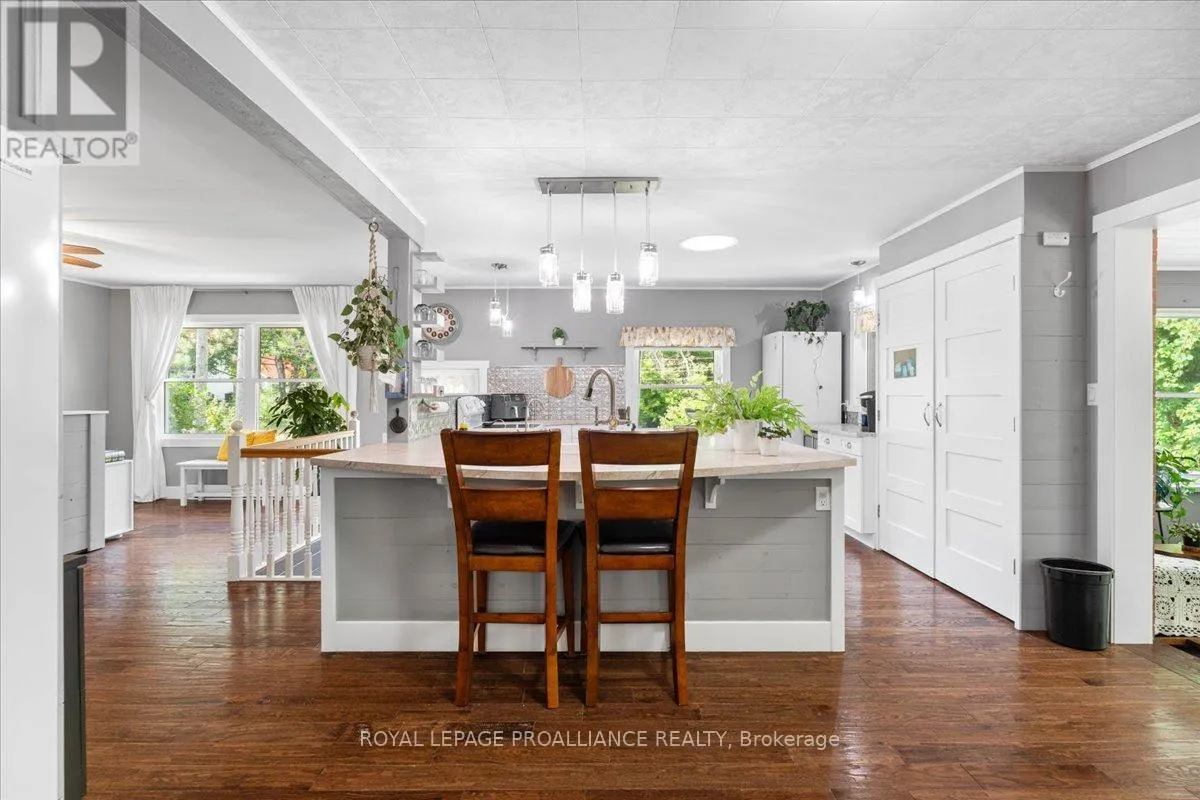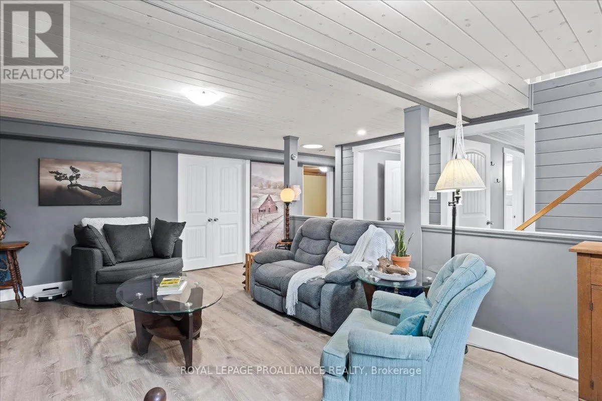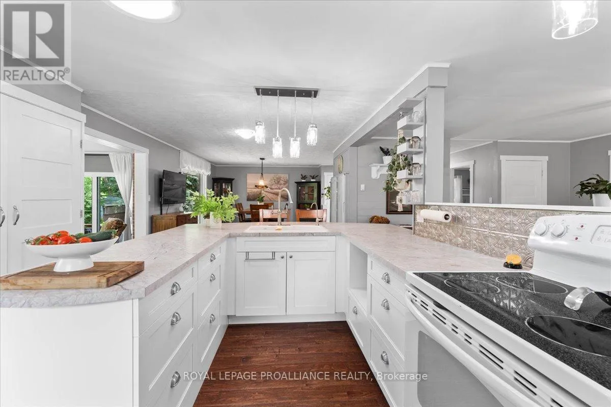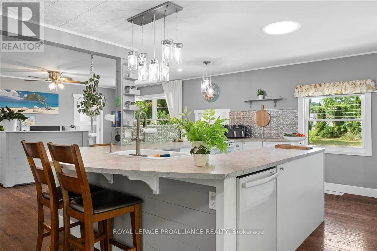 Cross Streets: Highway 37. ** Directions: Take Highway 37 to Spring St. East. Tucked away on a quiet back street in the lovely village of Tweed, this well appointed bungalow offers a rare opportunity for privacy, charm and riverfront living. Backing onto the Moira River, the property features an attached garage and a four season sunroom with a cozy natural gas fireplace, perfect for enjoying the view year round. Patio doors open to a private courtyard overlooking the water creating an ideal spot for morning coffee or evening relaxation. The backyard is a true extension of the home with ample space for gardening in the raised beds, hosting summer gatherings or enjoying a game of lawn darts with friends. Inside, the main floor offers an open concept living and dining area with a flexible layout, a main floor bedroom, a 3 piece bathroom and laundry. Numerous updates enhance comfort and efficiency including hot water on demand, a metal roof (2017), updated windows and doors (within the last 6 years), and upgraded electrical panel (2025) and owned reverse osmosis and water softener systems (2025). Downstairs the fully finished basement adds impressive living space with three additional bedrooms, a large rec room warmed by a cozy gas stove and a luxurious 3 piece bathroom. This is a home where comfort meets lifestyle offering both the peaceful feel of county living and the convenience of being in town. (id:27476)