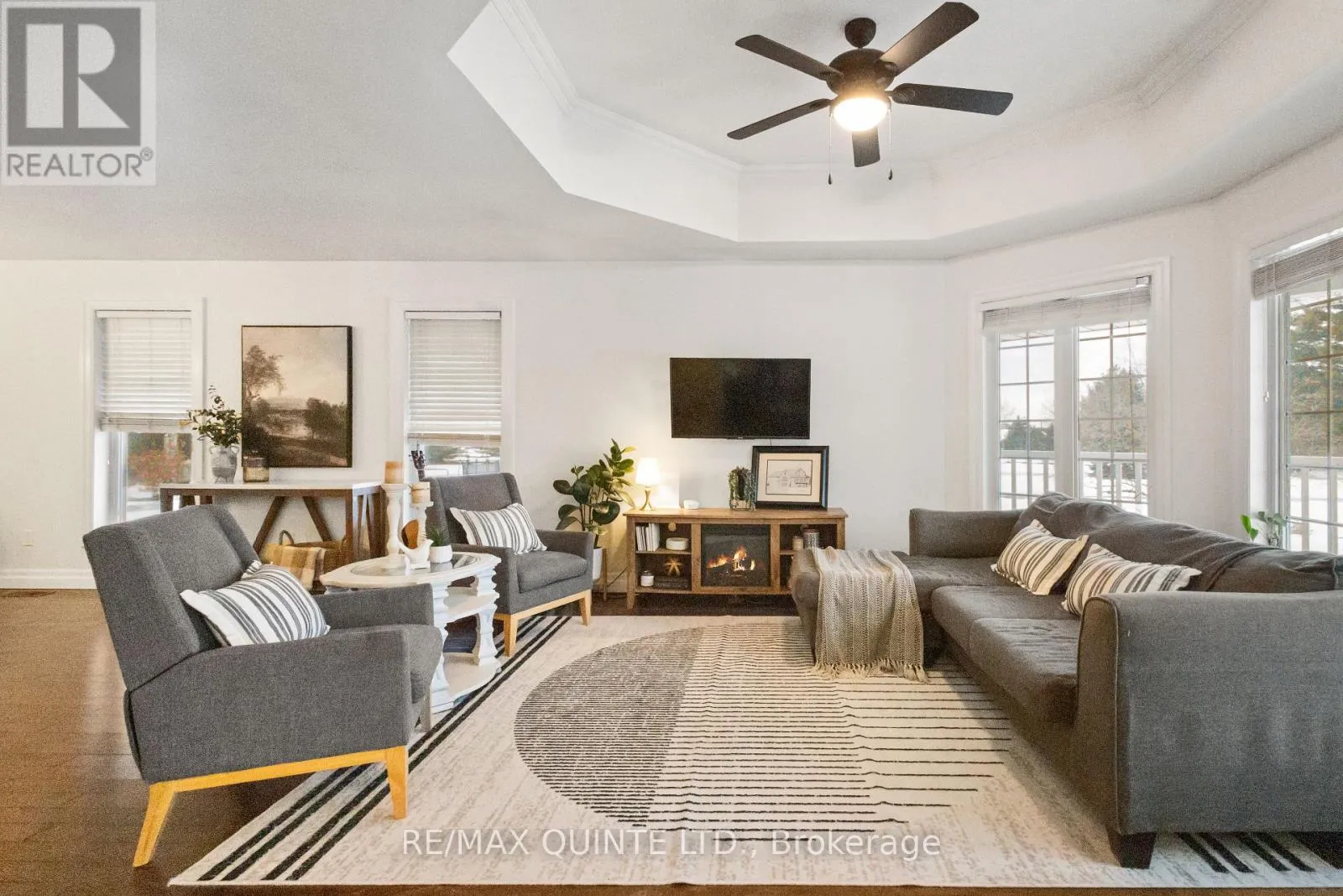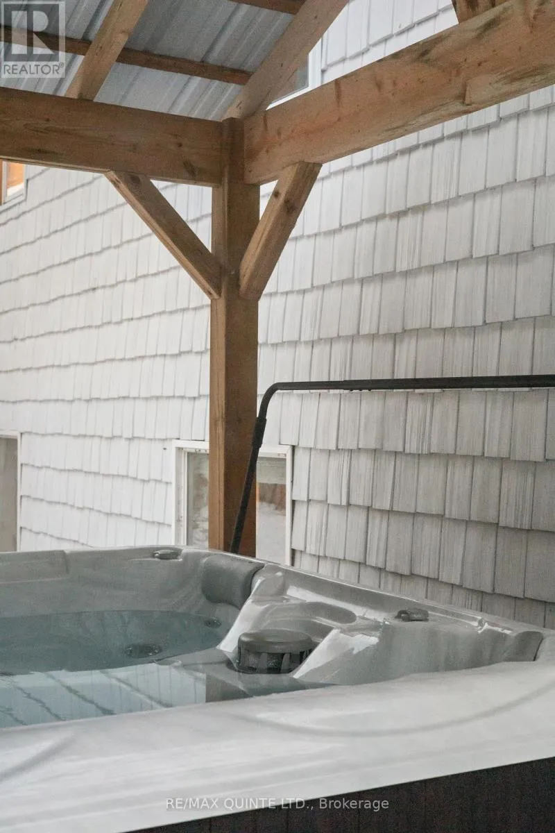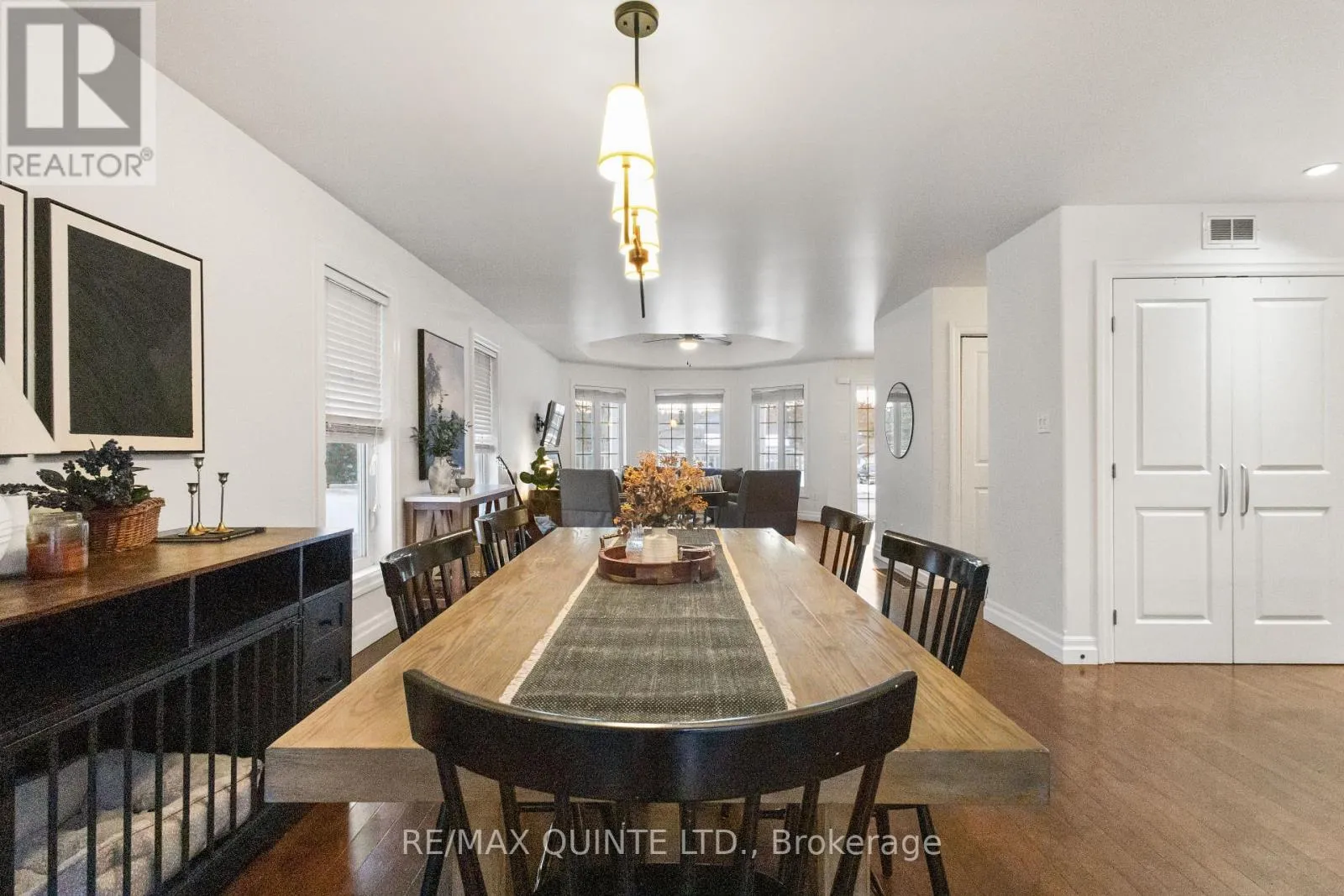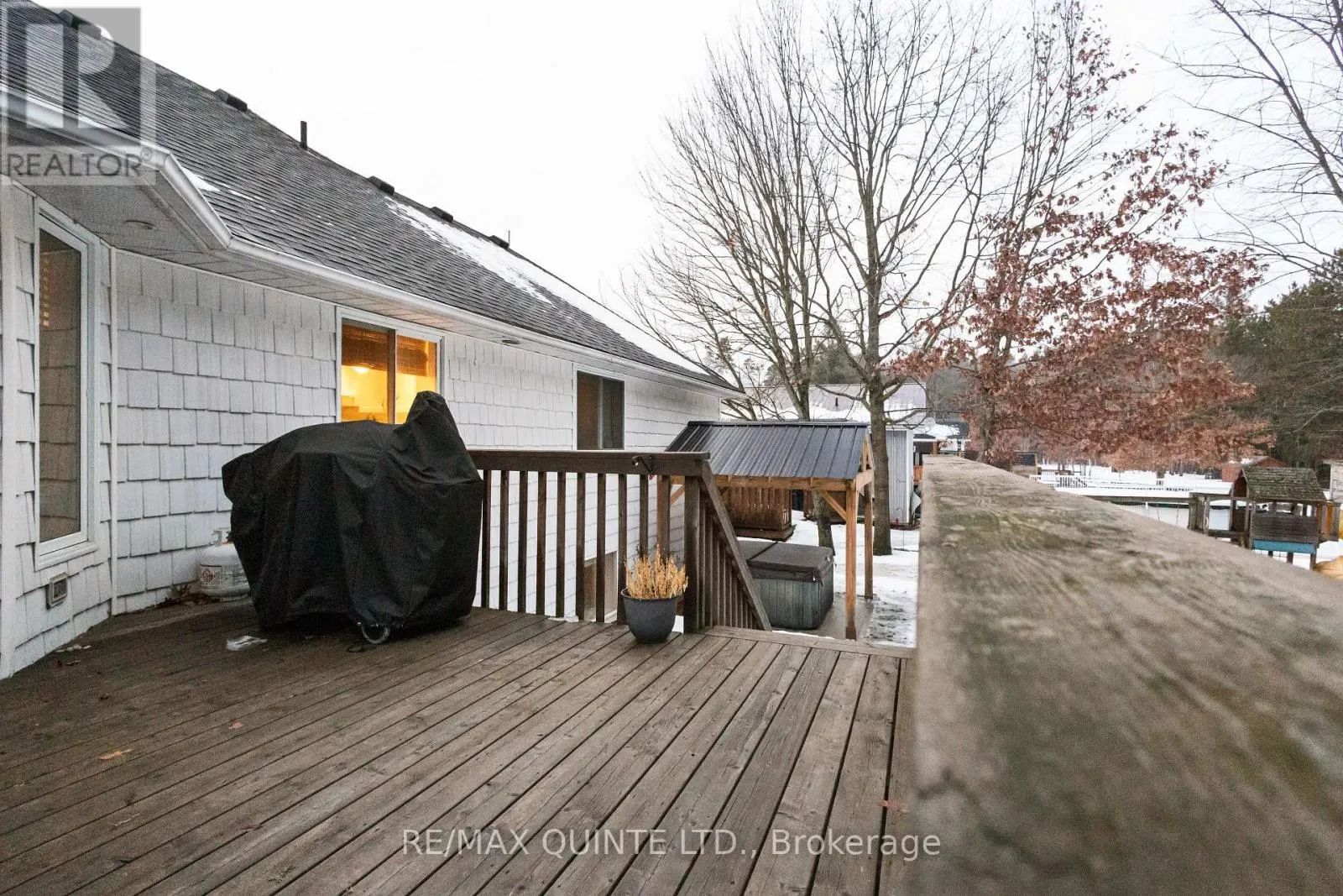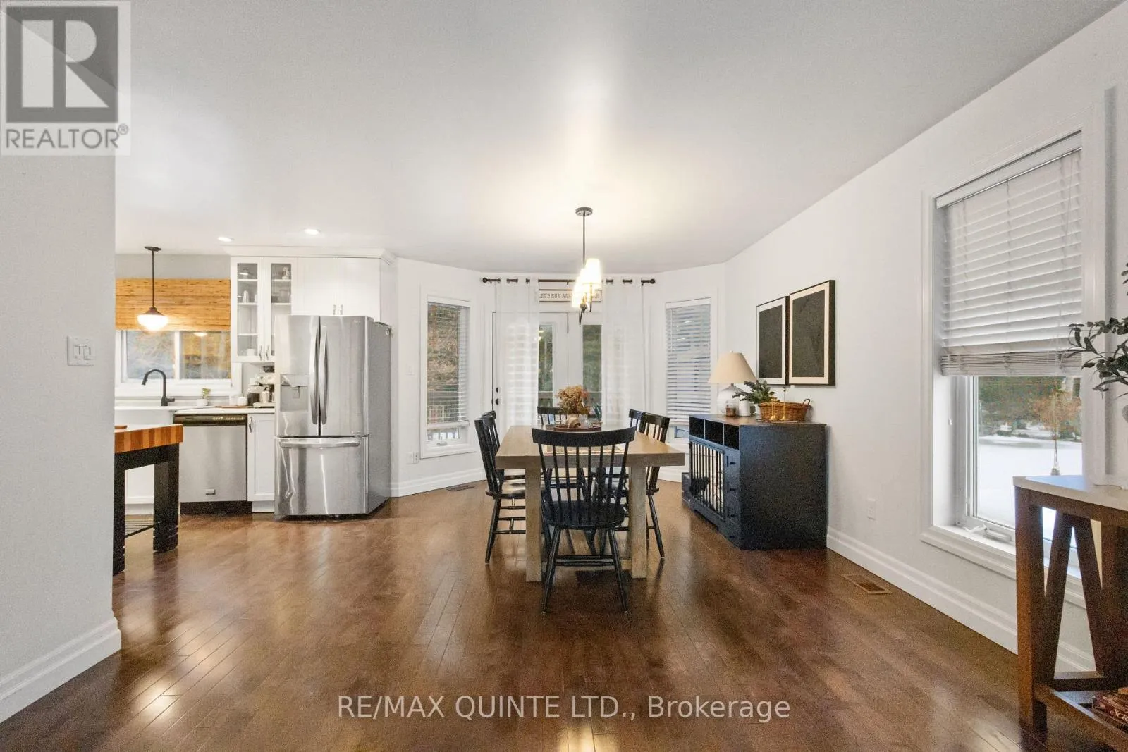 Cross Streets: Charles Road & Charles Court. ** Directions: Highway 37 to Sulphide Rd to Greenwood Rd to Charles Rd to Charles Crt. Steps from Stoco Lake! This raised bungalow offers the perfect blend of comfort, functionality, and outdoor living - all on a quiet dead-end street in a close-knit community, perfect for kids to play and neighbours to connect. Featuring 2 bedrooms up and 2 down, plus 2 full bathrooms, this home is ideal for families, retirees, or those seeking in-law potential. The main floor showcases beautiful hardwood floors throughout and an inviting open-concept layout. The kitchen includes a large pantry and flows seamlessly into the dining and living areas - perfect for entertaining. Enjoy the convenience of main-floor laundry and a spacious primary bedroom on the same level. Relax outdoors on the charming wrap-around front porch or host gatherings on the back deck overlooking your private yard. The backyard backs onto mature woods and features a firepit and hot tub, offering the perfect setting for peaceful evenings under the stars. The lower level provides additional living space, two bedrooms, and a walk-up to the attached garage - an ideal setup for a potential in-law suite or multi-generational living. Located just steps from Stoco Lake, the boat launch, and scenic trails - this property offers a wonderful balance of nature, recreation, and modern living in a friendly, welcoming community. (id:27476)
