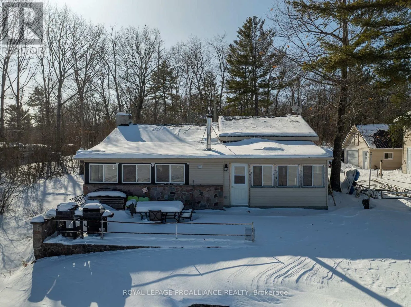 Cross Streets: Marlbank Road. ** Directions: Hwy 37 north to Marlbank Rd. East on Marlbank Rd. to Houston Lane. Set against the stunning backdrop of Stoco Lake, this exceptional property offers not one, but two fully winterized, year-round residences, providing the perfect blend of togetherness and privacy. Imagine waking up to panoramic lakefront views from either of these 2 year-round, turn key homes on one gorgeous rocky point on the west shore of Stoco Lake. Discover the Ultimate multi-generational compound or investment opportunity just minutes south of Tweed. The first residence, a modern bungaloft built in 2017, features floor to ceiling windows, 3 spacious bedrooms and 2 pristine bathrooms. The second residence is a cozy retreat with 2 bedrooms and 2 bathrooms, including a 3 piece ensuite. While distinct in layout, both homes share a commitment to quality and comfort. Each home boasts its own chef-inspired kitchen and roaring wood-burning fireplace. Whether you're trying to catch one of Stoco's famous Muskies or you're gliding on skates across the frozen lake, the panoramic lake views from both homes are nothing short of breathtaking. For the handyman or visionary, the property features a bonus bunkie equipped with its own kitchen and 3-piece bathroom. It needs work, but offers incredible potential as a guest suite, studio, or teen hangout. So if you've been mathing with me, that's 6 bedrooms and 5 bathrooms in 3 living spaces on one premium waterfront property just south of Tweed. Located on a private road maintained year-round, you enjoy the peace of seclusion with the convenience of being just minutes from town amenities. Whether you are looking for a family legacy property or you're expanding your vacation rental portfolio, this Stoco Lake gem is a rare find. (id:27476)