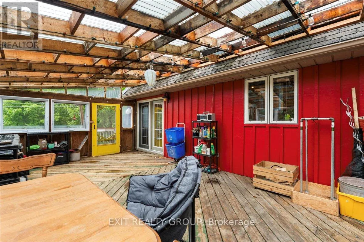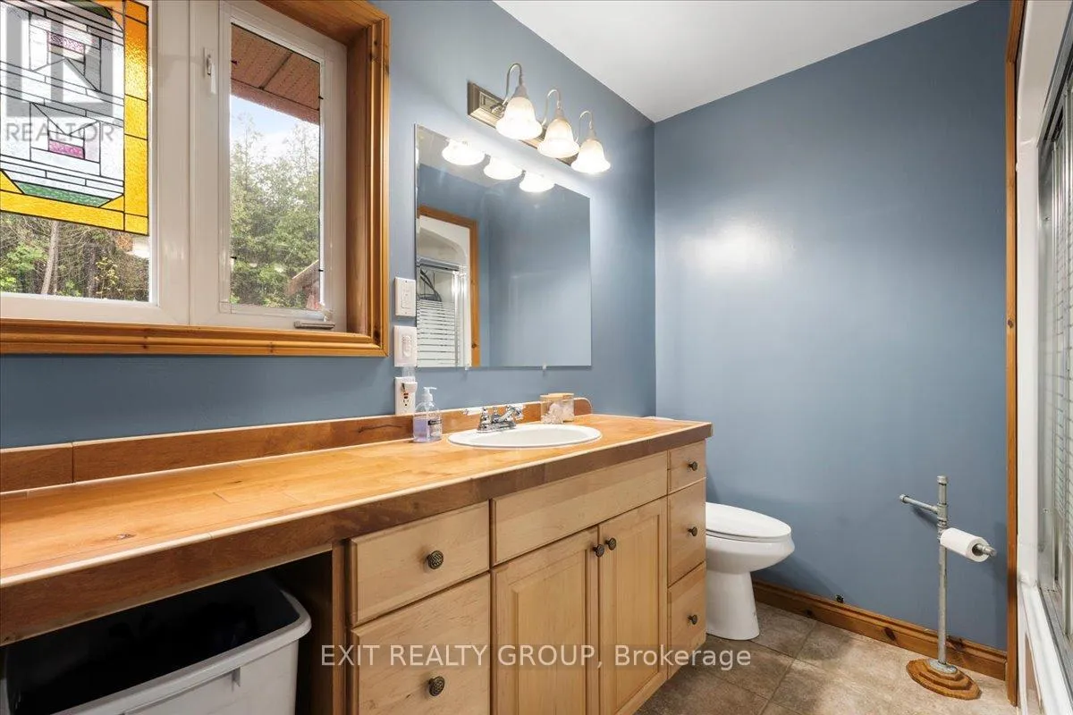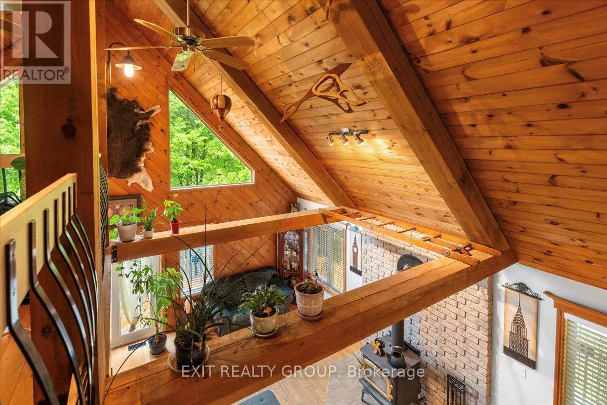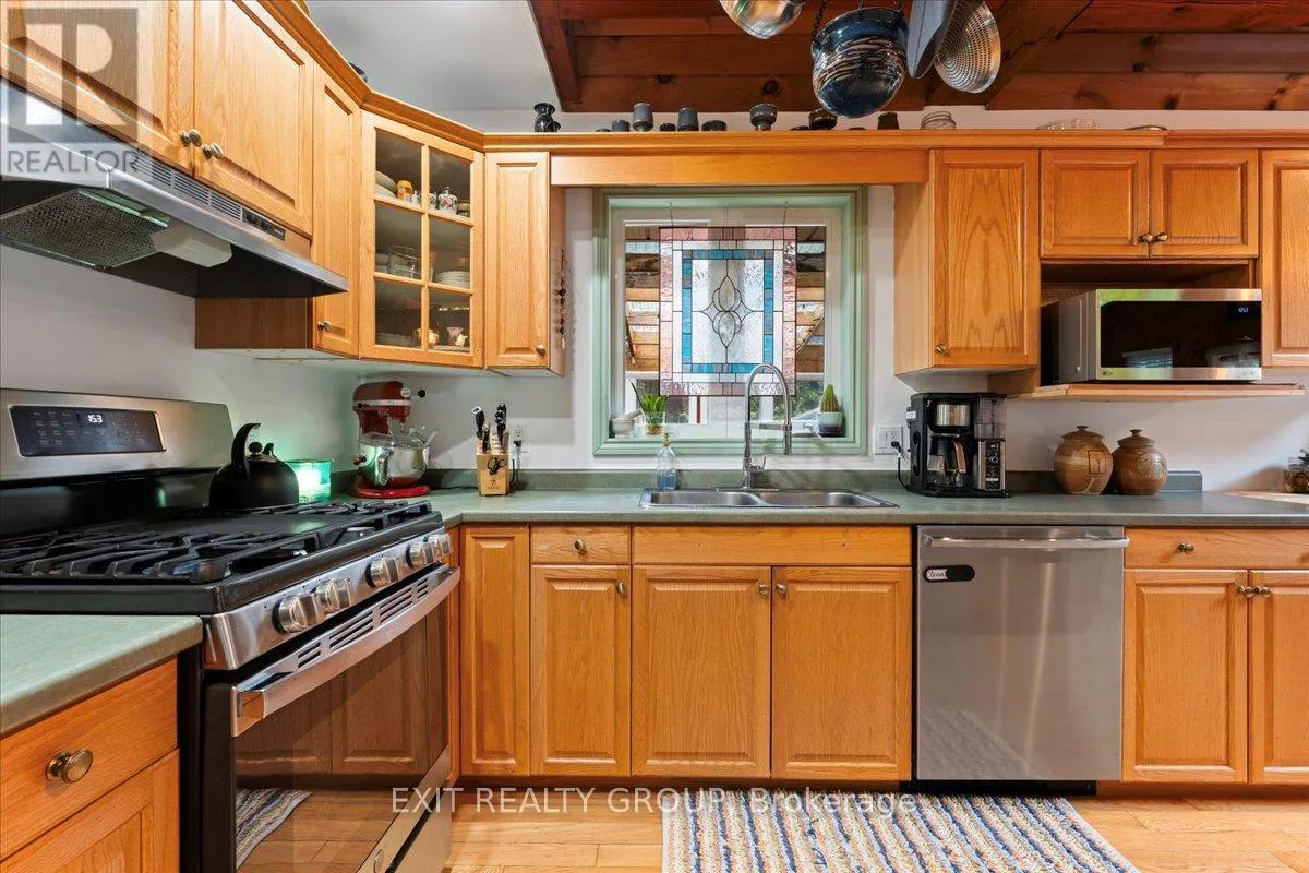 Cross Streets: Hwy 14 & Smith Rd. ** Directions: From Shannonville Road, Turn East on Moneymore Road, Turn East on Smith Road, Property on Right. Welcome to this charming 3-bedroom, 3-bathroom two-storey home, complete with an attached 1.5-car garage and nestled in a picturesque setting with lush gardens and a peaceful pond. Step inside through the welcoming foyer and discover a bright, open-concept main floor that seamlessly blends the living, dining, and kitchen areas. Soaring vaulted ceilings and expansive windows flood the space with natural light, creating a warm and inviting atmosphere. Unwind beside the cozy wood-burning fireplace, perfect for chilly evenings. From the dining area, glass doors lead to a spacious deck - ideal for outdoor entertaining - while a second set of glass doors opens into a delightful 3-season sunroom where you can enjoy the surrounding views in comfort. The generously sized L-shaped kitchen boasts a functional eat-in island, perfect for casual meals and gatherings. This level also features two comfortable bedrooms, a well-appointed 4-piece bathroom, and the convenience of main floor laundry. Upstairs, retreat to your private primary suite, featuring a large closet, a 3-piece ensuite with a luxurious jetted tub, and an open-to-below loft-style office - perfect for working from home or enjoying a quiet reading nook. The finished lower level offers even more living space, including a spacious rec room with a second wood-burning fireplace, a 2-piece powder room, a large storage area, and a utility room with direct access to the garage. Outdoors, enjoy the tranquility of a beautifully landscaped yard with mature gardens, a large storage shed, and your very own pond - adding a touch of natures serenity right in your backyard. This well-maintained home offers space, comfort, and charm both inside and out - don't miss the opportunity to make it yours! (id:27476)